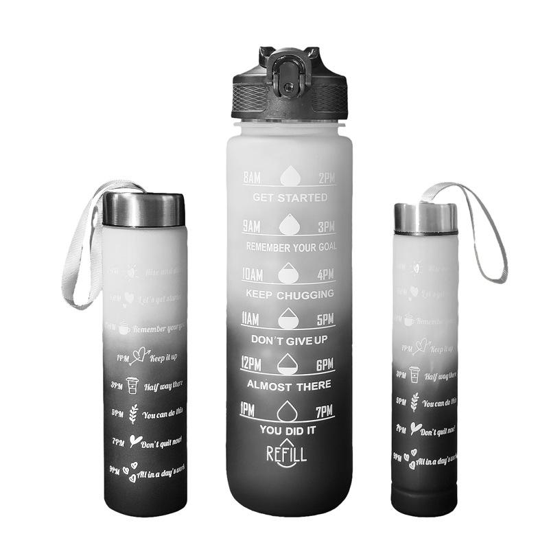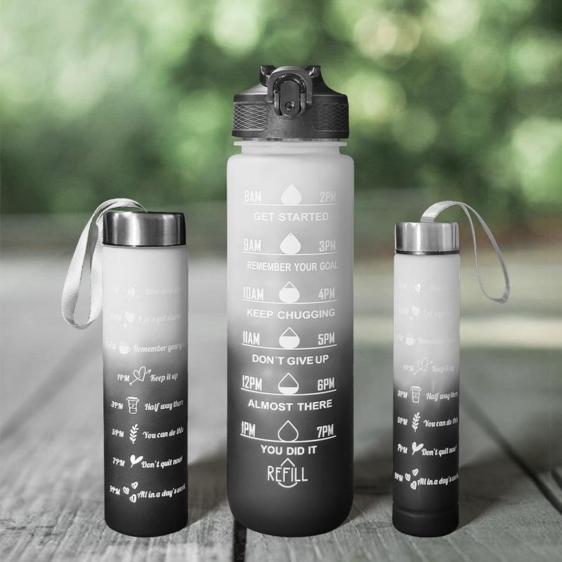 Amazon Juego de Vaso de Agua de Tres Piezas Degradado para Exteriores Fitness Deportes con Escala Gran Capacidad Correa Venta Caliente Transfronteriza