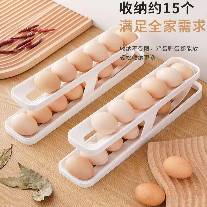 Rejilla para huevos de doble capa, para el hogar, cocina, refrigerador, puerta lateral, caja de plástico para huevos, resistente a caídas, conservación de la frescura, almacenamiento automático de huevos.