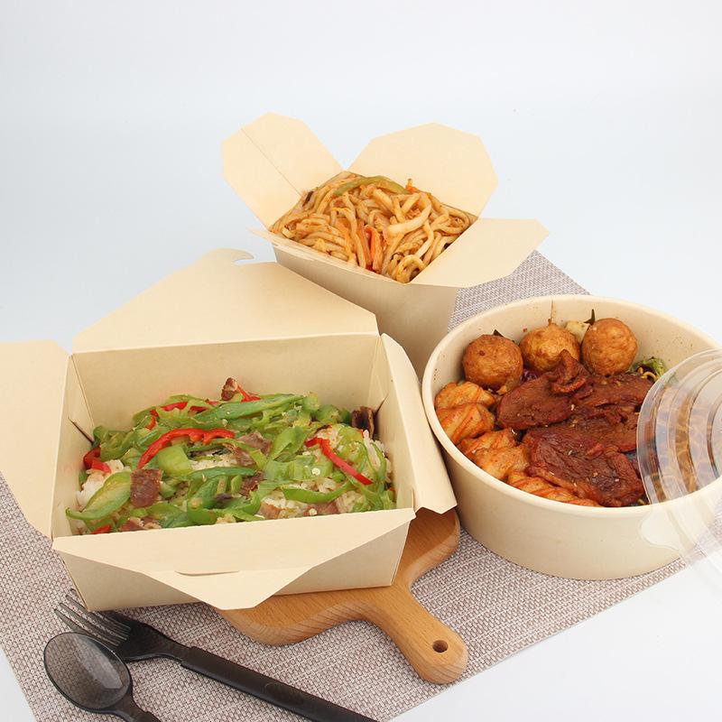 Lonchera desechable de papel de pulpa de bambú, lonchera rectangular para llevar, lonchera de papel, caja para ensalada