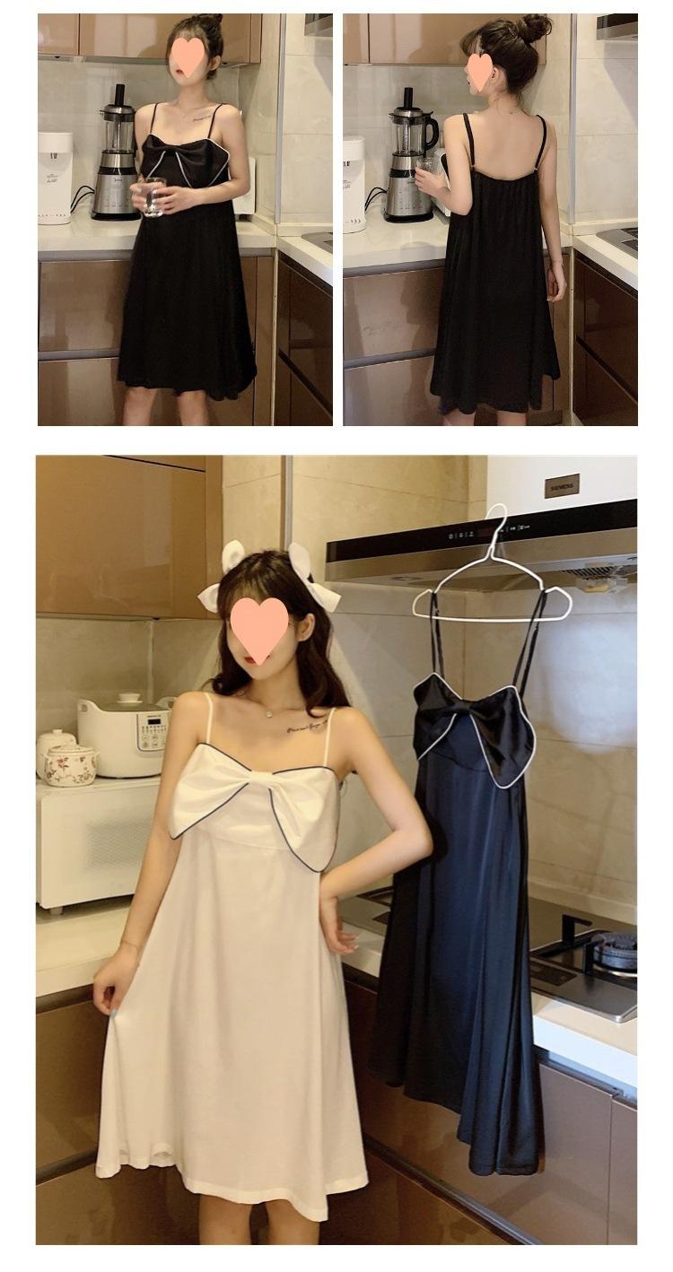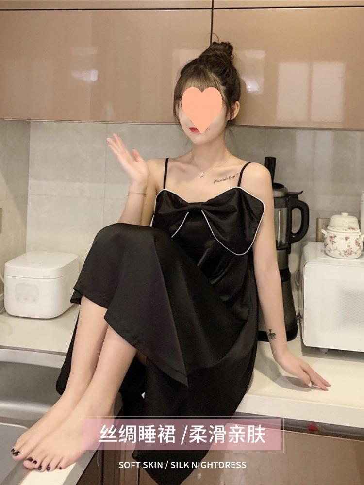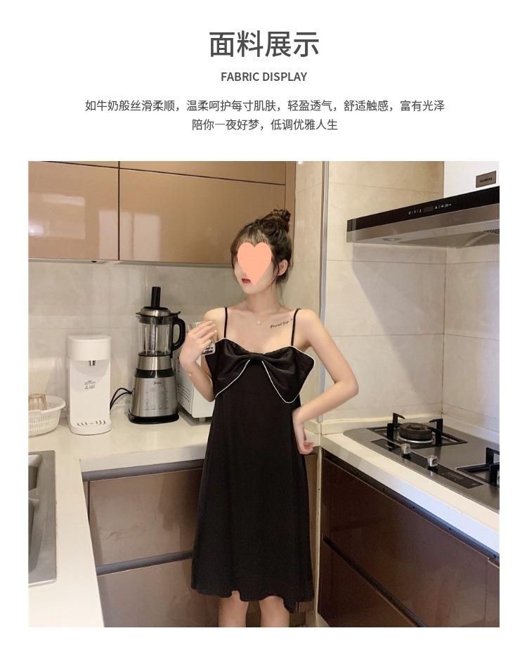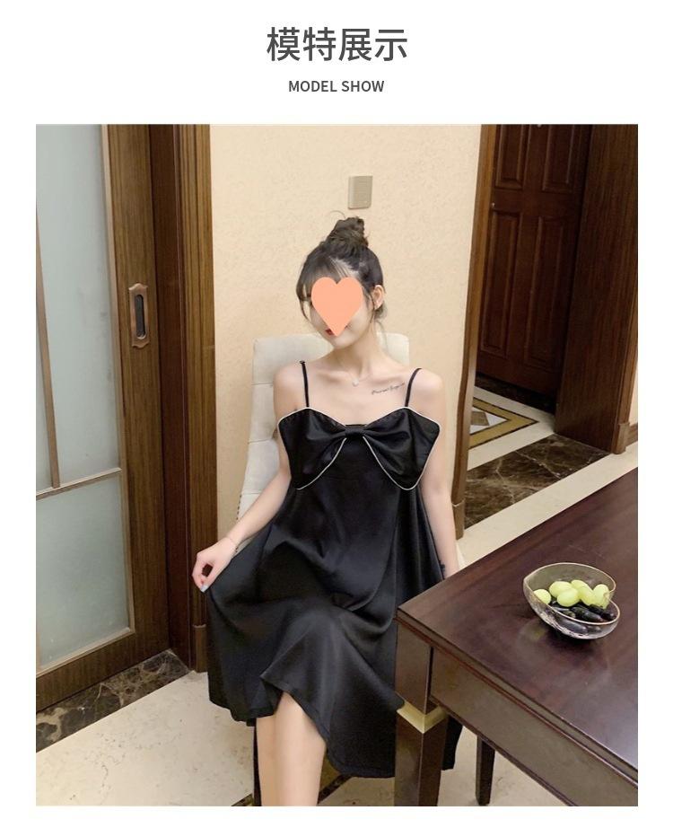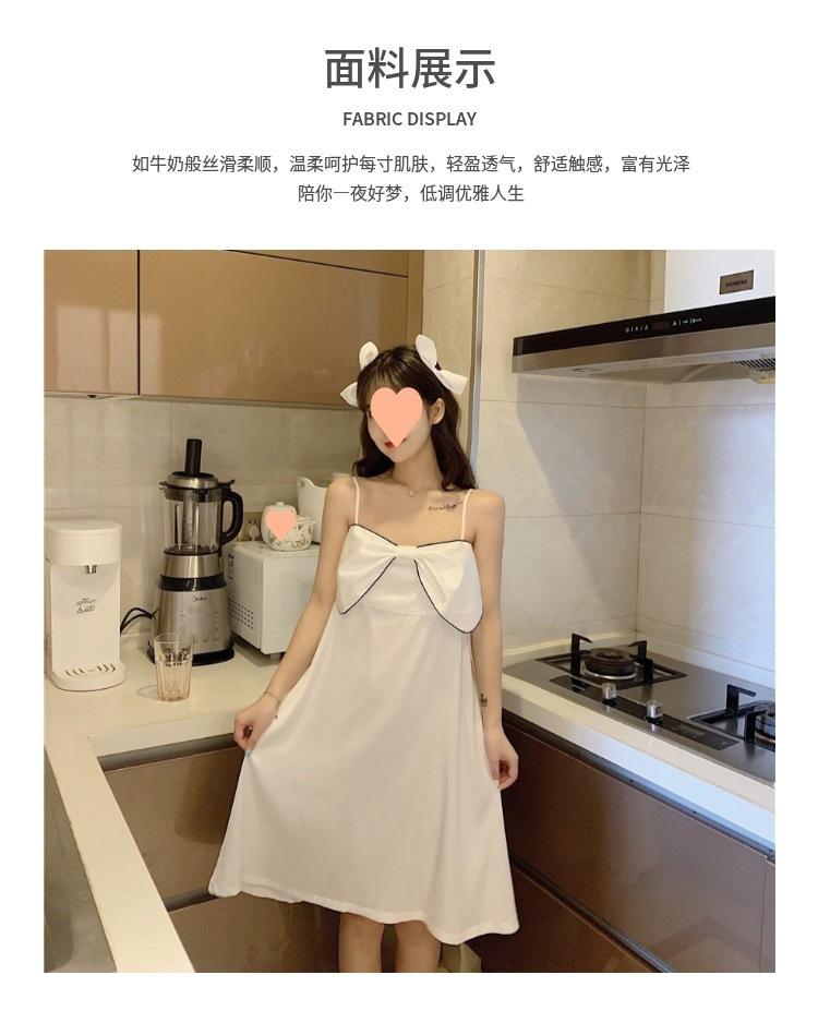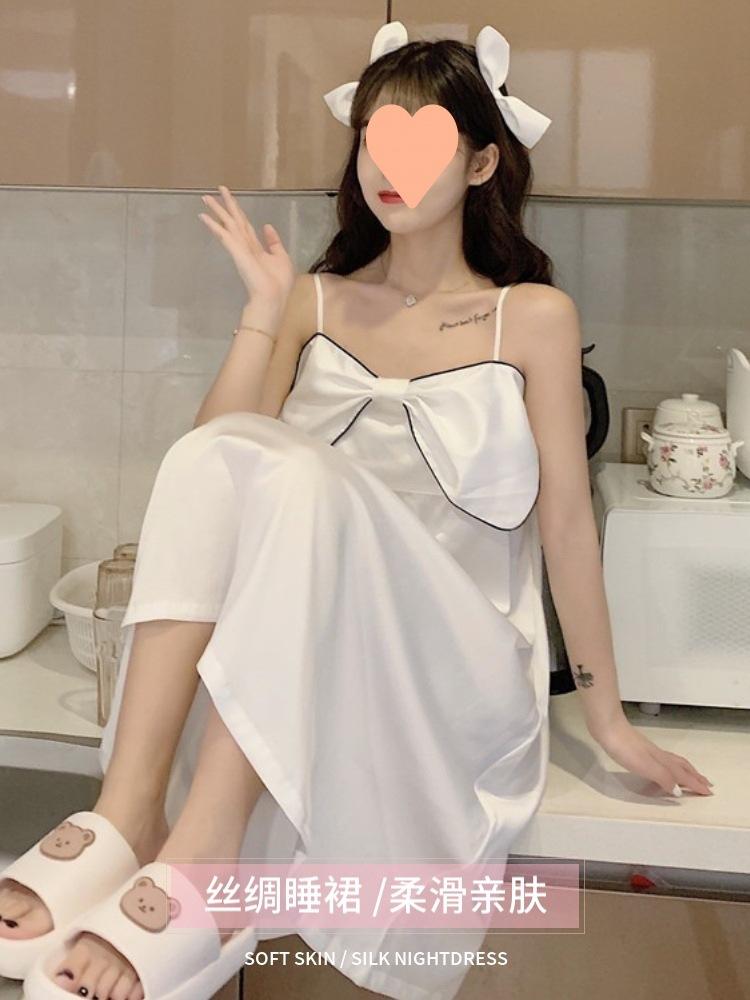 2025 Nuevo Camisón de Tirantes de Seda de Hielo para Mujer Verano Estilo Princesa Dulce Suelto Lazo Vestido de Pijama de Seda Estilo Delgado