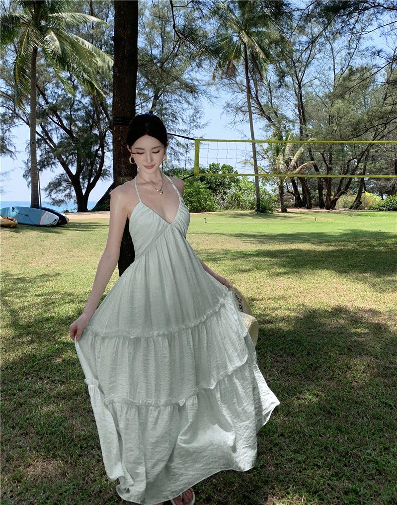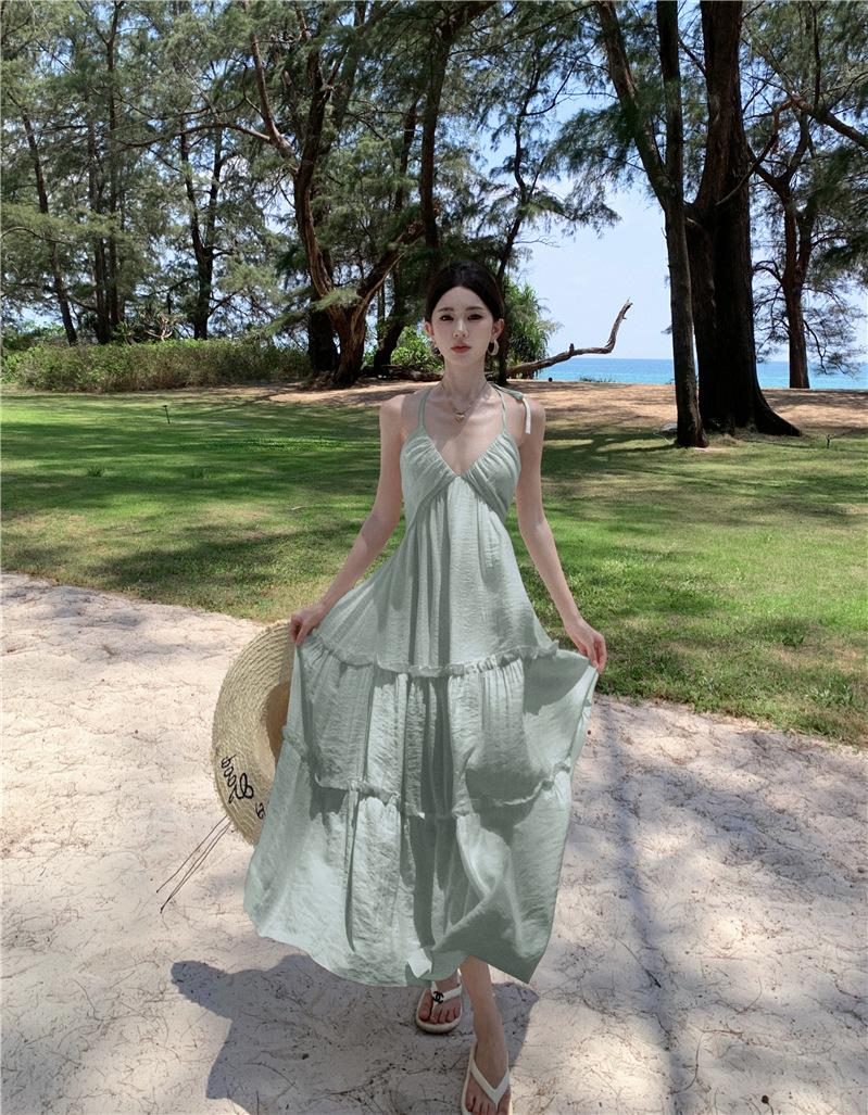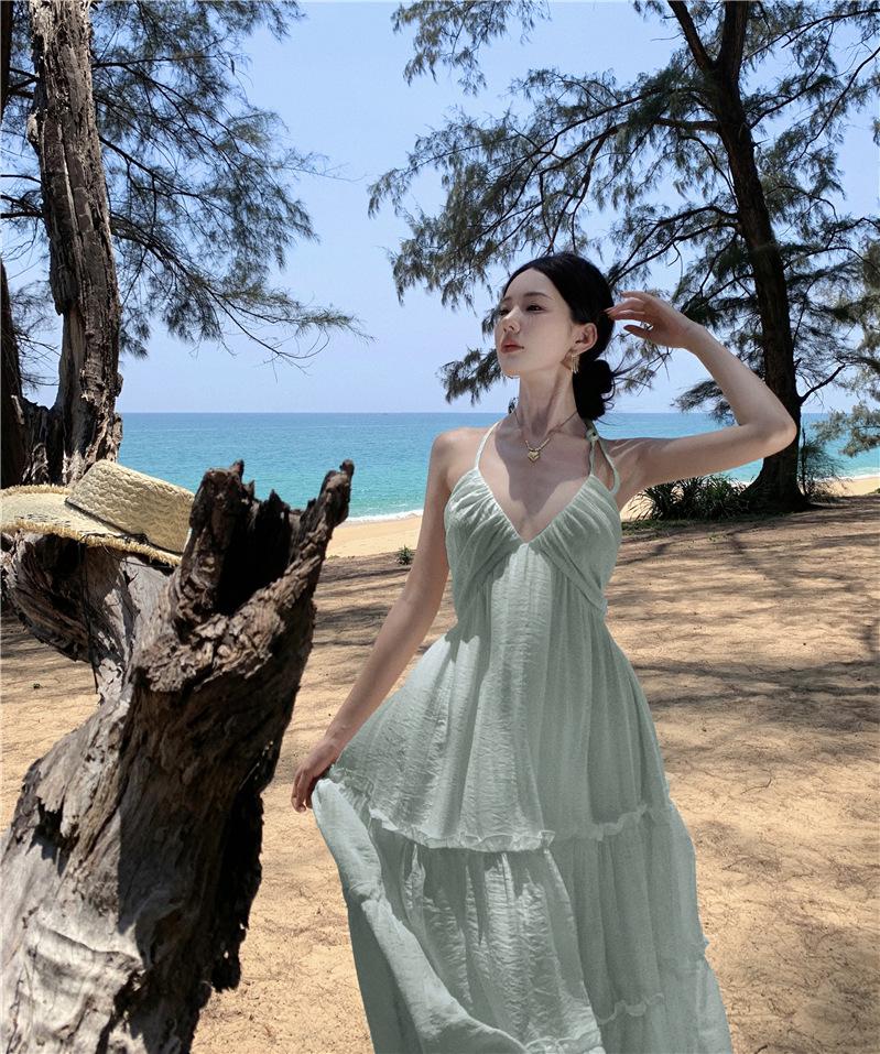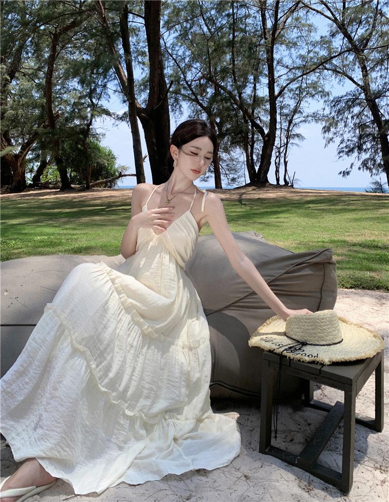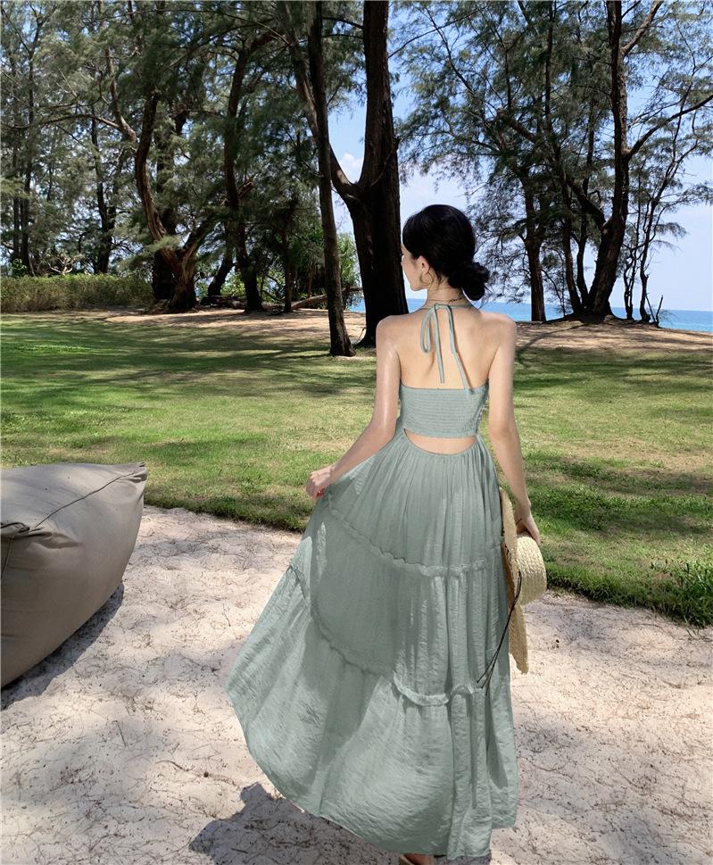 Falda sexy con cuello sin espalda estilo Pure Desire para mujer, nuevo vestido de verano estilo francés elegante súper hada para vacaciones en la playa