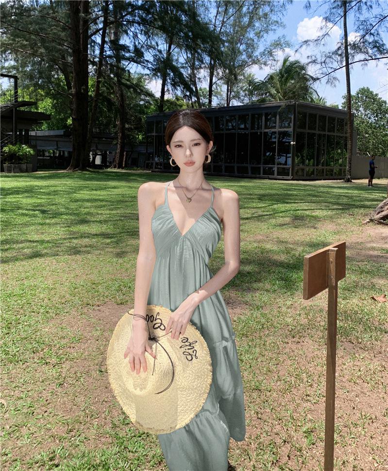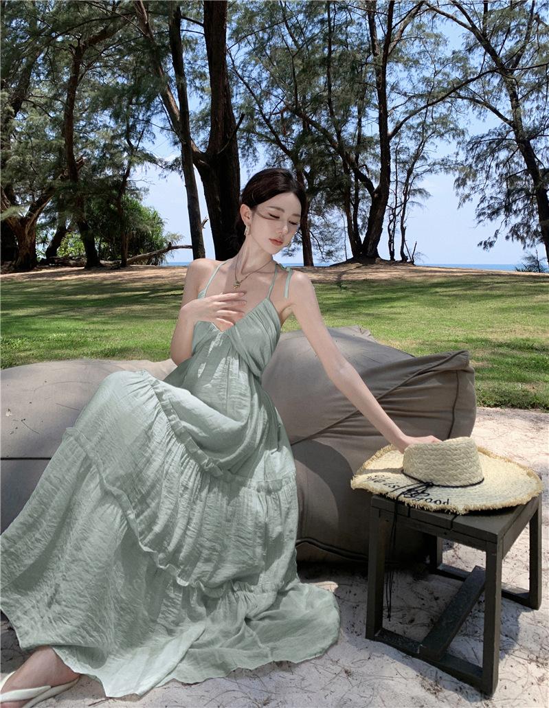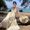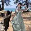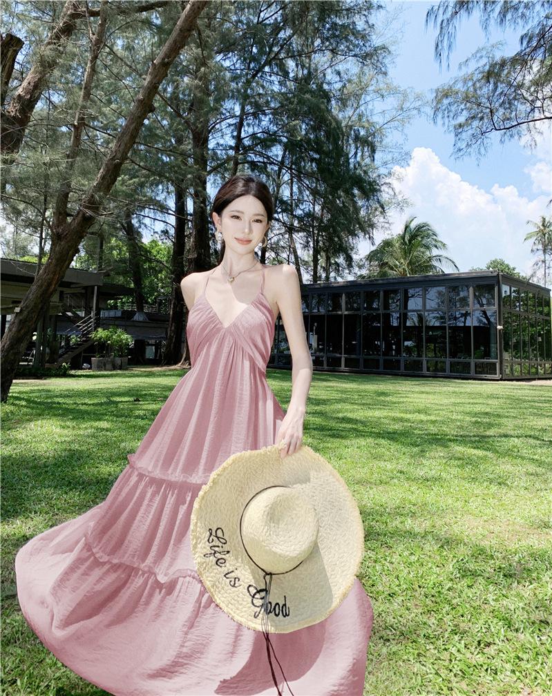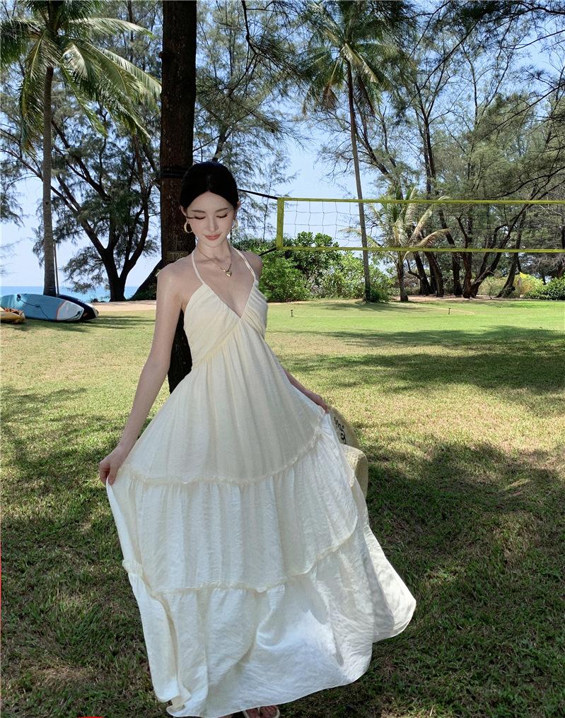 Falda sexy con cuello sin espalda estilo Pure Desire para mujer, nuevo vestido de verano estilo francés elegante súper hada para vacaciones en la playa