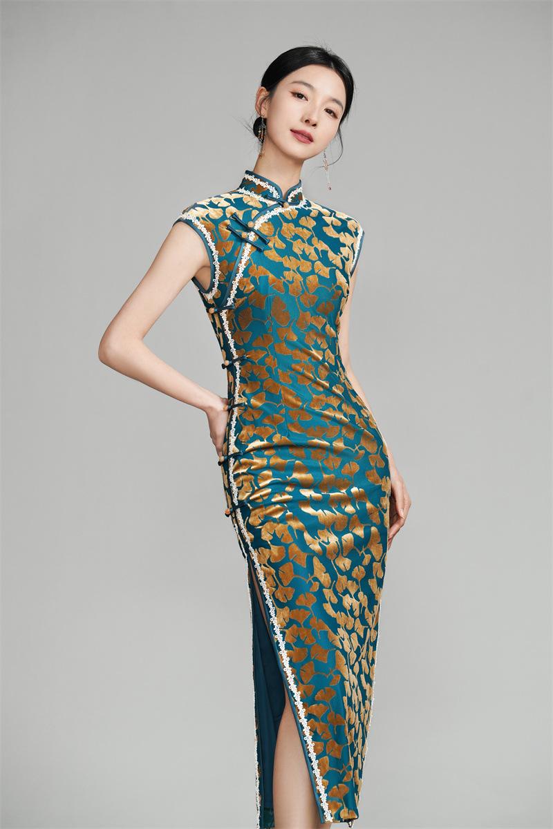 Características:Cheongsam nuevo, tela, textura suave, buena caída, no se encoge, no se decolora, no hace bolitas, ligera elasticidad, más característico de la nación china, bienvenido a comprar,