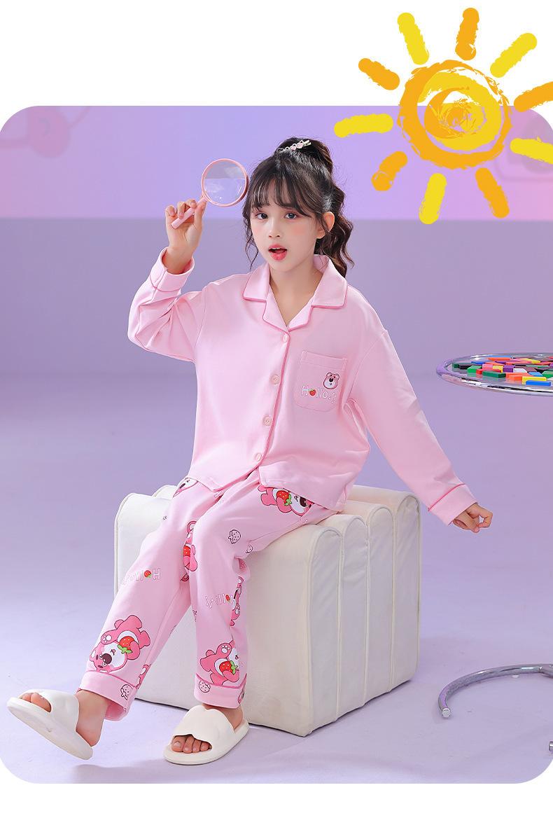 Pijama cárdigan de manga larga para niños de comercio exterior, fino para niñas, bebé, niños grandes, dibujos animados, estudiantes, ocio, ropa para el hogar al por mayor