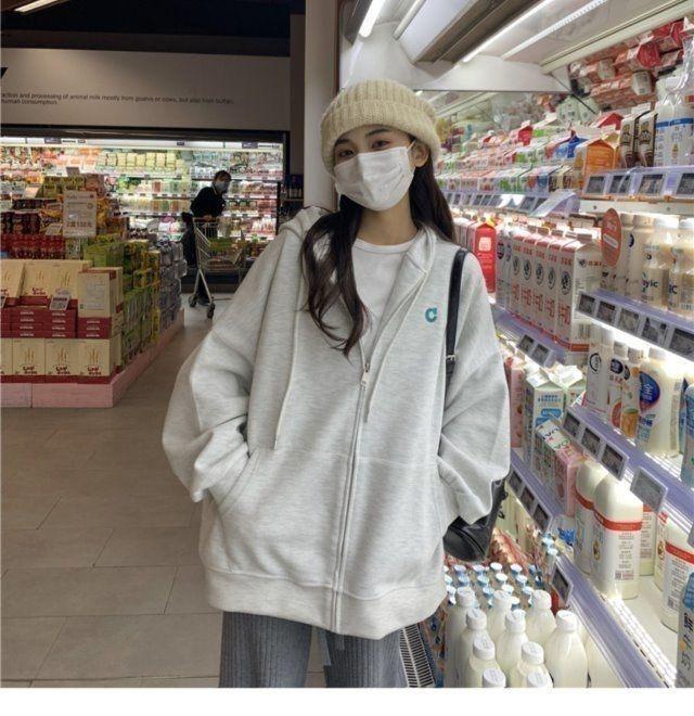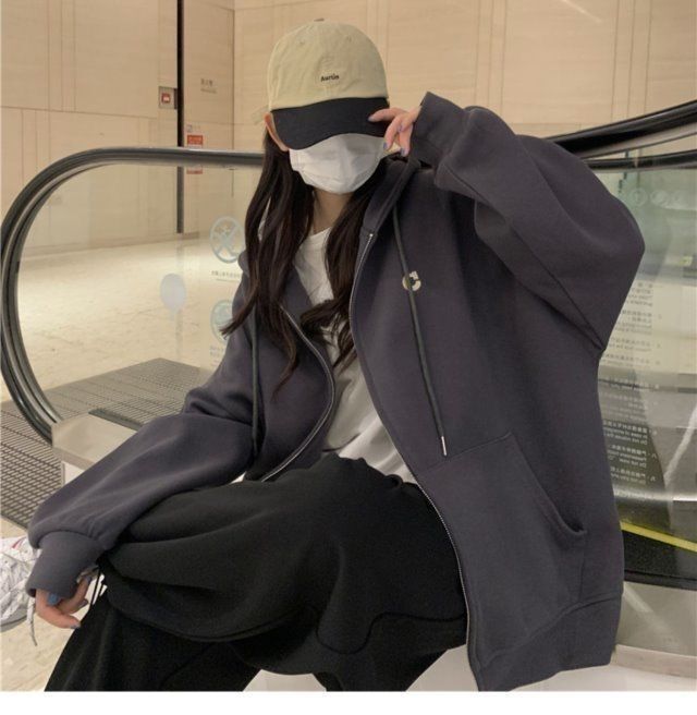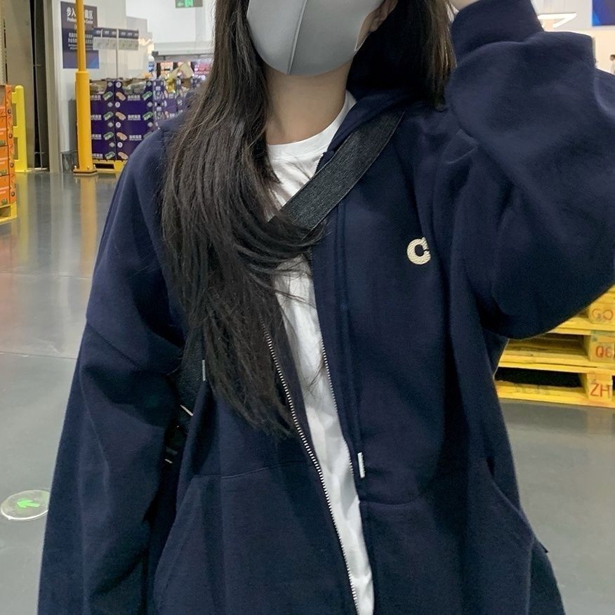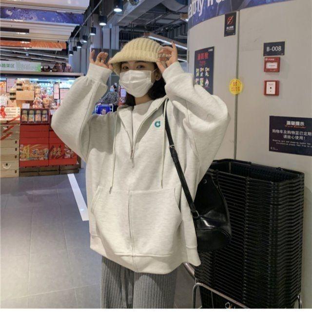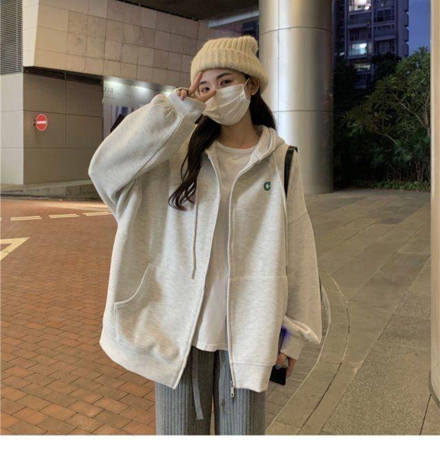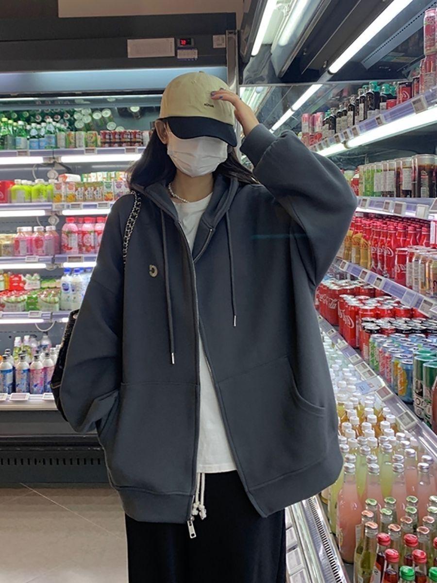 Sudadera polar coreana de manga larga para mujer, nueva de otoño e invierno, oversize, holgada, estilo lazy, chaqueta japonesa con capucha para estudiante