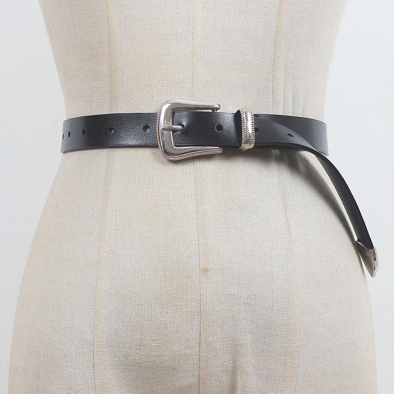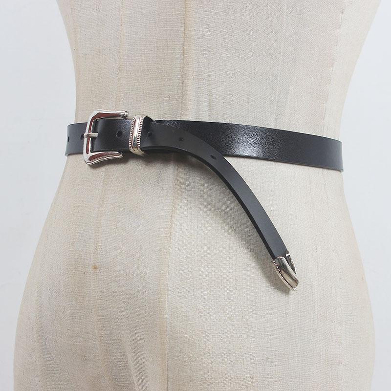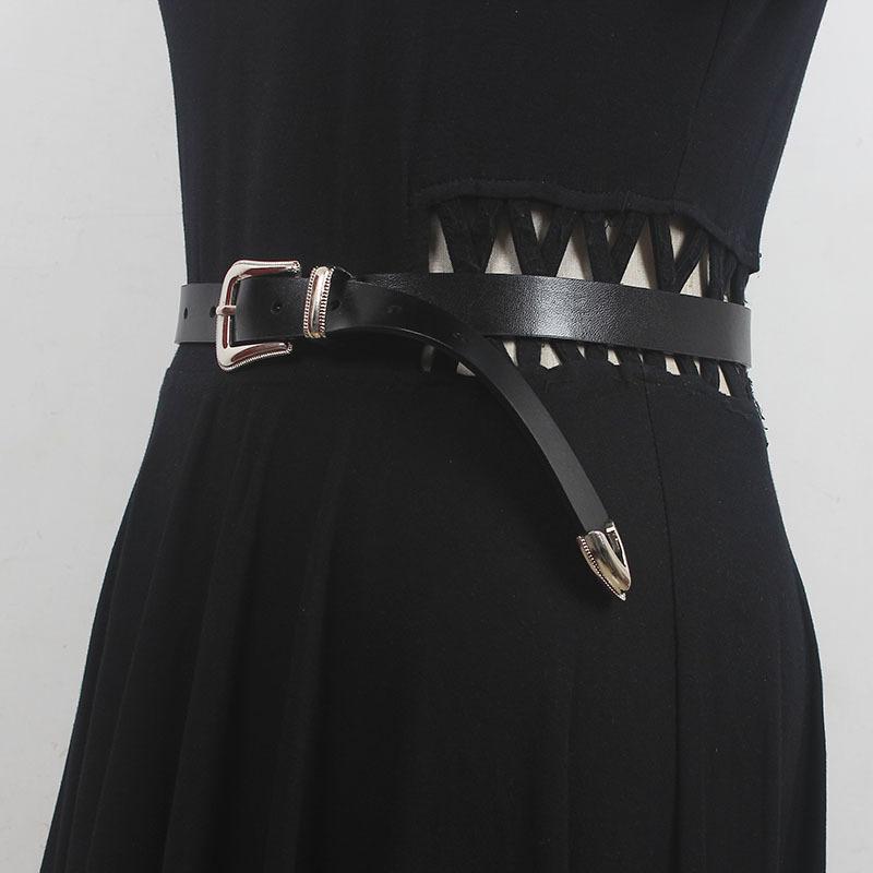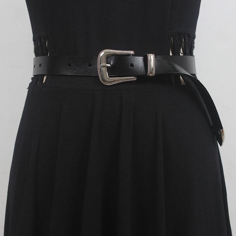 Cinturón nuevo 2022 para mujer, de cuero de alta calidad, decorativo, para jeans, sencillo, combinable, fino, negro, para mujer.