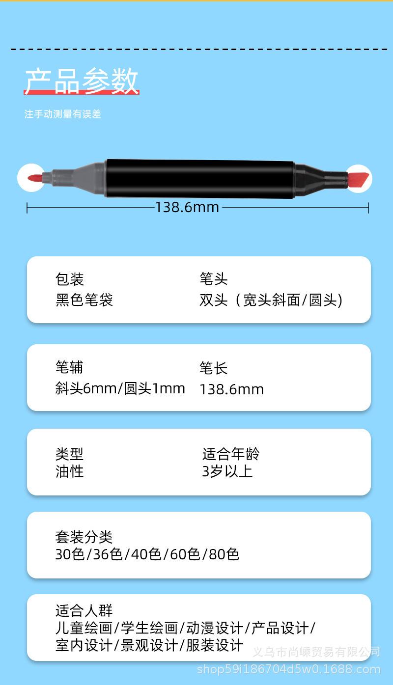 12-color black rod double-ended marker pen, 24-color black rod double-ended marker pen, 30 color black rod dou...