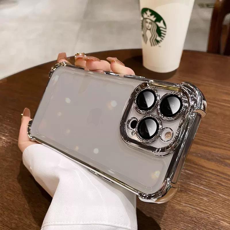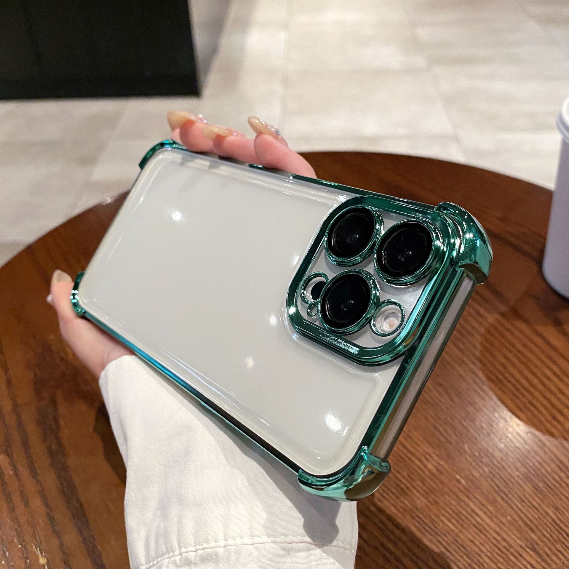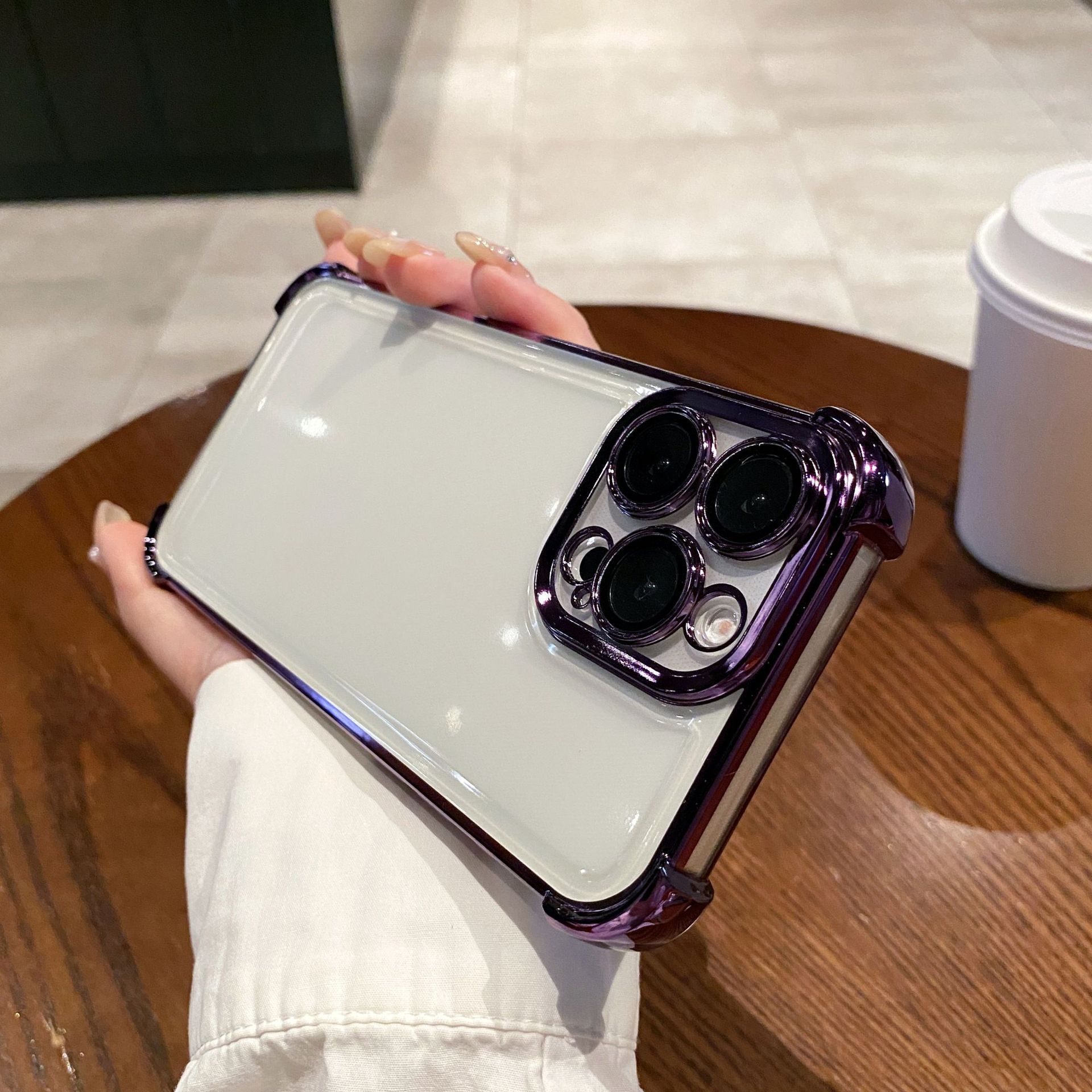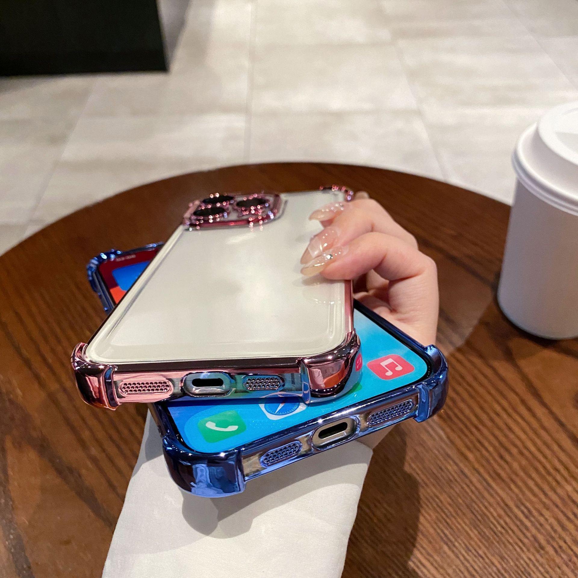 Adecuado para Funda de Teléfono iPhone 17 Pro Max, Electrochapada Transparente de Cuatro Esquinas Anti-Caída Apple 16 Funda Protectora Suave de TPU 15