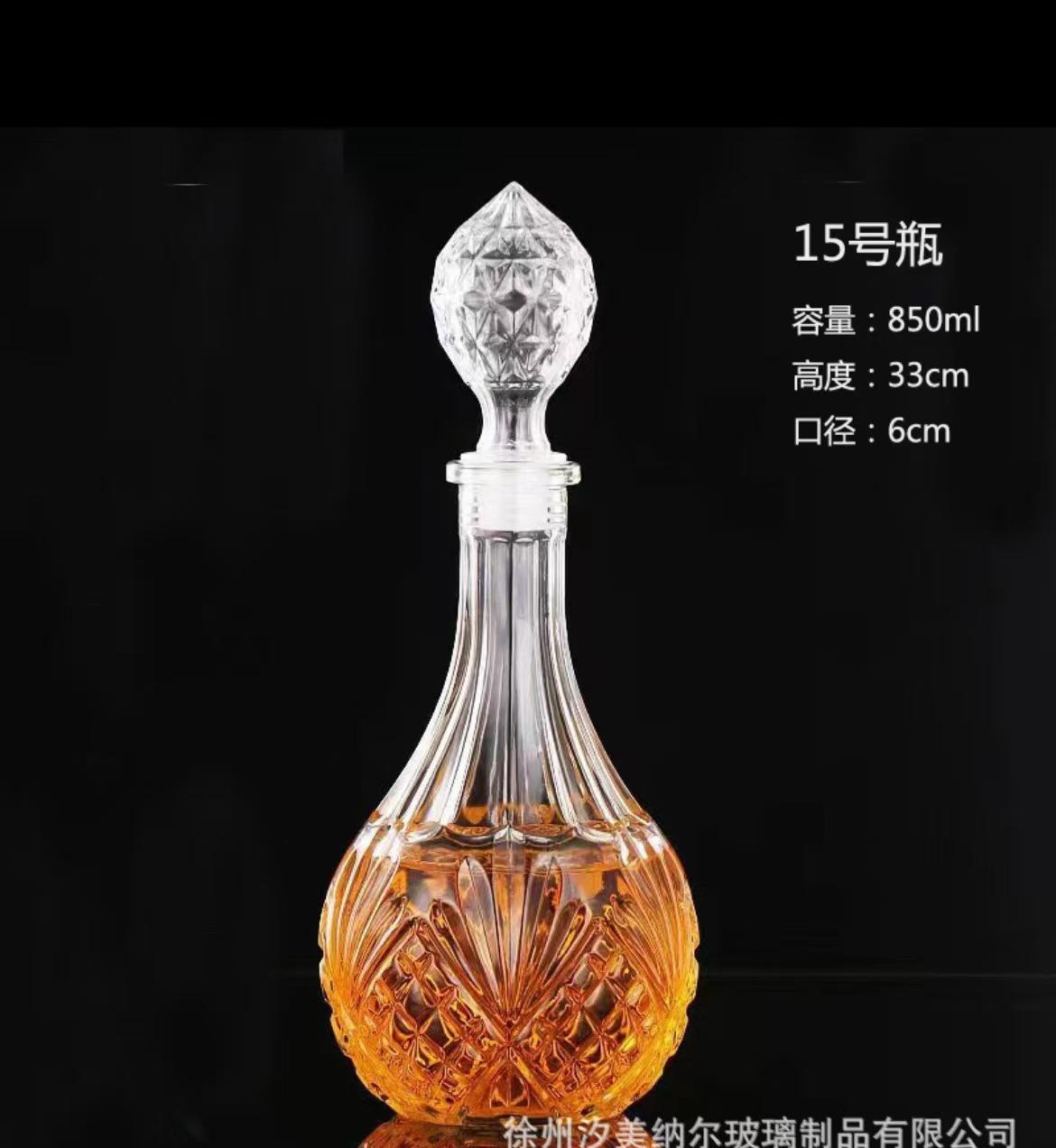 Botella de vino de cristal de estilo europeo, botella de whisky, botella de vino tinto, botella de vino vacía de cristal transparente, dispensador de vino, decantador.