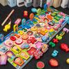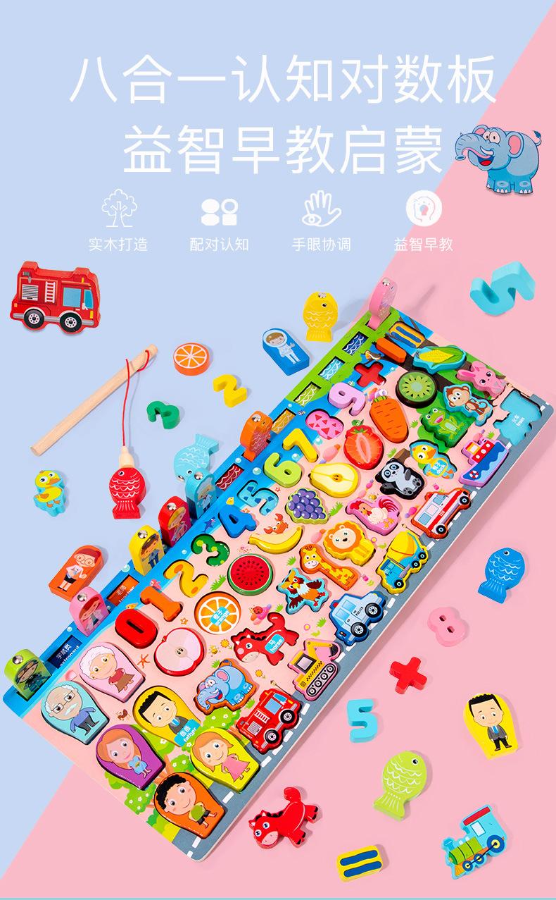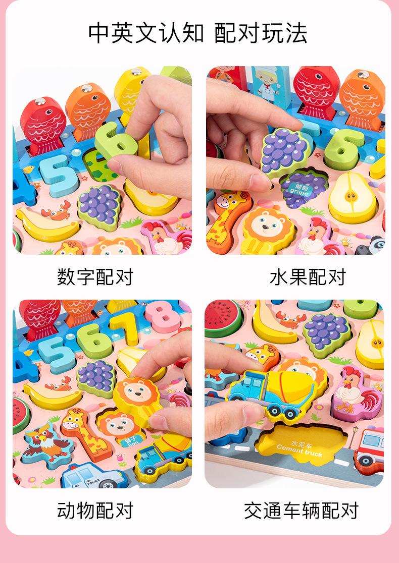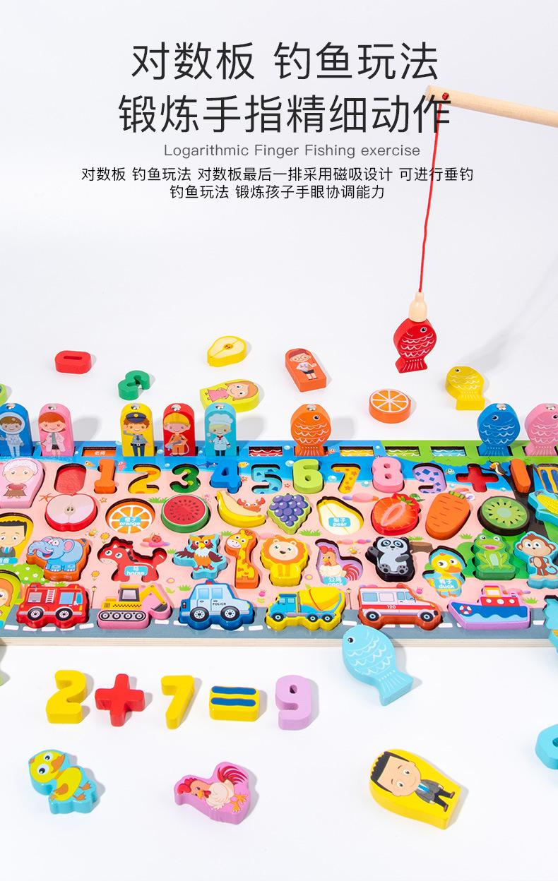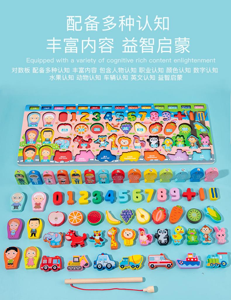 Tablero logarítmico de tráfico con números de madera, juego de pesca magnético, tablero de madera a juego, bloques de construcción, juguete para la primera infancia