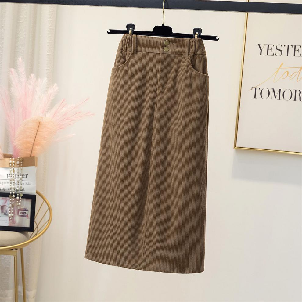 Falda de pana para mujer, otoño e invierno, gruesa, nueva, 2023, cintura alta, adelgazante, longitud media, para senderismo, que cubre la cadera, falda larga tipo A.