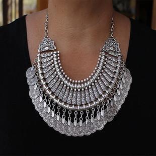 Venta al por mayor de fábrica suministro al contado comercio exterior superventas moda retro exagerado collar de moneda al por mayor |