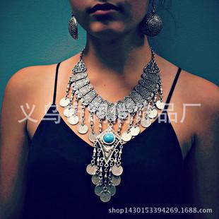 Comercio exterior nueva moda y elegante retro moneda borla clavícula collar de mujer suministro de venta caliente |