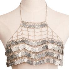 Moda exagerada de comercio exterior europea y americana, personalidad, metal pesado, multicapa, borla de monedas, cadena para el pecho, cadena para el cuerpo