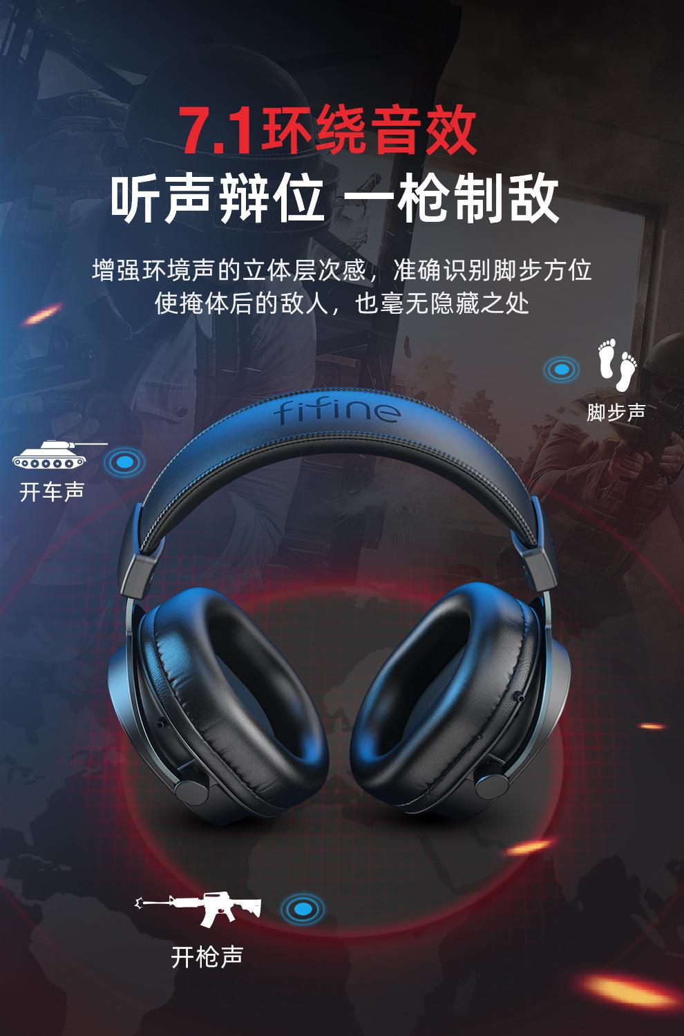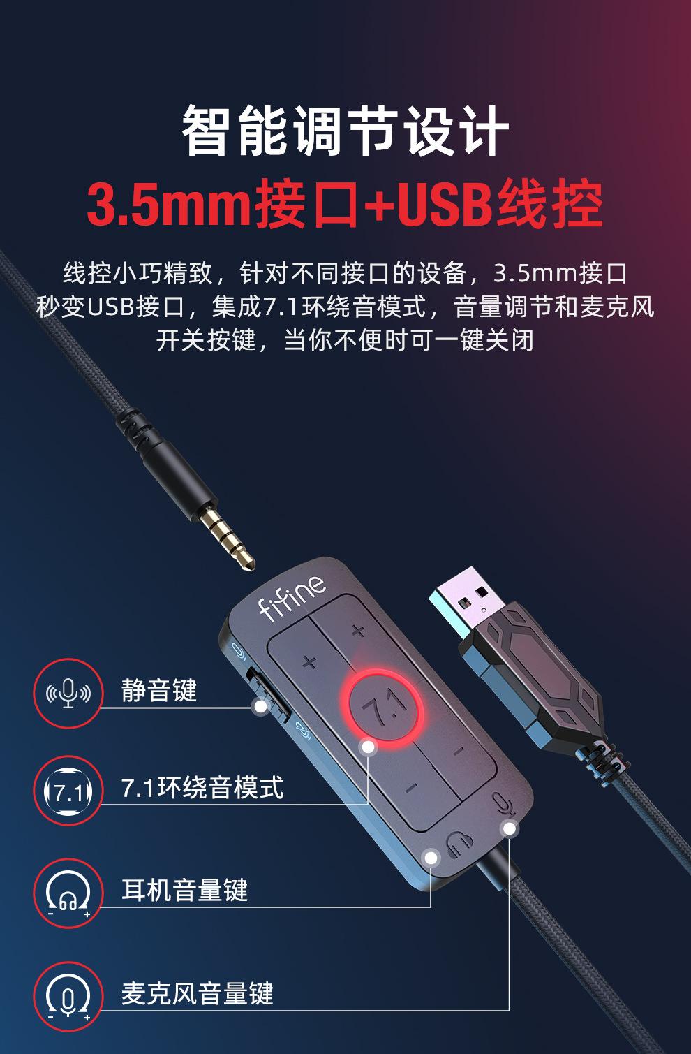 8 No-Bandidi Audífonos Fifine H9 Gaming E-Sports Computadora Escritorio 7.1 Canales 3.5mm Alámbricos USB