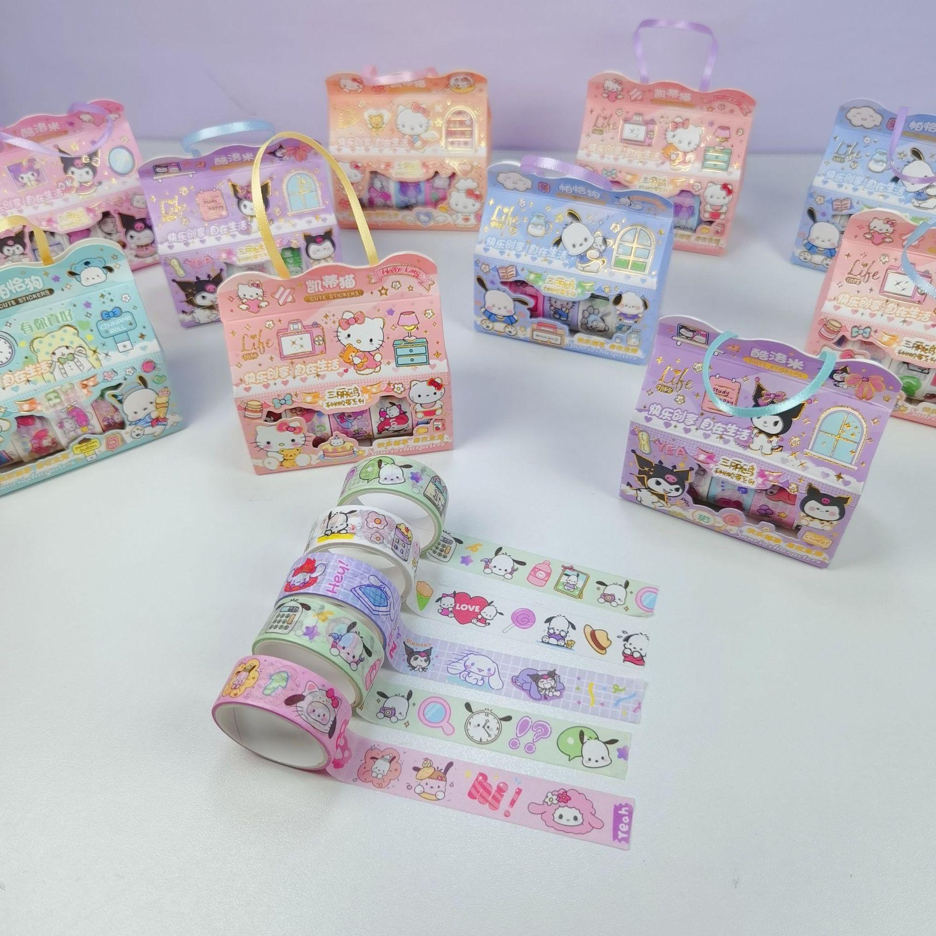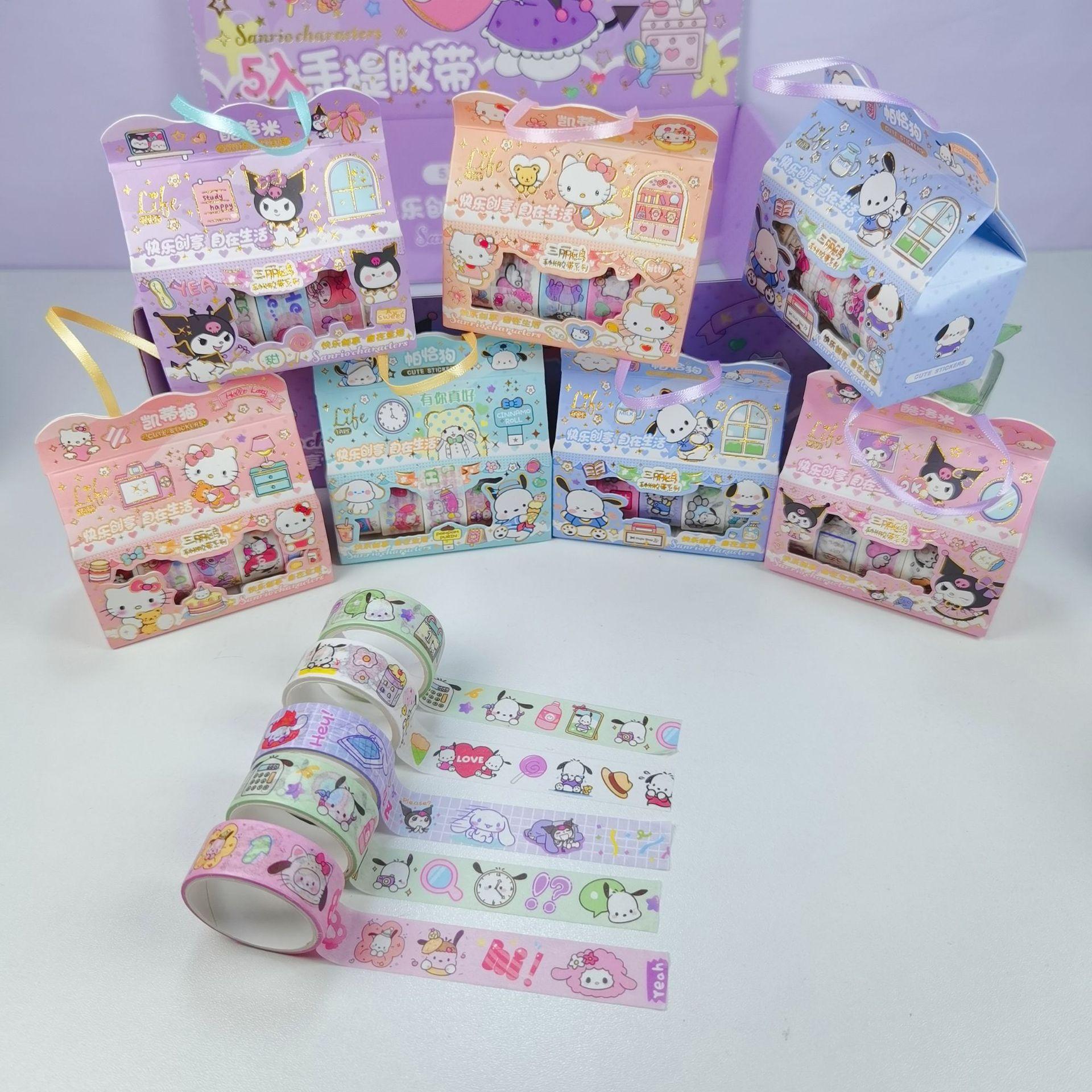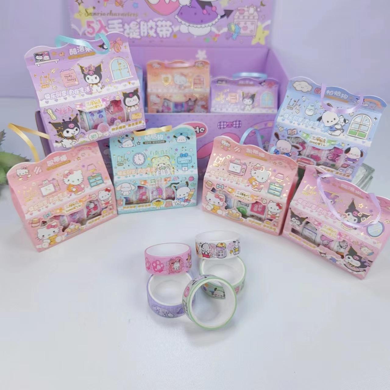 Dibujo animado Sanrio 5-en-mano y cinta de papel estudiante diy creativo Cinta de diario juguete cinta coolomi