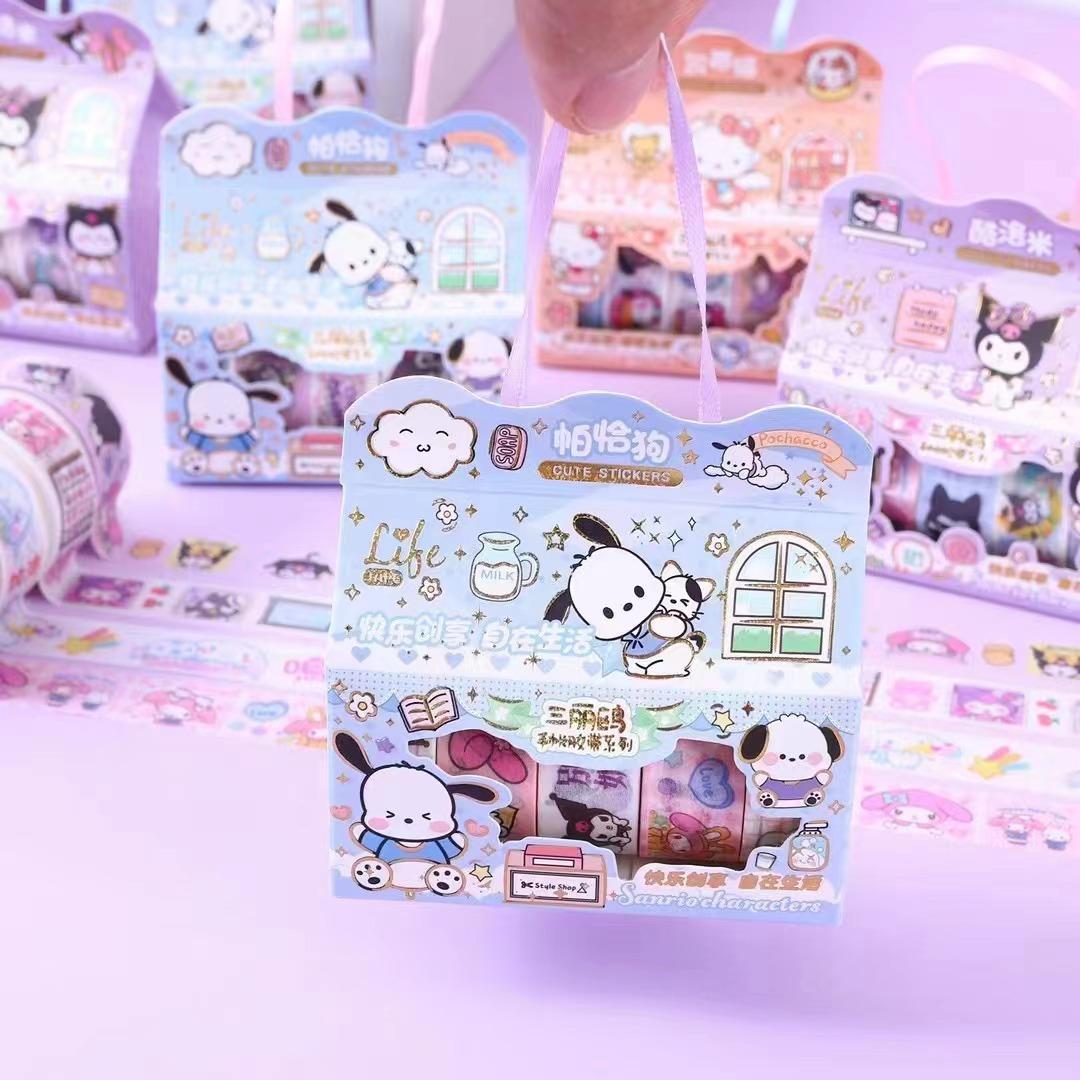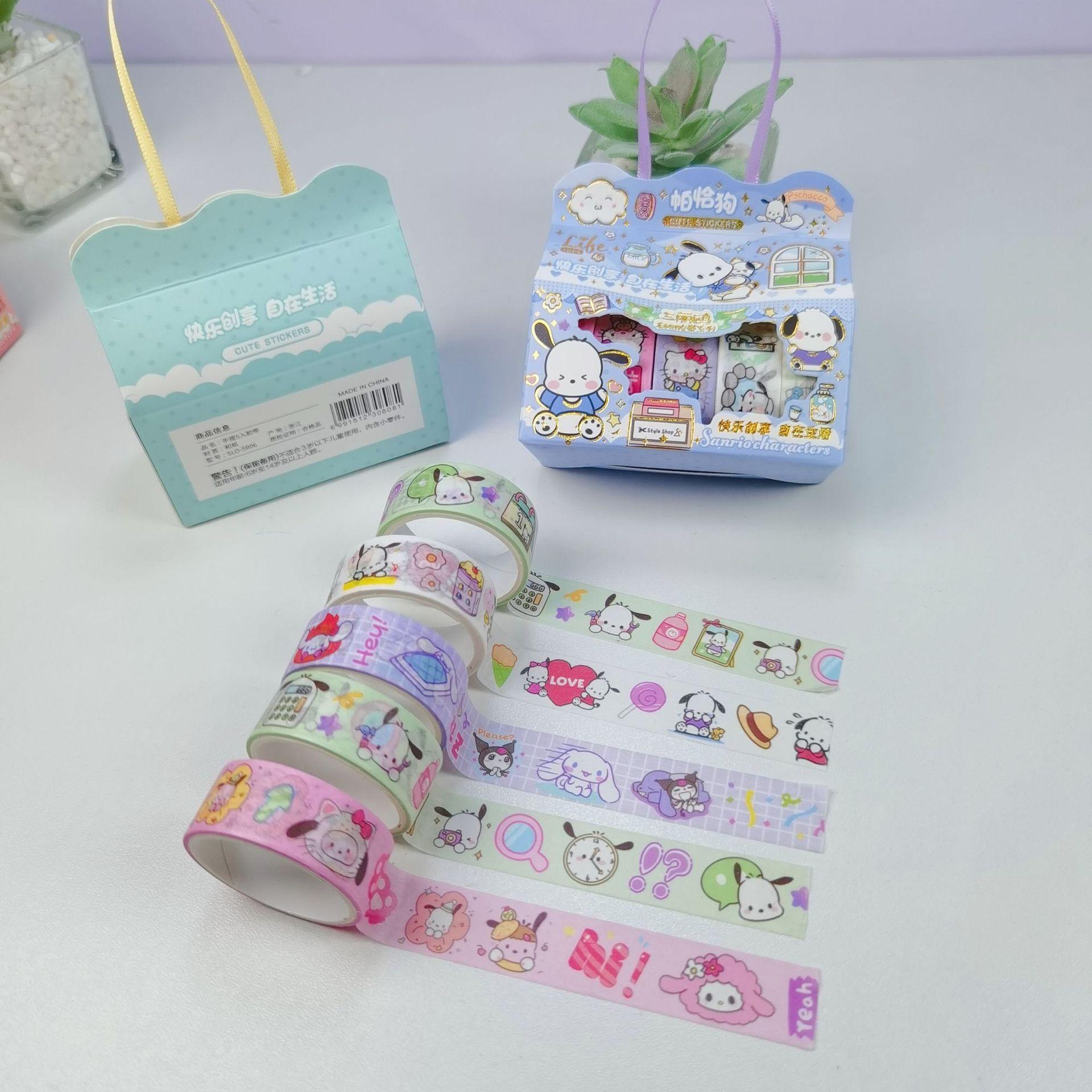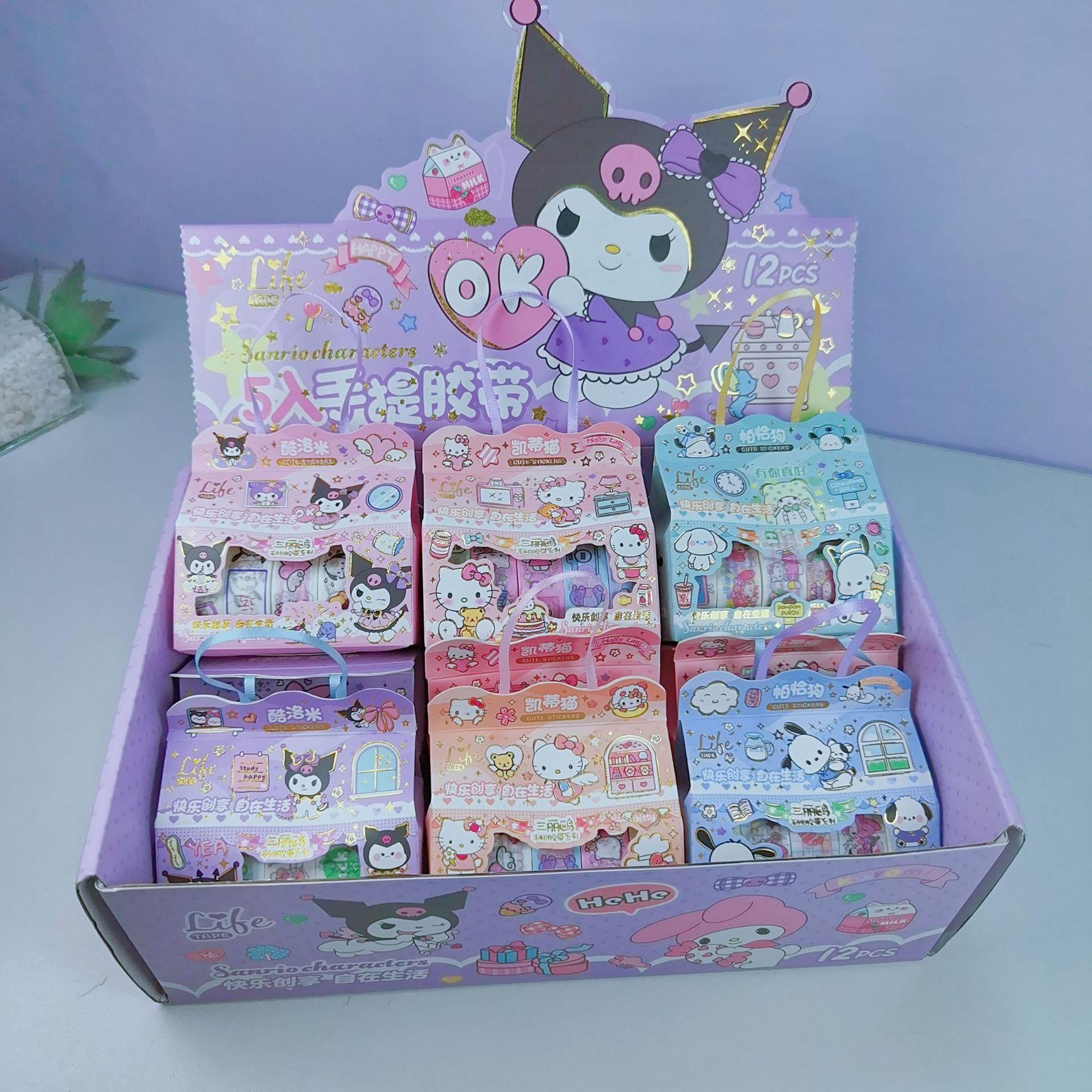 Dibujo animado Sanrio 5-en-mano y cinta de papel estudiante diy creativo Cinta de diario juguete cinta coolomi