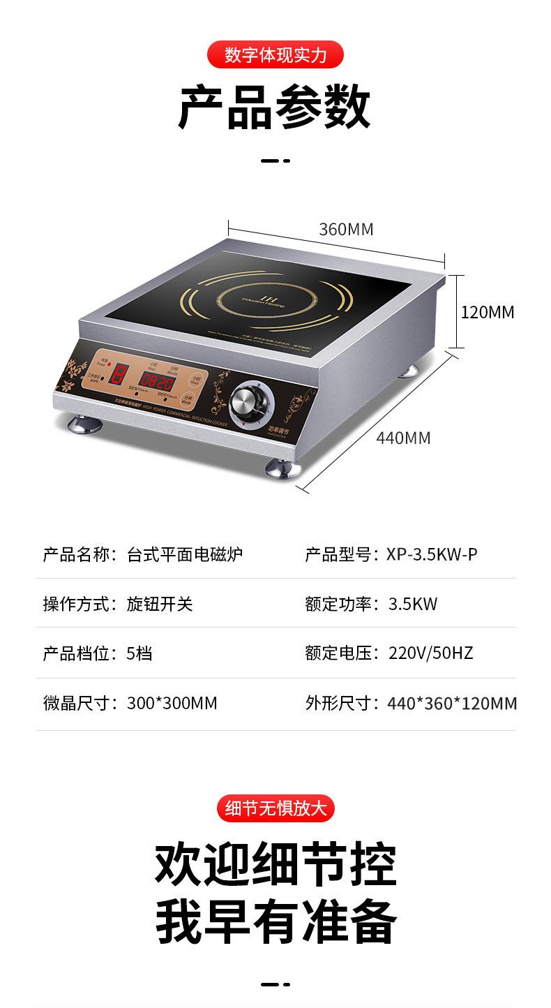 Cocina de inducción comercial, cocina de hotel, estufa para cocinar, salteado, sopa marinada, cocina de inducción plana de 3500 W, venta al por mayor