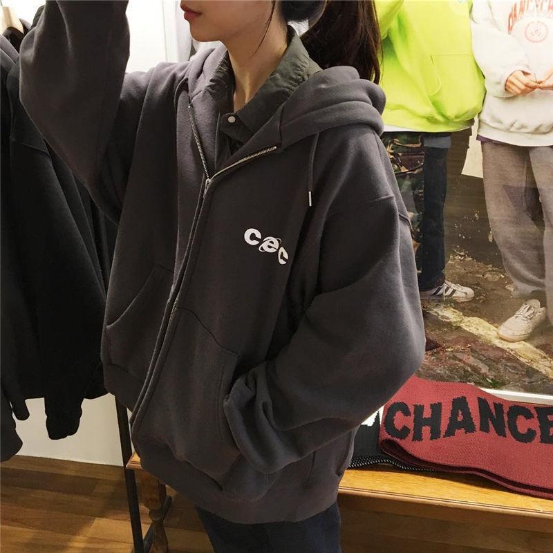 2025 Nuevo Otoño e Invierno Ropa de Pareja Estilo Coreano Cárdigan con Cremallera Estampado Sudadera de Terciopelo con Capucha Chaqueta Holgada para Estudiantes de Mujer