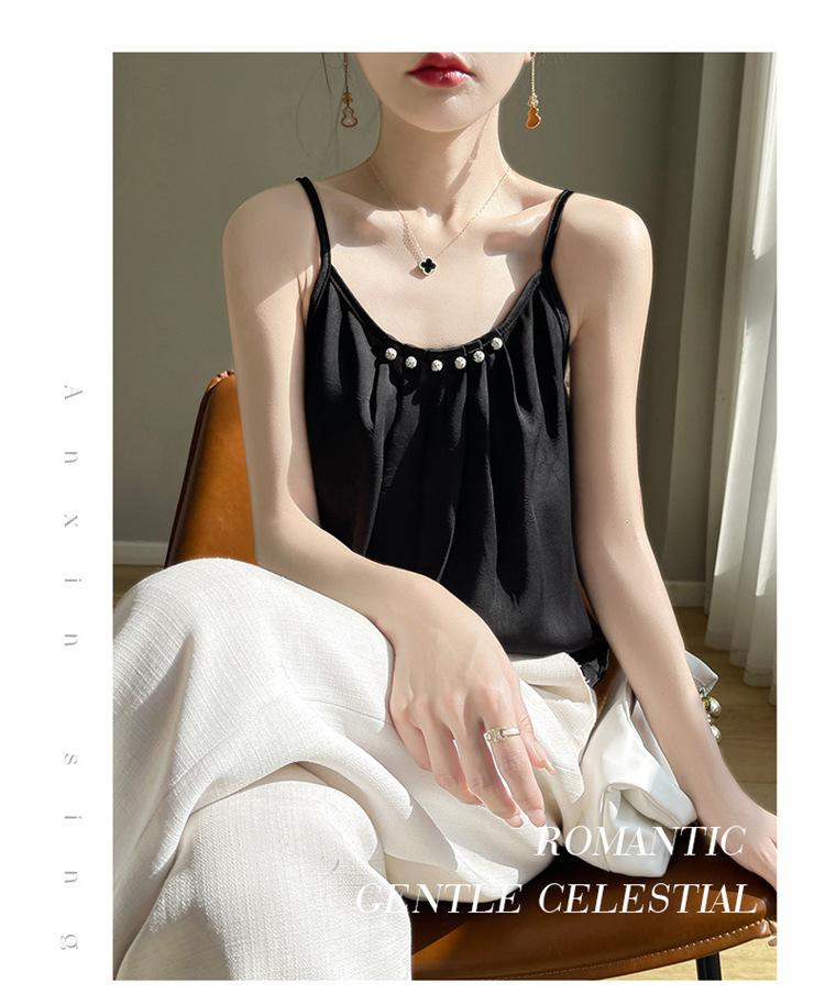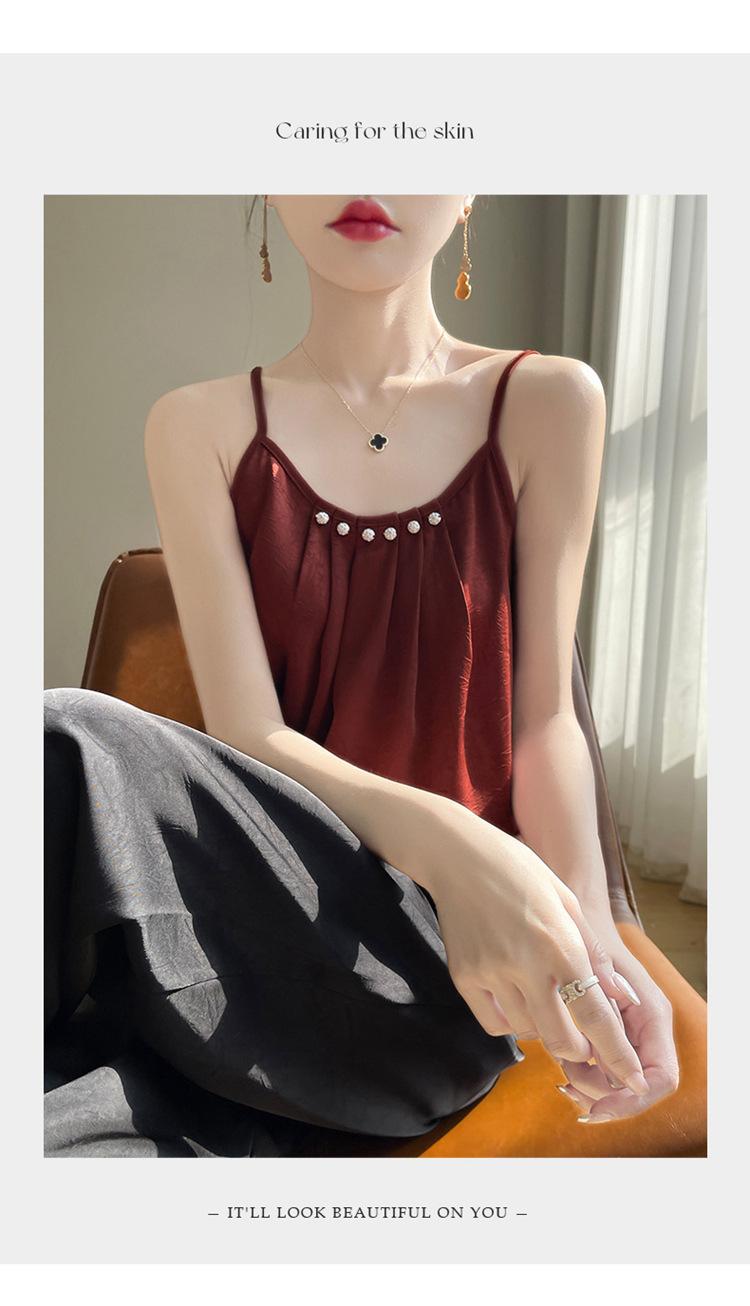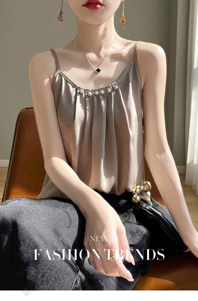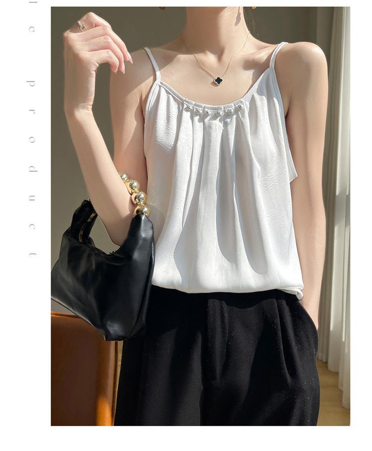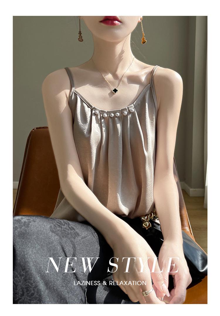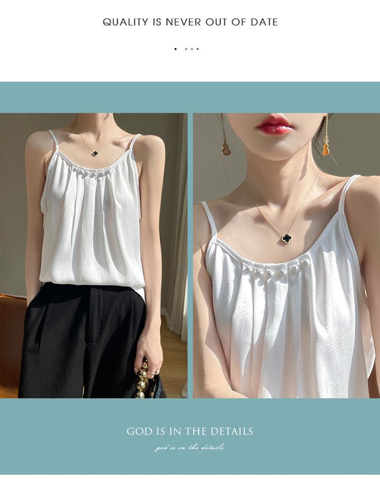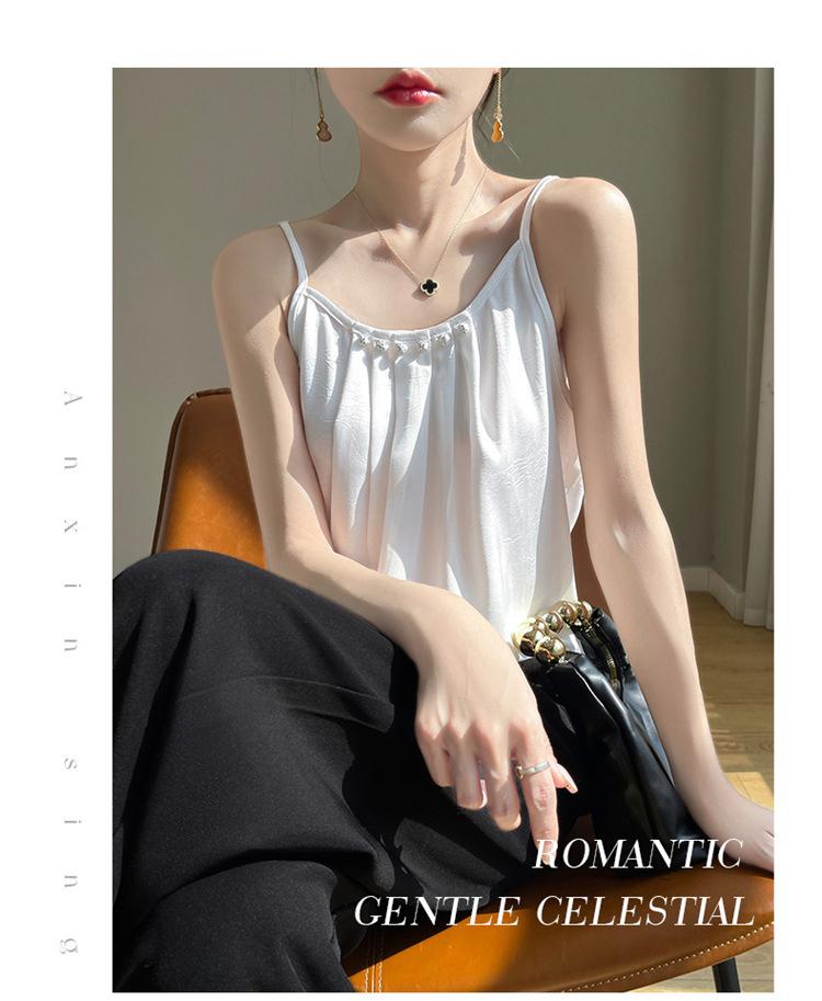 Ropa de Verano Nueva para Mujer Transfronteriza 2025 Ajustada Cuello en V Corta Francesa Top Tubo Camisola de Seda de Hielo Tops de Mujer