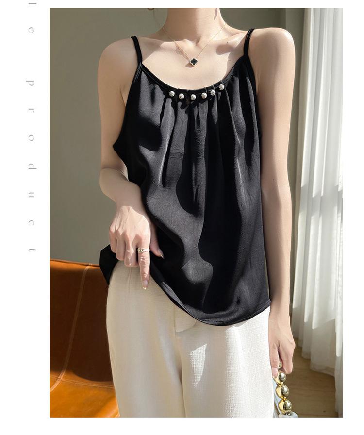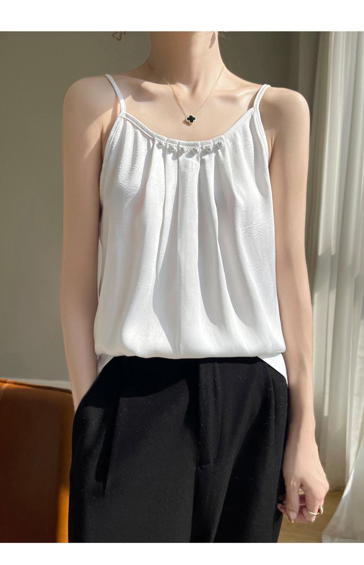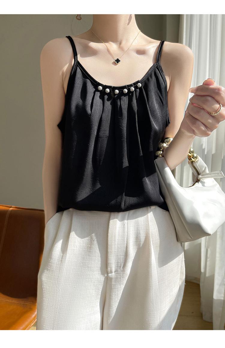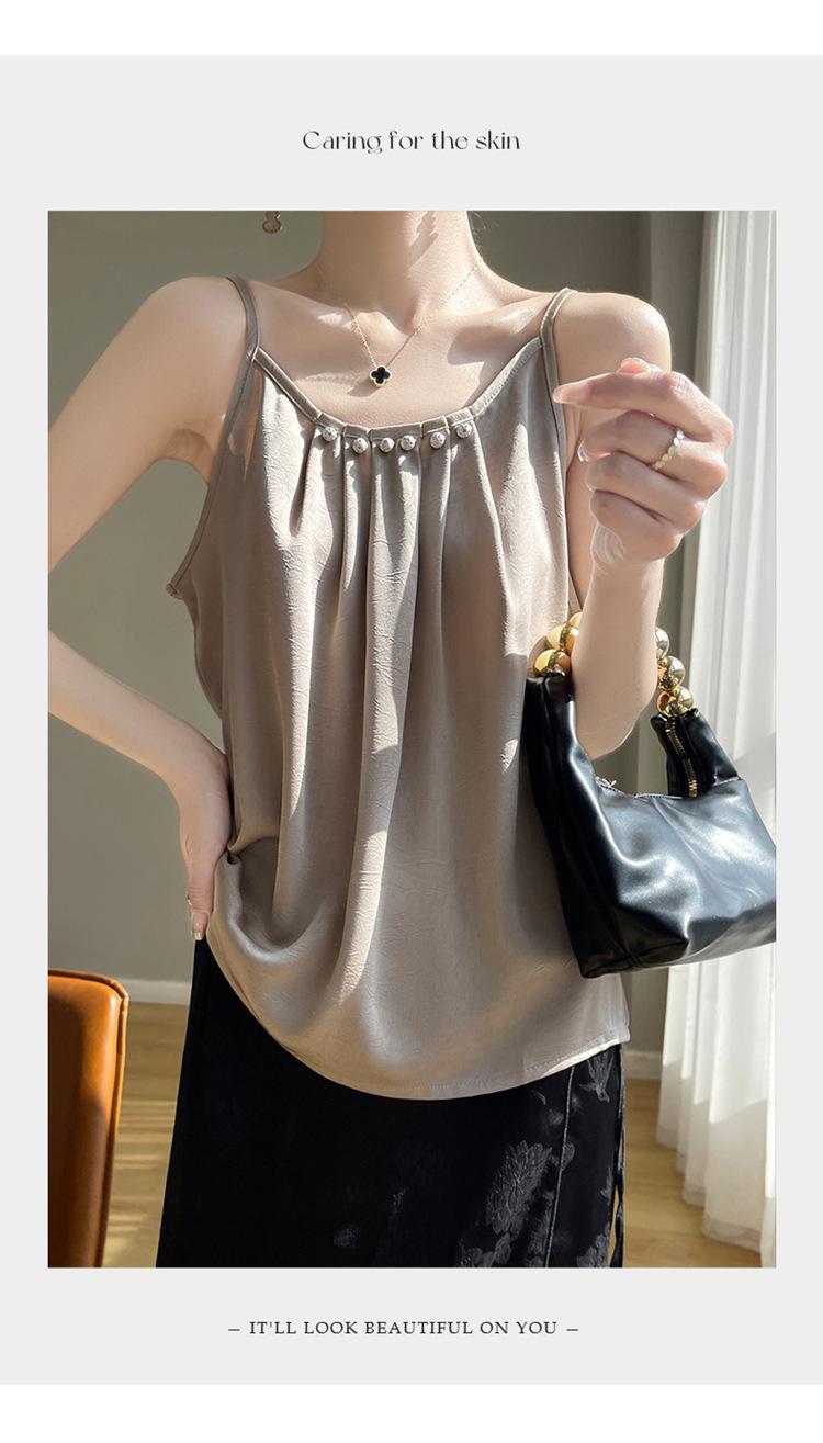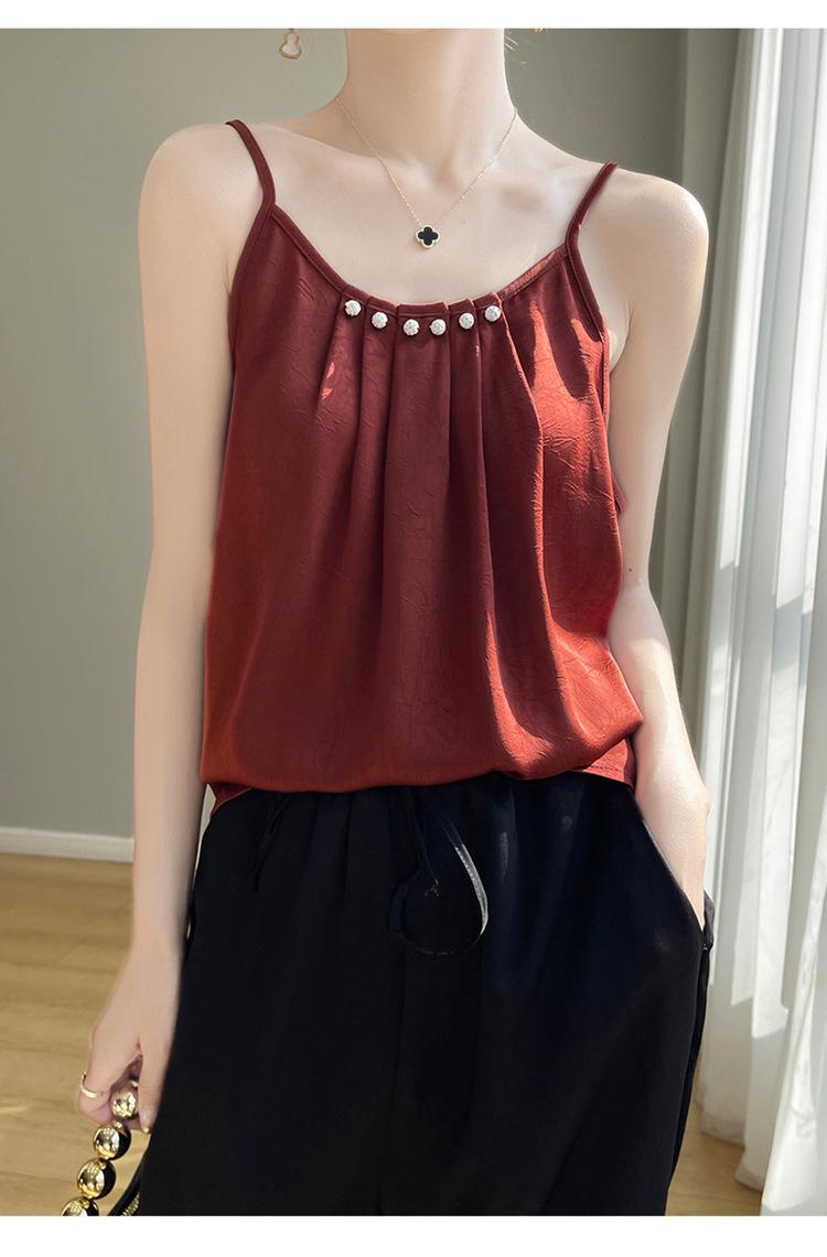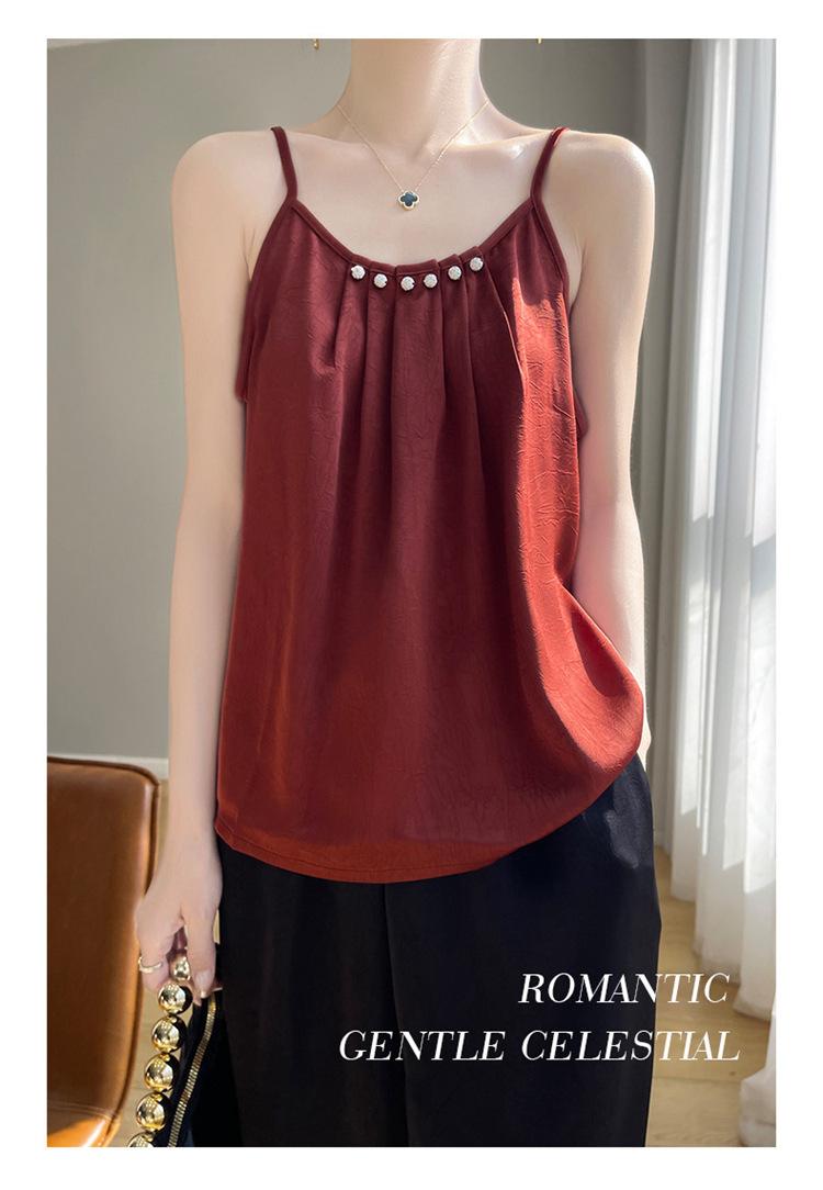 Ropa de Verano Nueva para Mujer Transfronteriza 2025 Ajustada Cuello en V Corta Francesa Top Tubo Camisola de Seda de Hielo Tops de Mujer