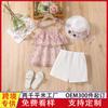 Ropa de verano 2024 para niñas, estilo coreano, cuello redondo, manga corta, algodón con burbujas, tela arrugada, estilo princesa de dibujos animados, para el hogar