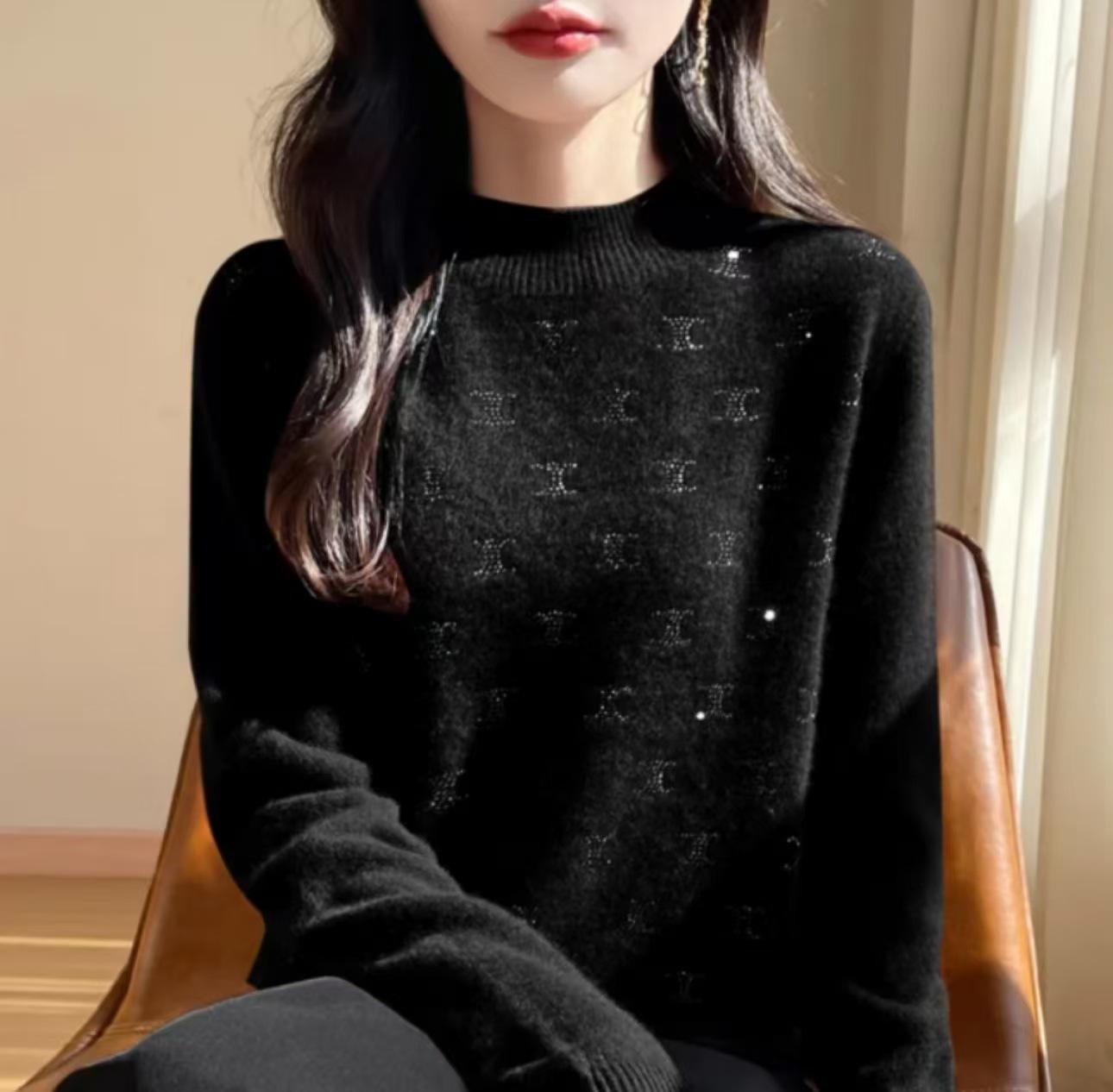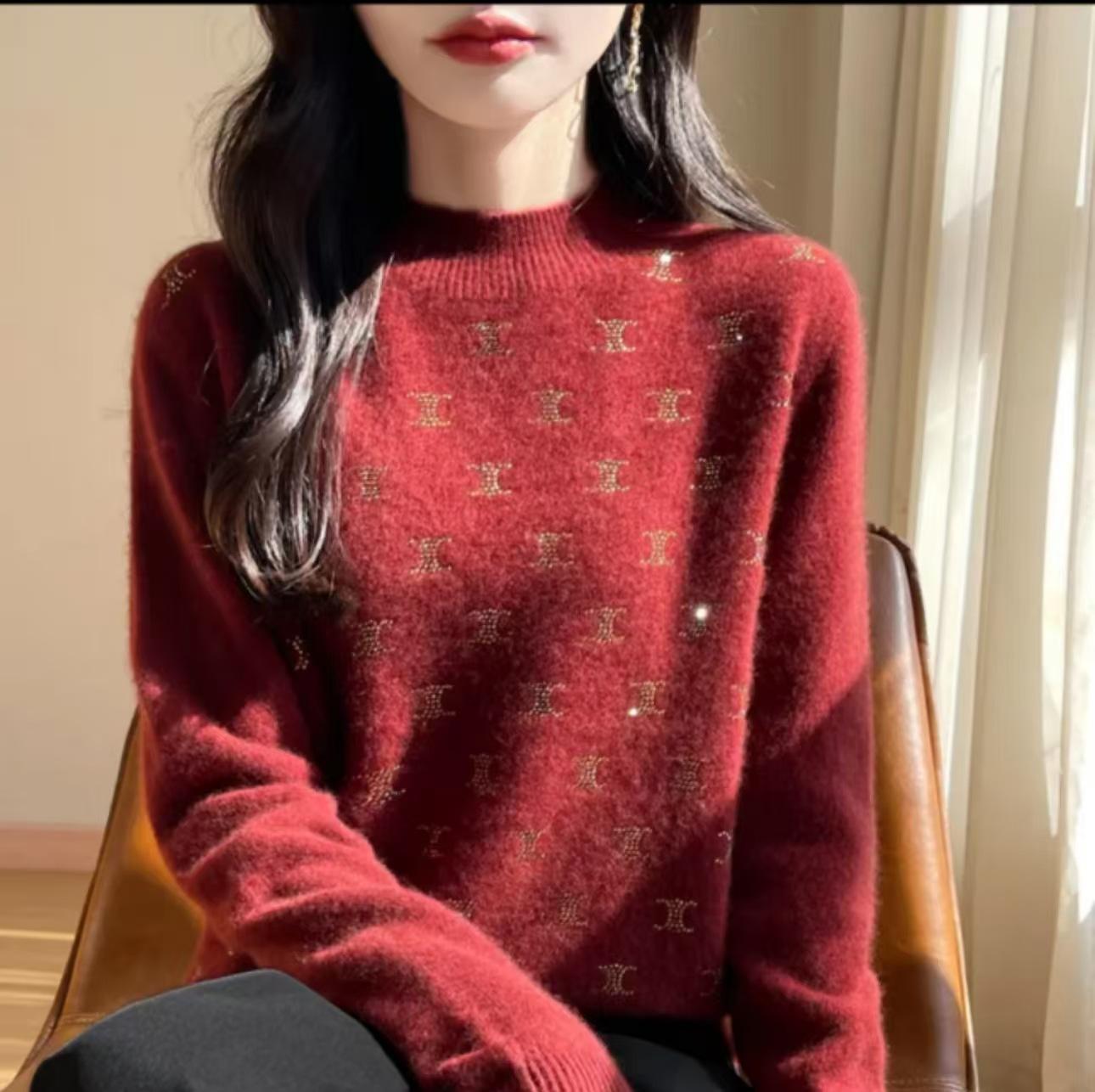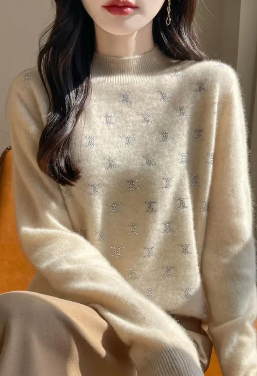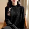 Fabricante Venta al por Mayor 2025 Nuevo Suéter Pulóver de Otoño e Invierno con Cuello Semialto de Pedrería, Top Grueso de Punto Holgado para Mujer