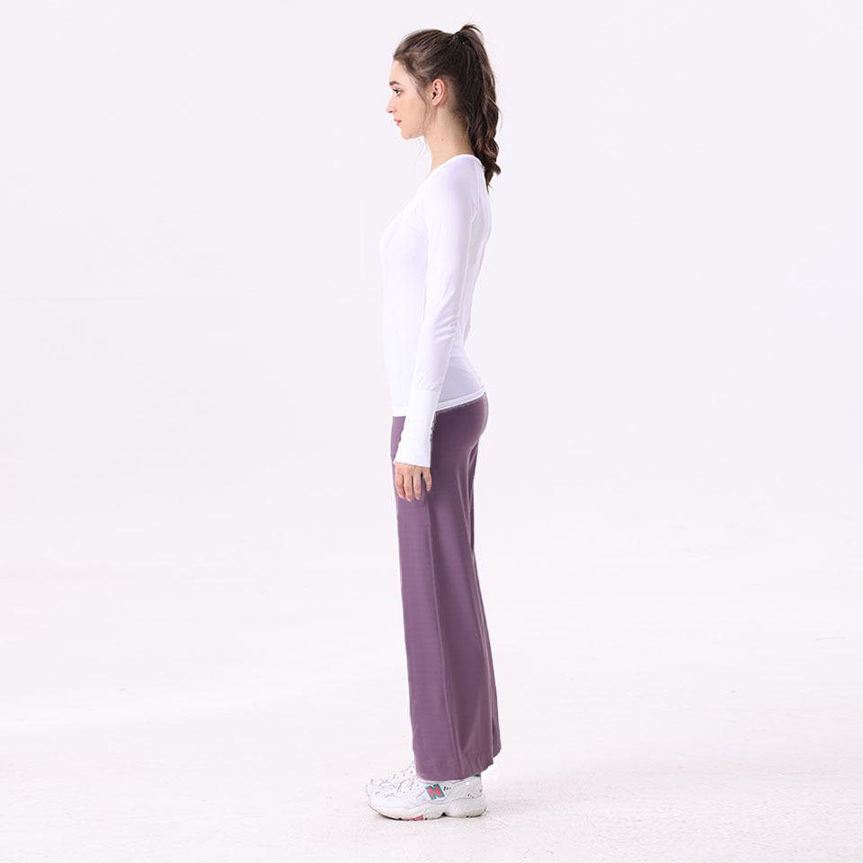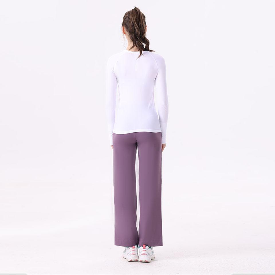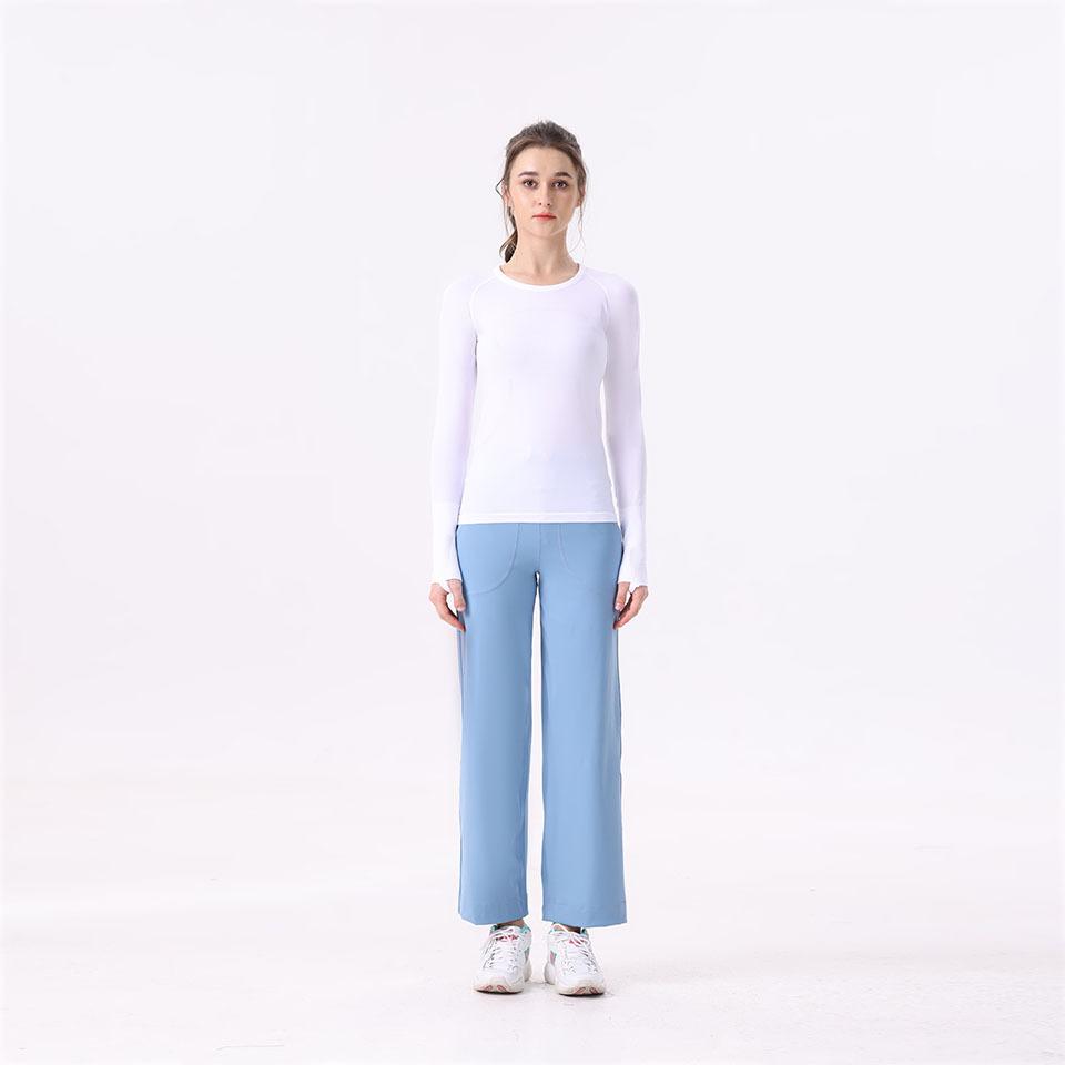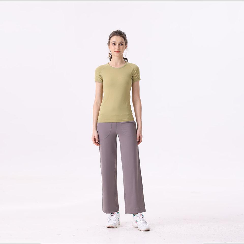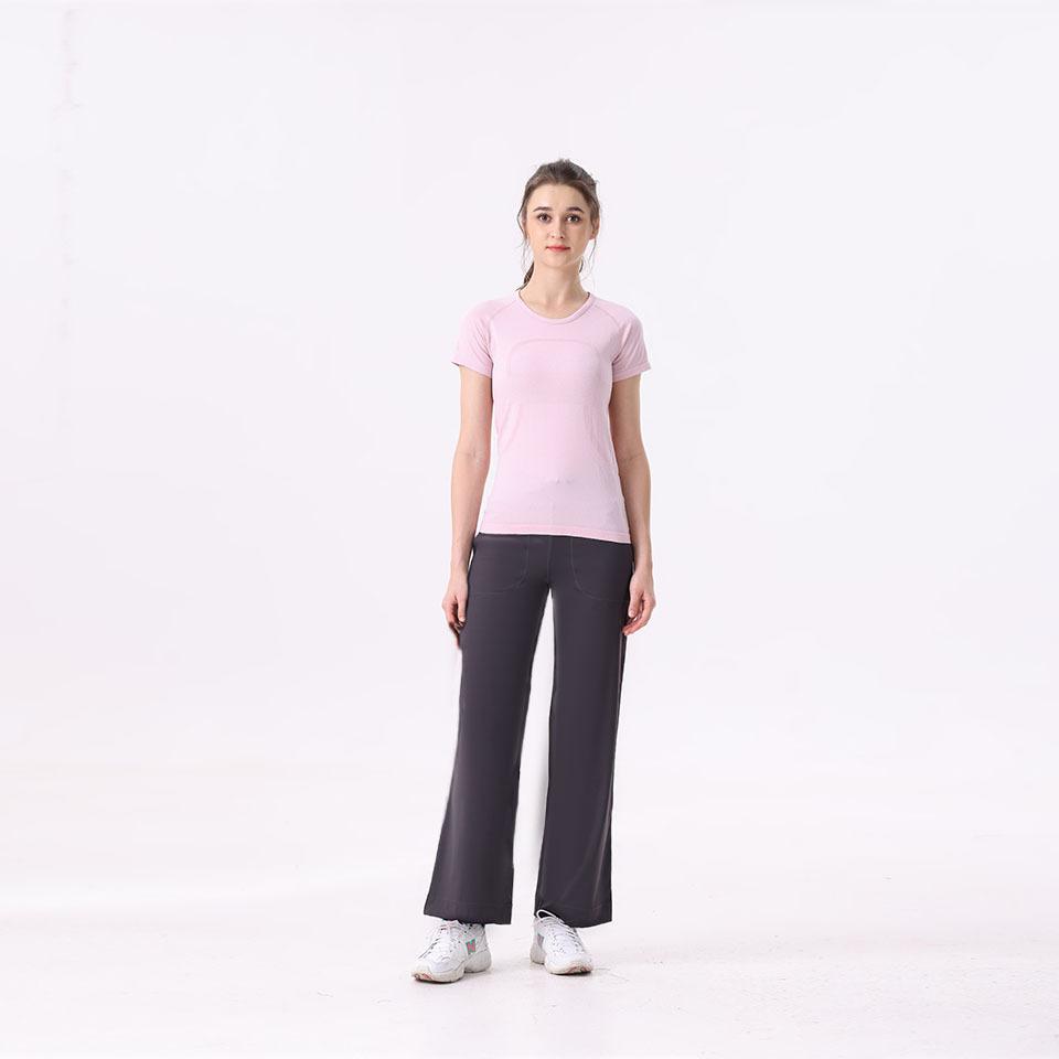 Camisetas deportivas de manga larga Lululemon para yoga, secado rápido, cuello redondo, mallas absorbentes de sudor para correr con etiqueta.
