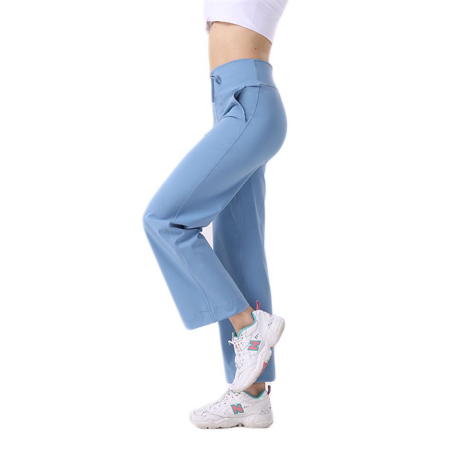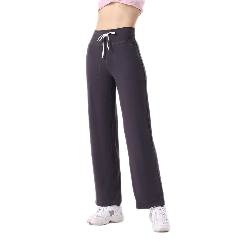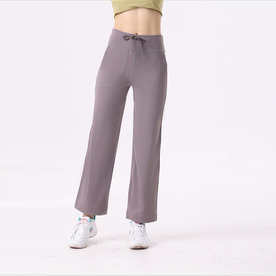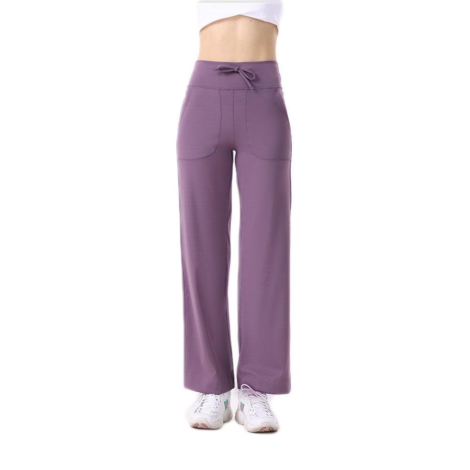 Pantalones de yoga Lululemon con bolsillos laterales dobles, cintura cepillada, color melocotón, sin líneas vergonzosas, color piel, cintura alta, para correr y fitness.