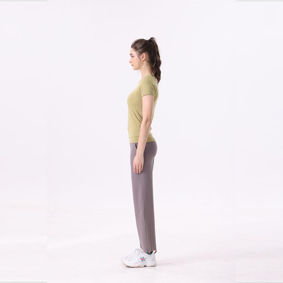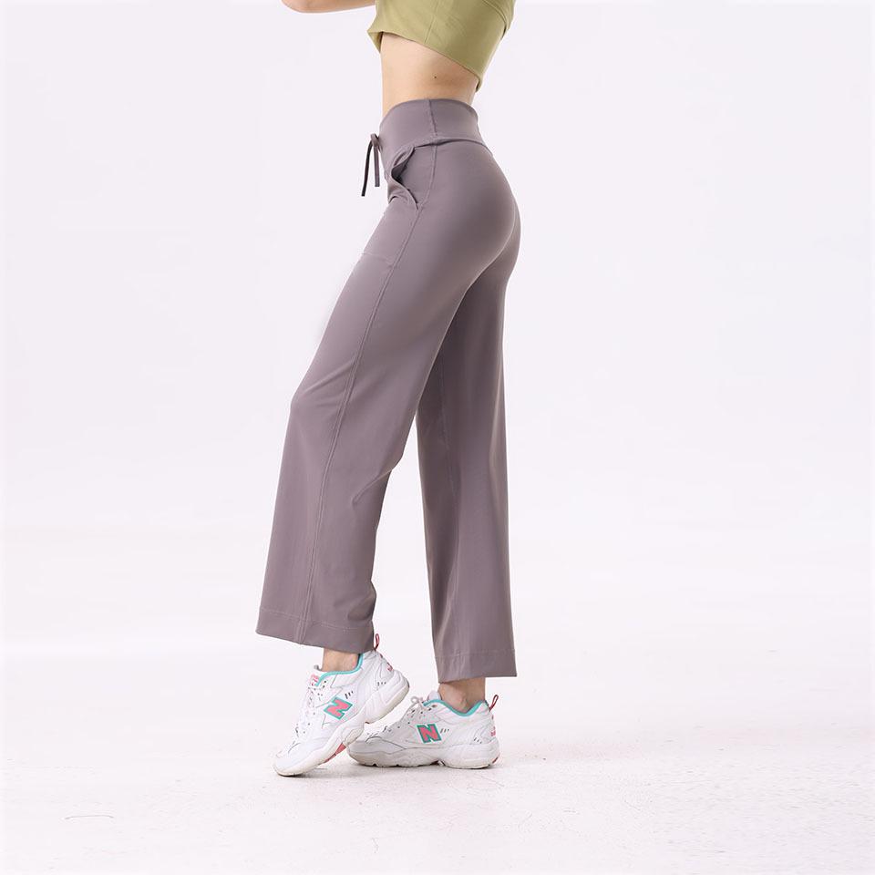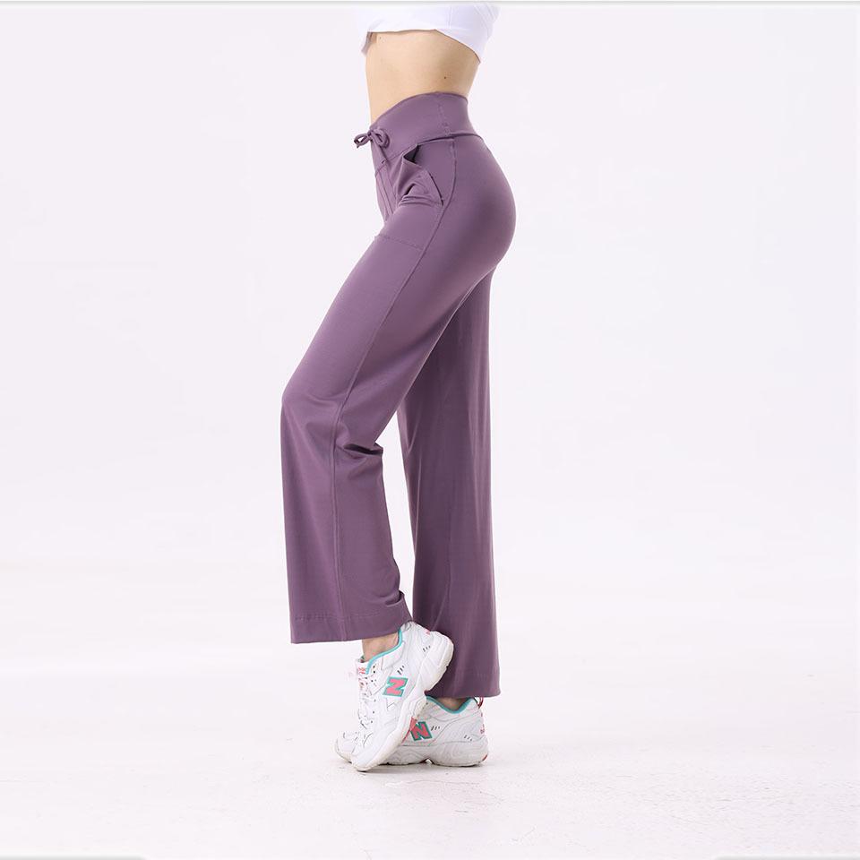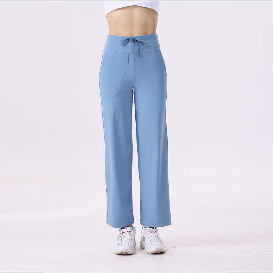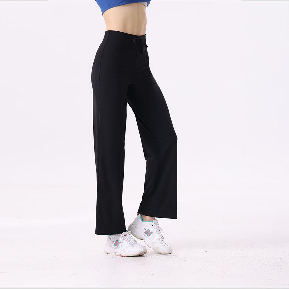 Pantalones de yoga Lululemon con bolsillos laterales dobles, cintura cepillada, color melocotón, sin líneas vergonzosas, color piel, cintura alta, para correr y fitness.
