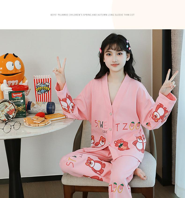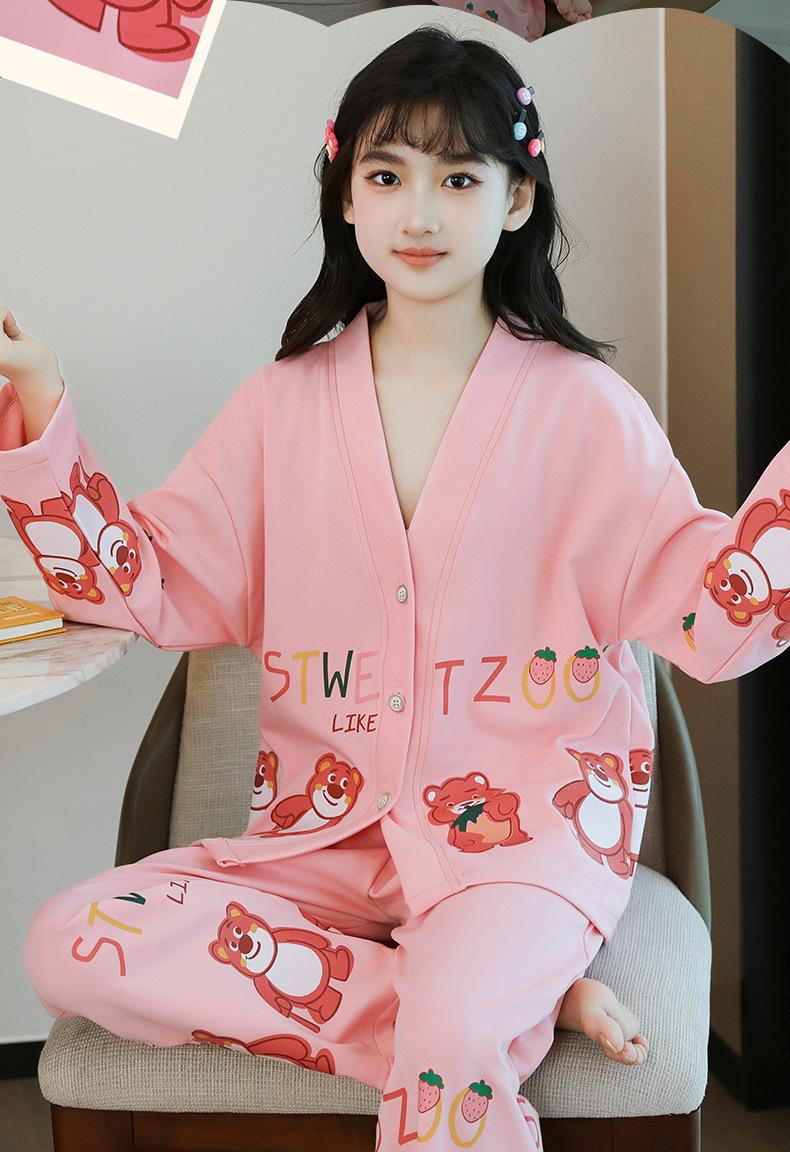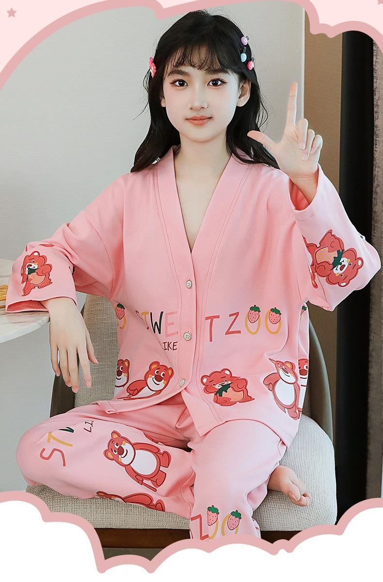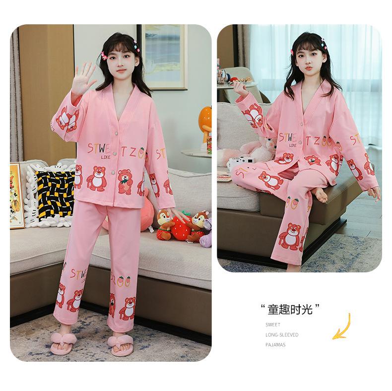 Pijamas nuevos para niñas otoño algodón puro lindos pijamas de dibujos animados para niñas estilo occidental bebé verano aire acondicionado ropa para el hogar