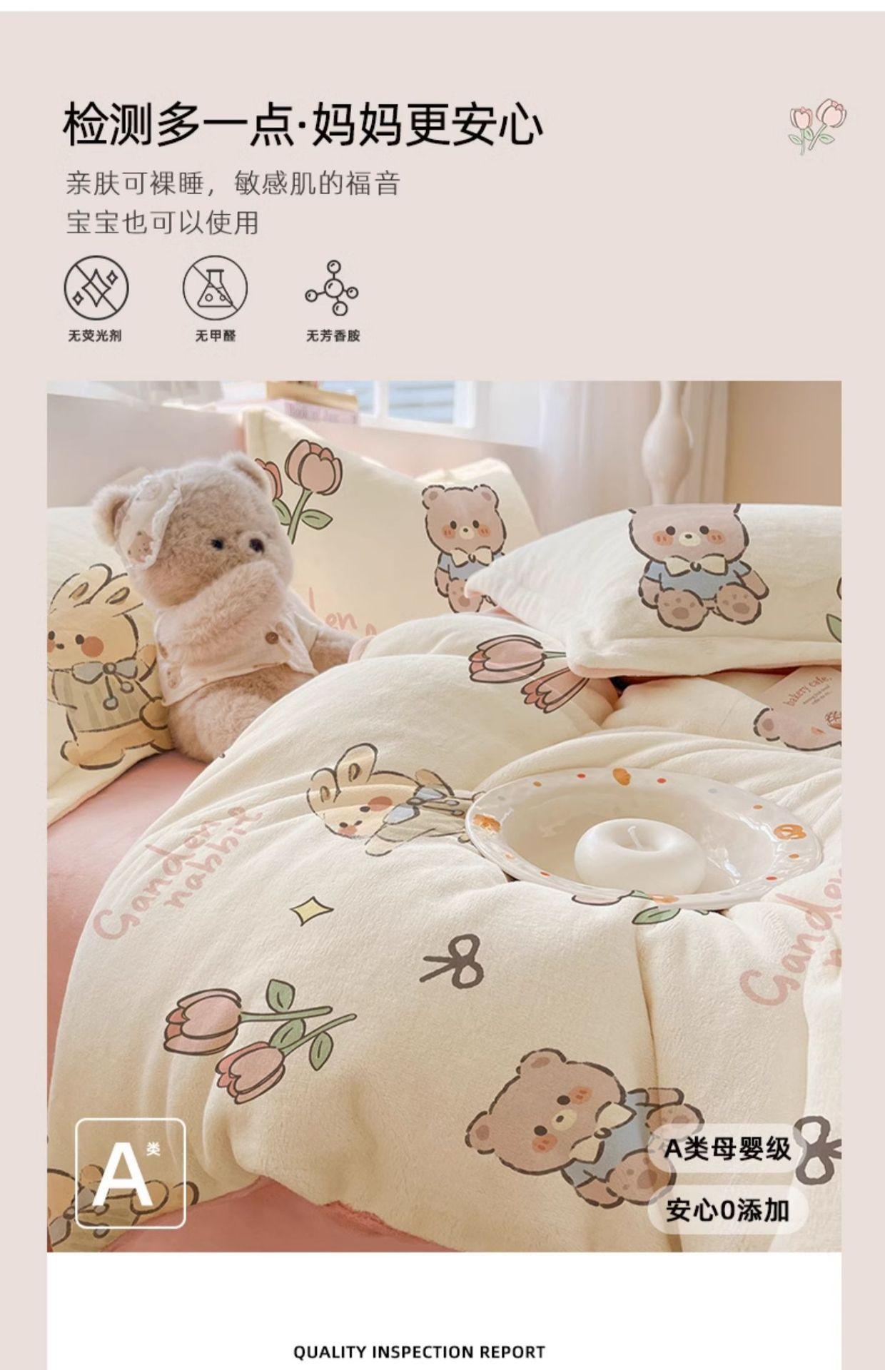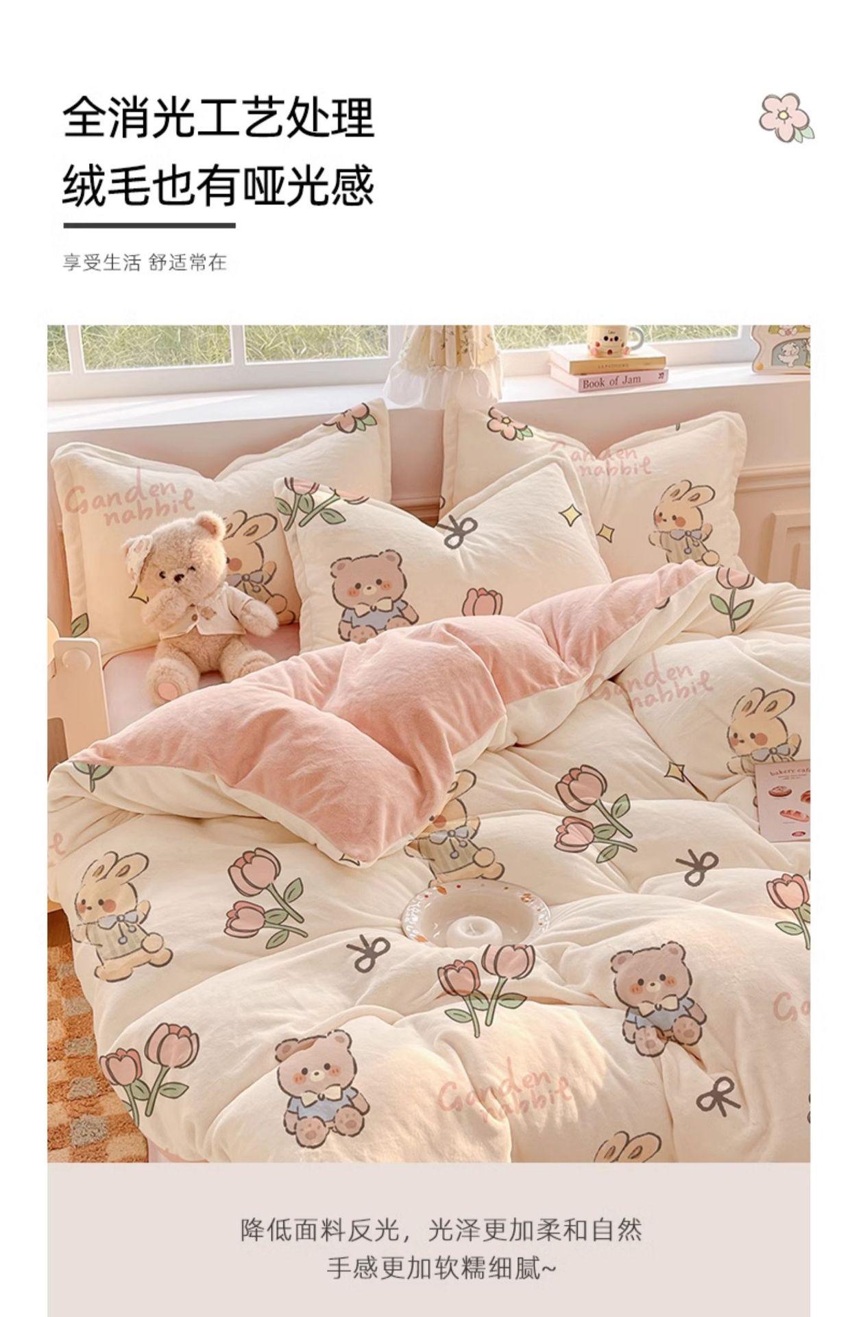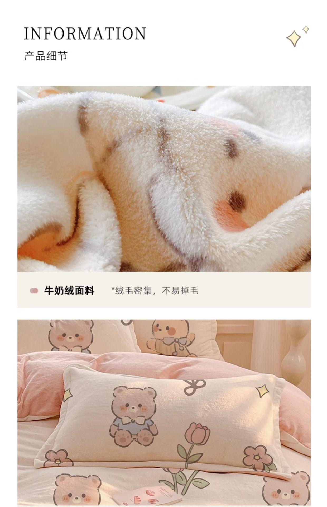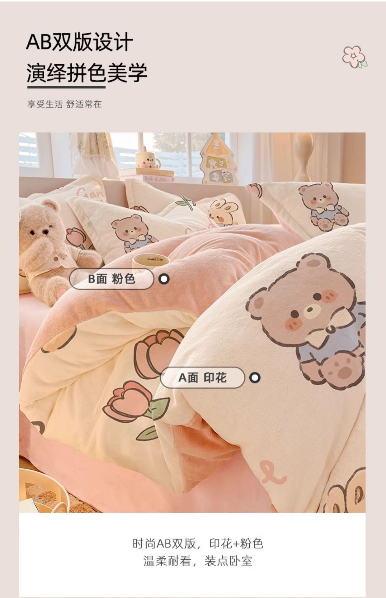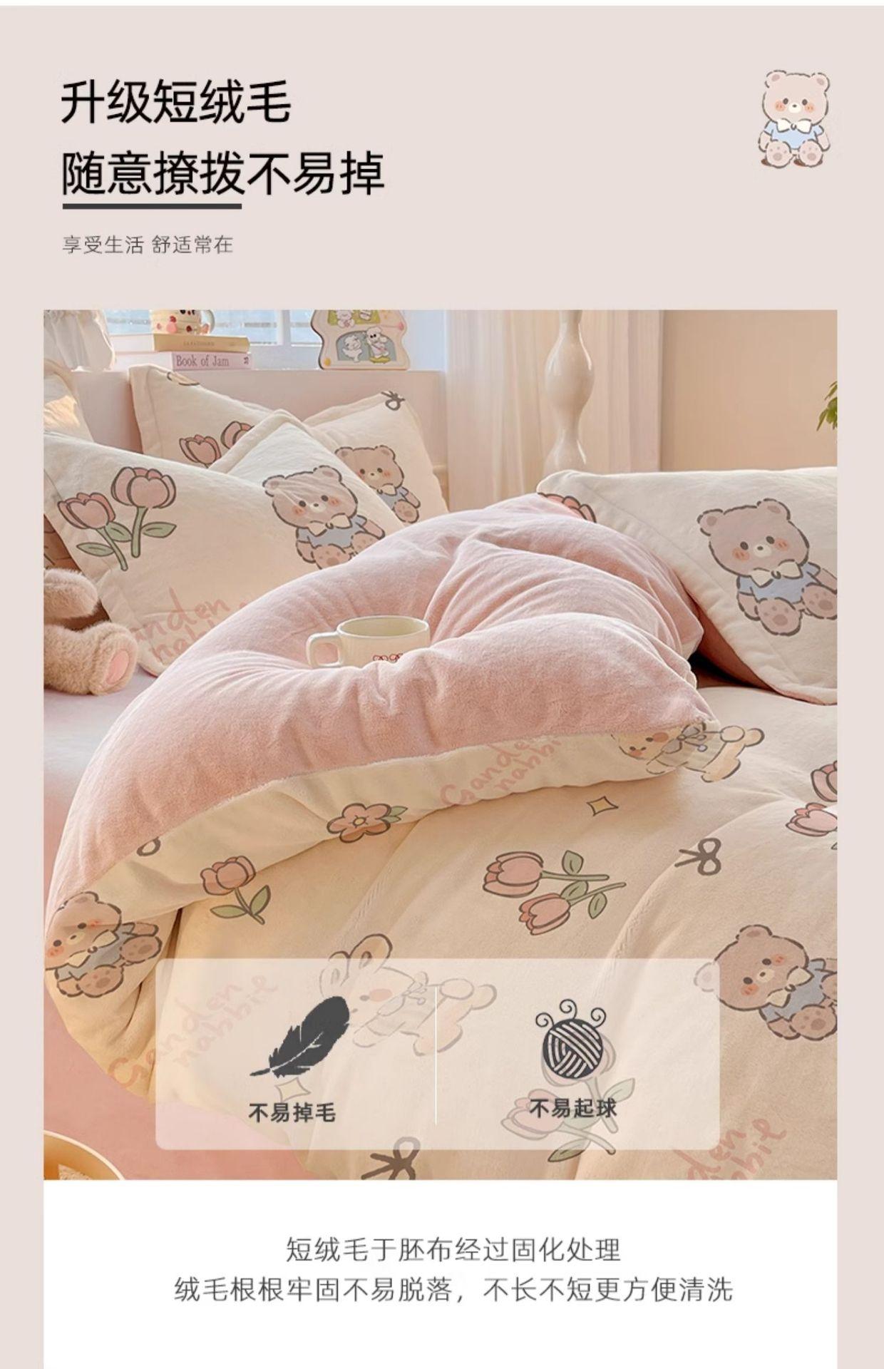 Juego de cuatro piezas de terciopelo de leche Otoño e Invierno Espesado Cubre edredón de terciopelo coral Franela de doble cara con forro polar Sábana Juego de tres piezas para dormitorio