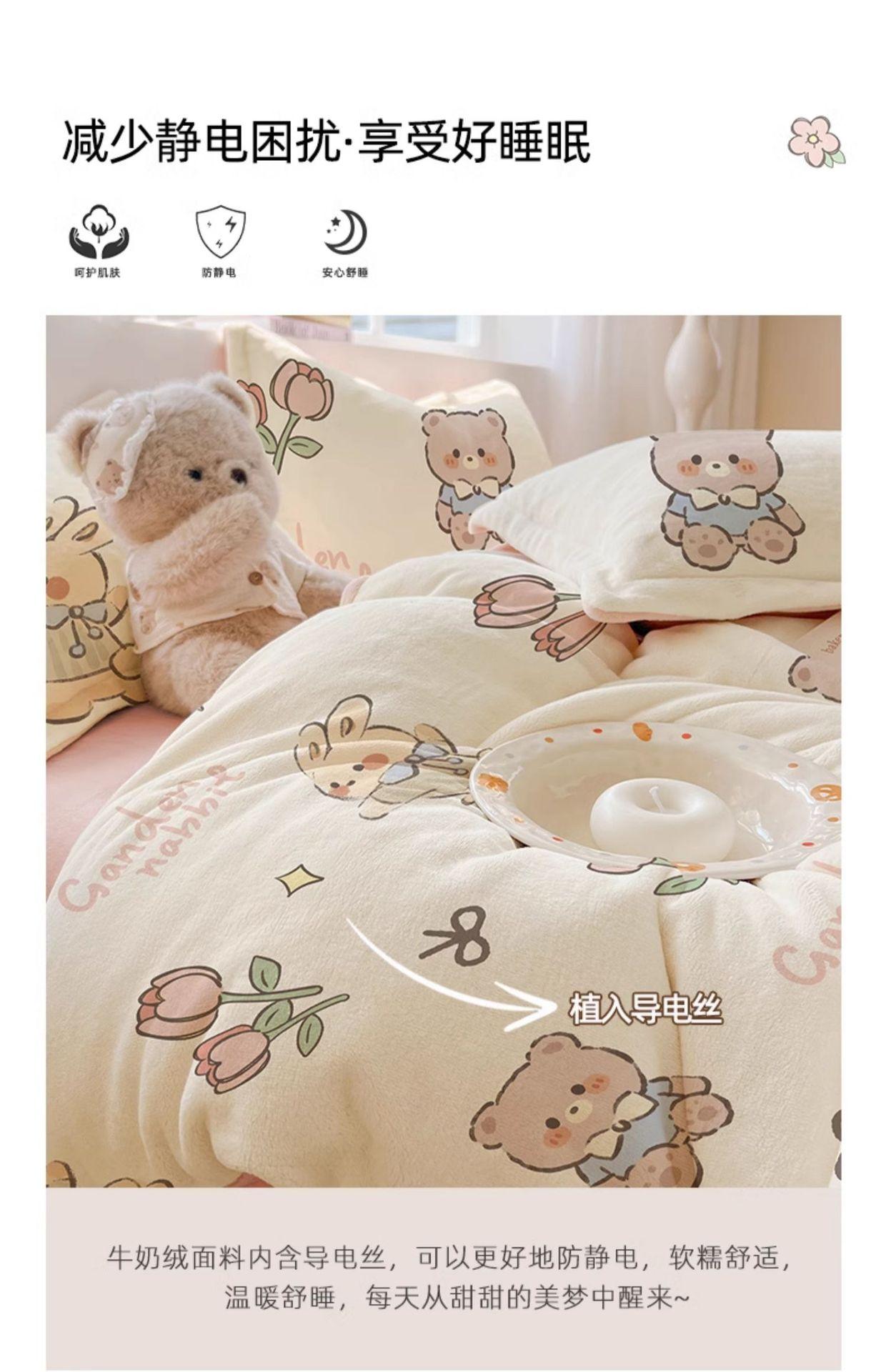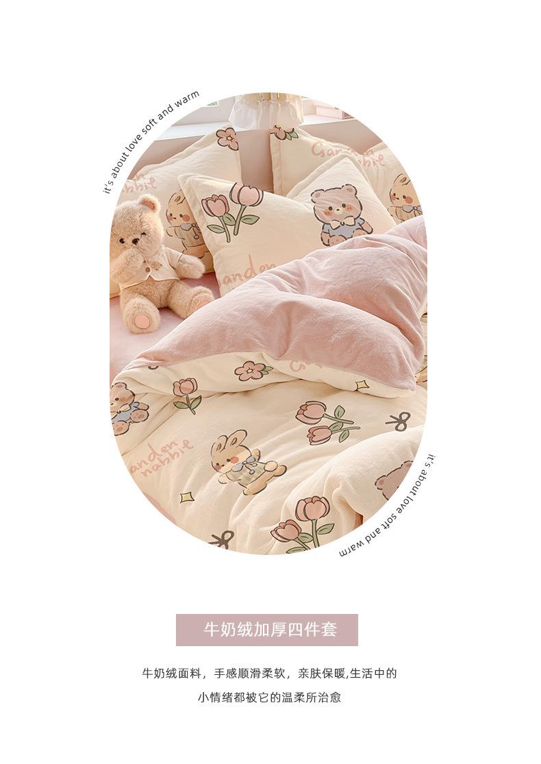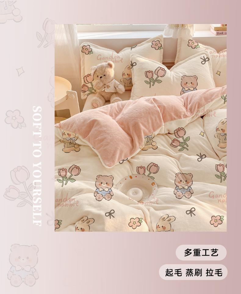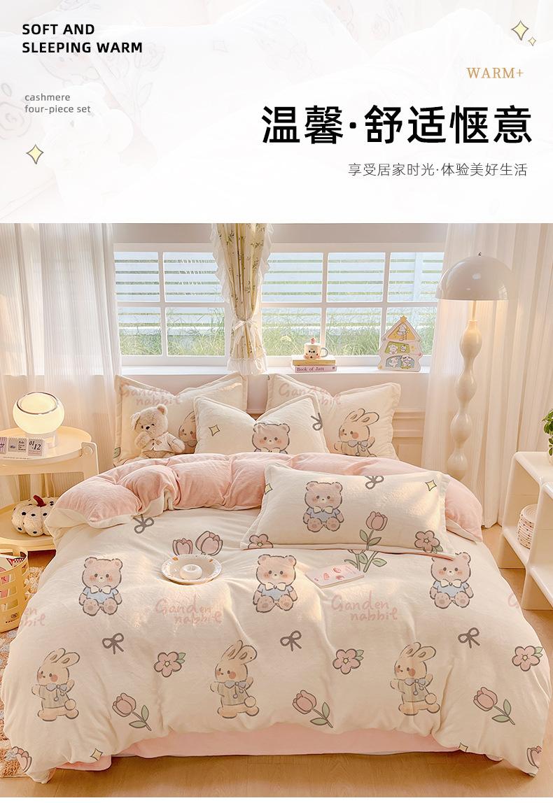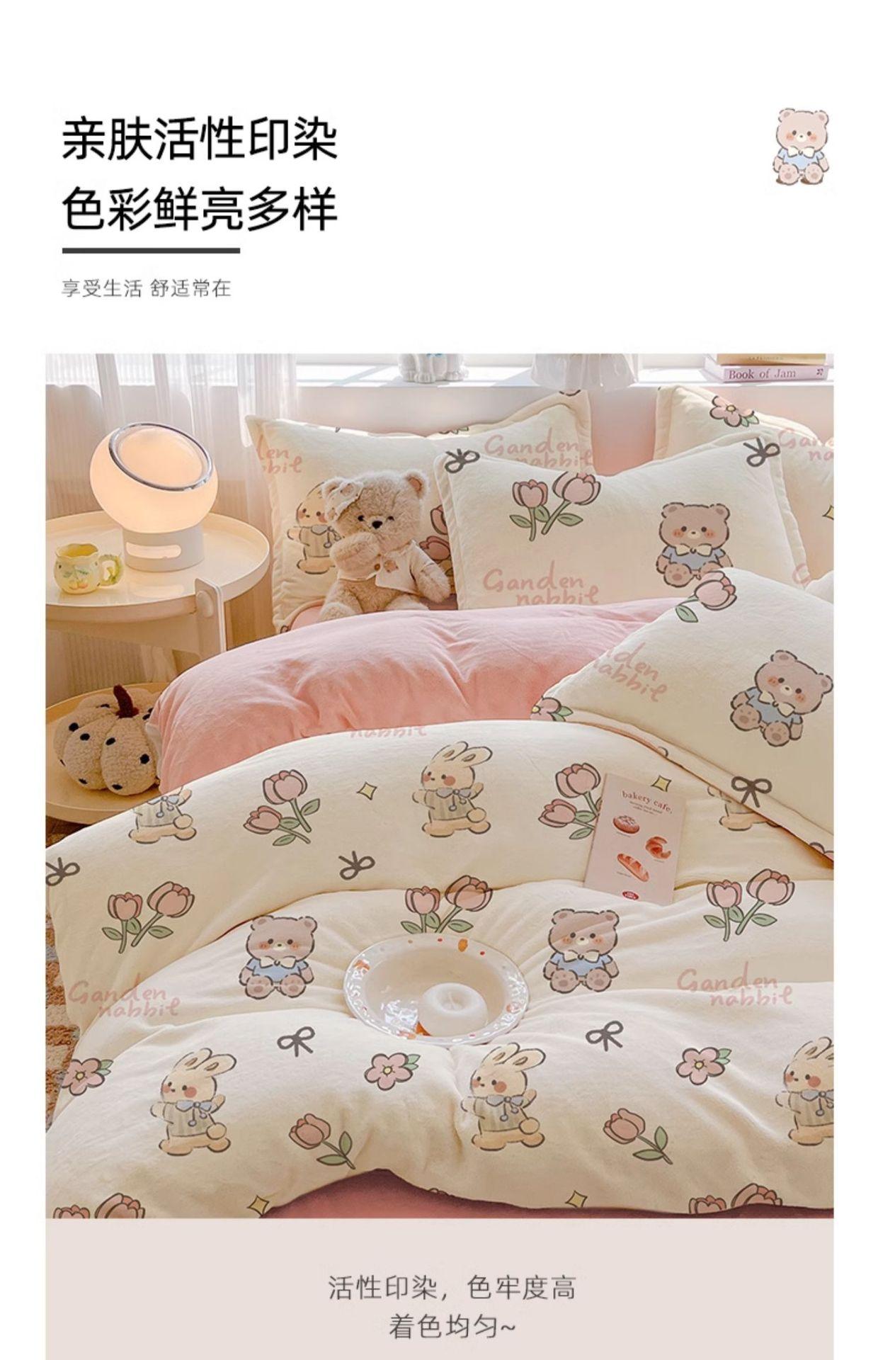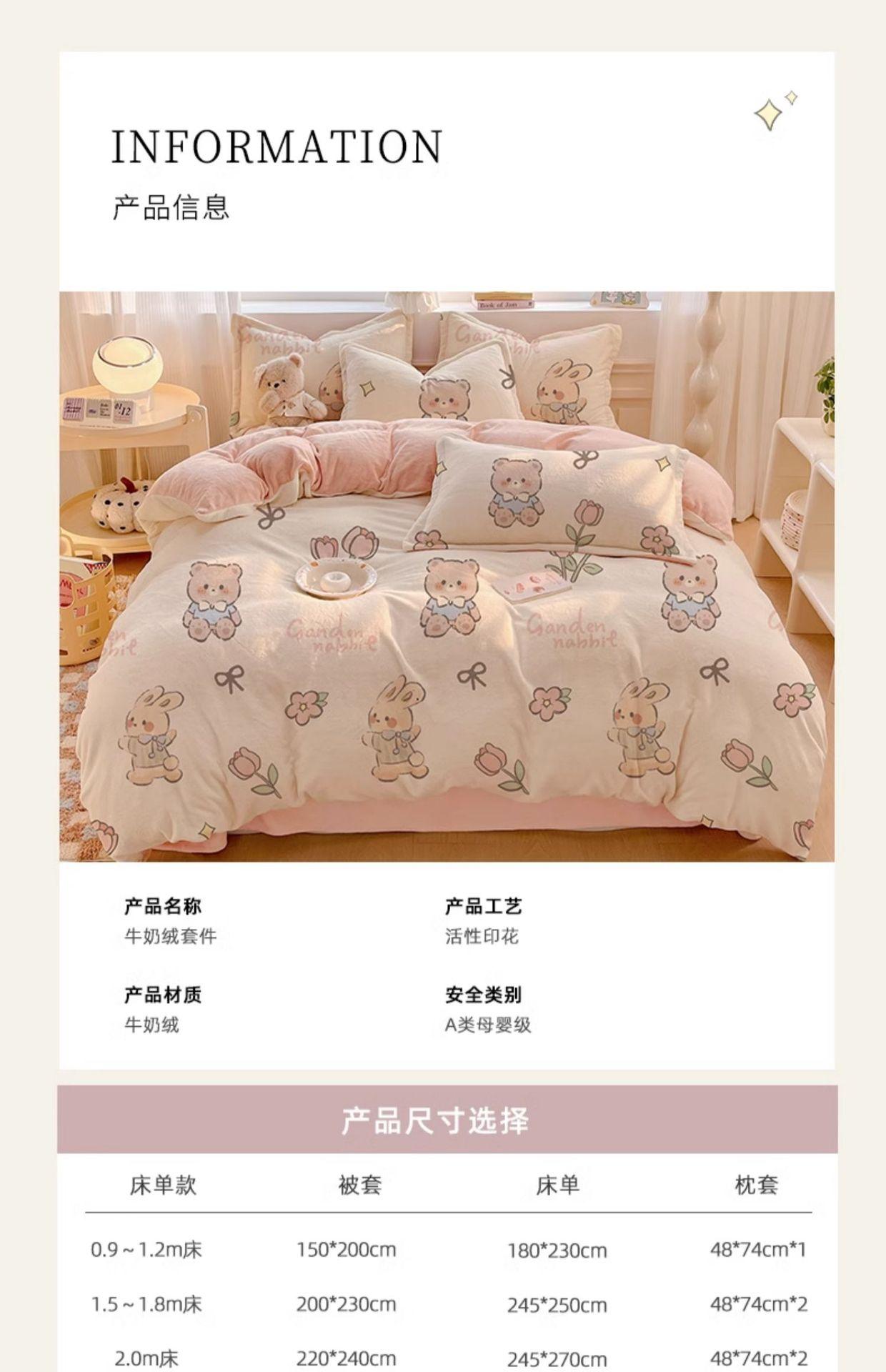 Juego de cuatro piezas de terciopelo de leche Otoño e Invierno Espesado Cubre edredón de terciopelo coral Franela de doble cara con forro polar Sábana Juego de tres piezas para dormitorio