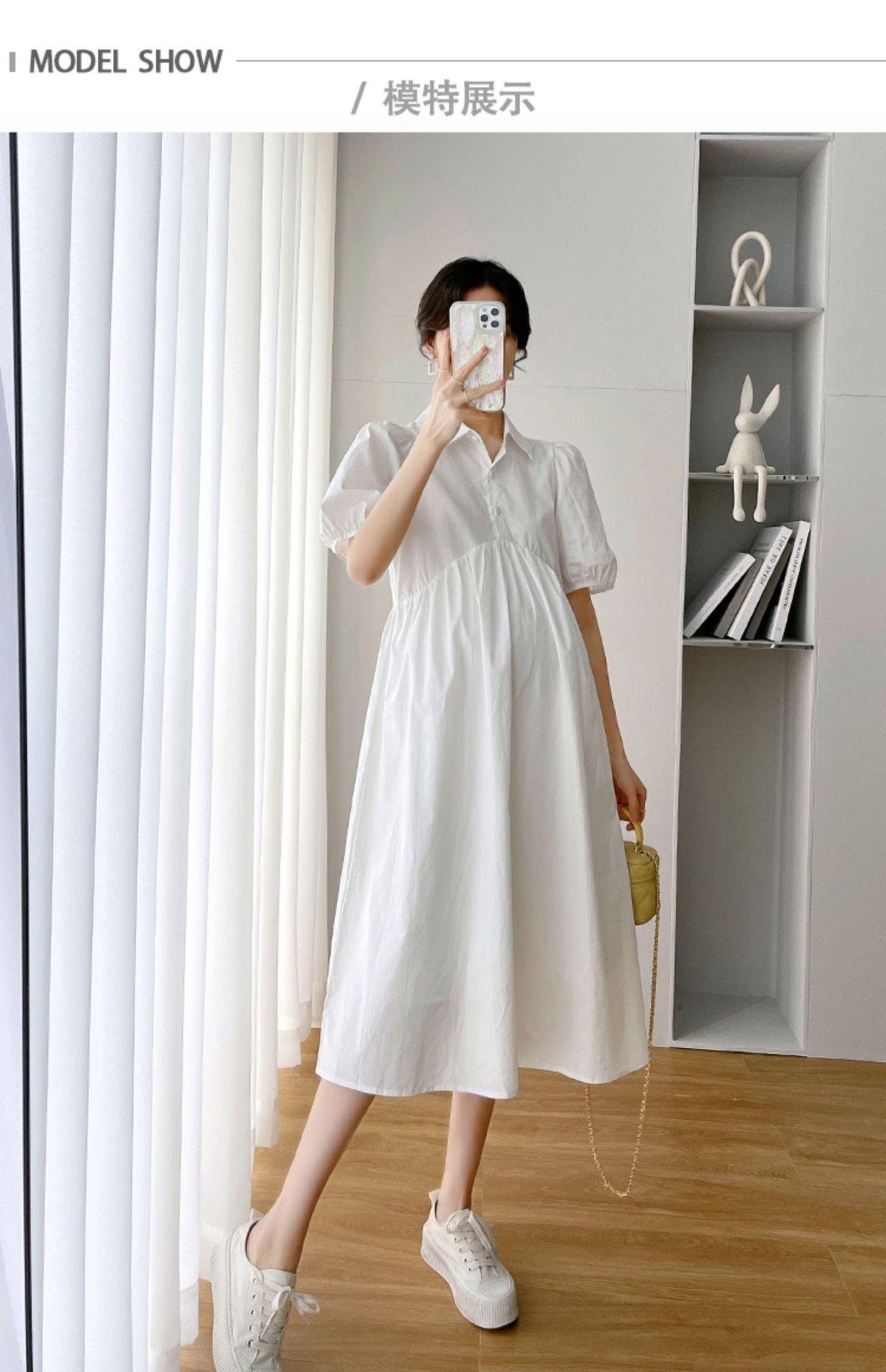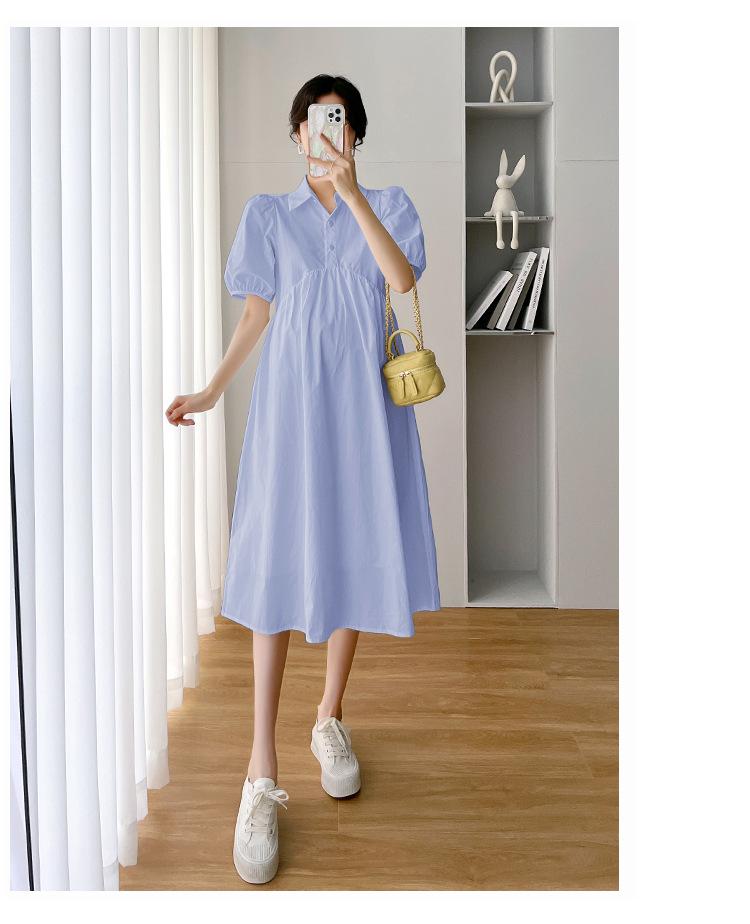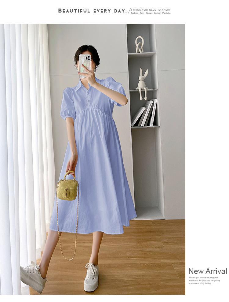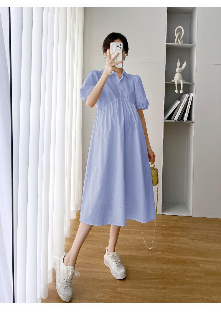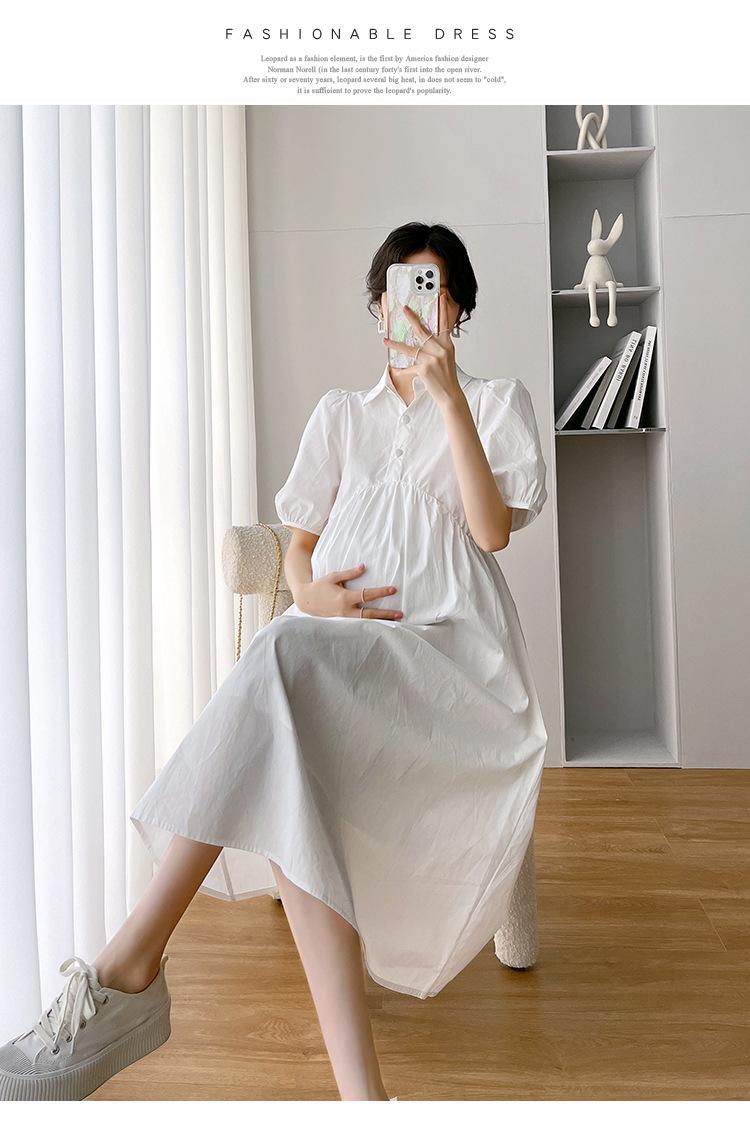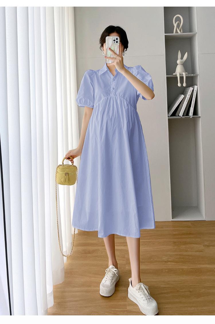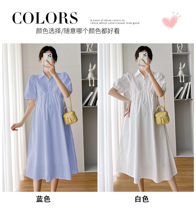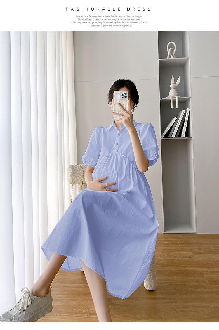 Vestido de maternidad de verano nuevo, vestido camisero de longitud media, vestido para embarazadas, cintura alta, color liso, para amamantar
