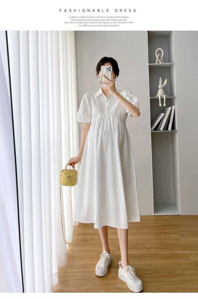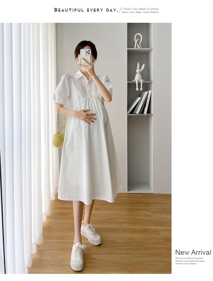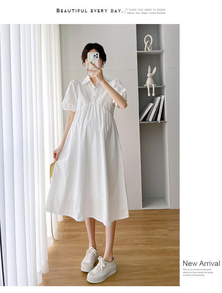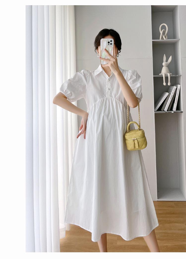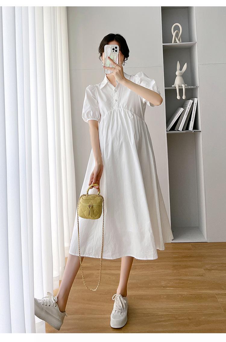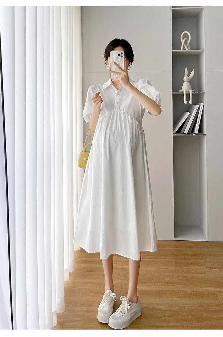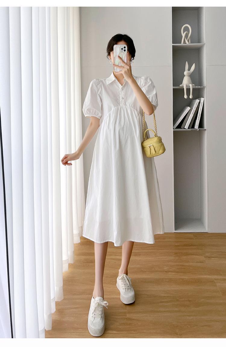 Vestido de maternidad de verano nuevo, vestido camisero de longitud media, vestido para embarazadas, cintura alta, color liso, para amamantar