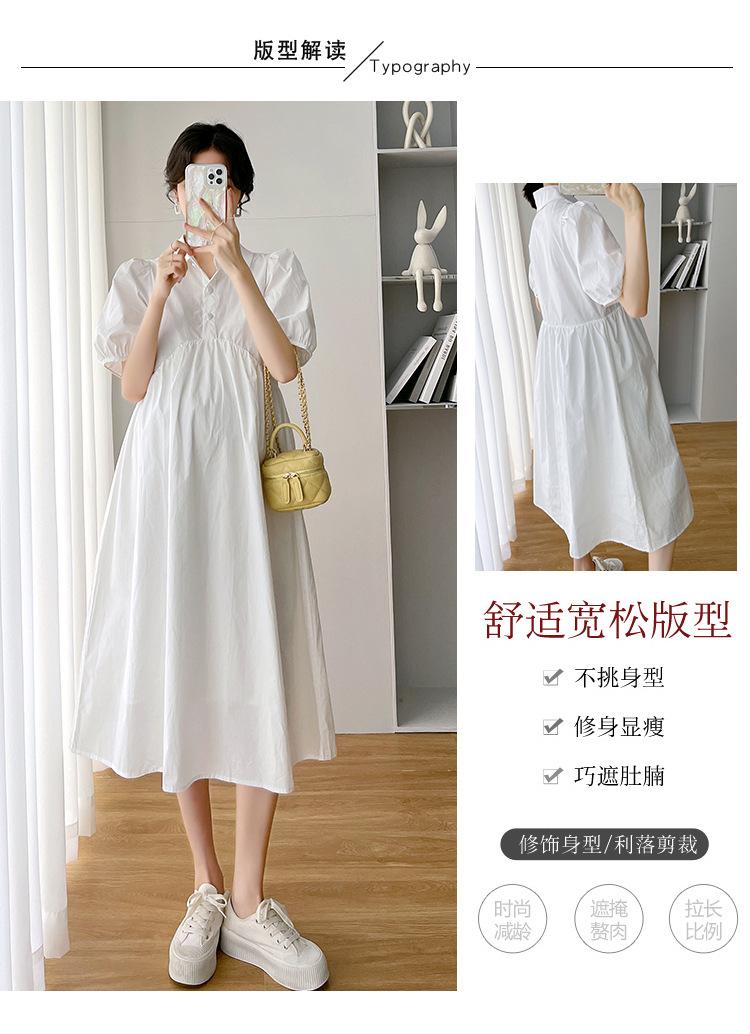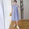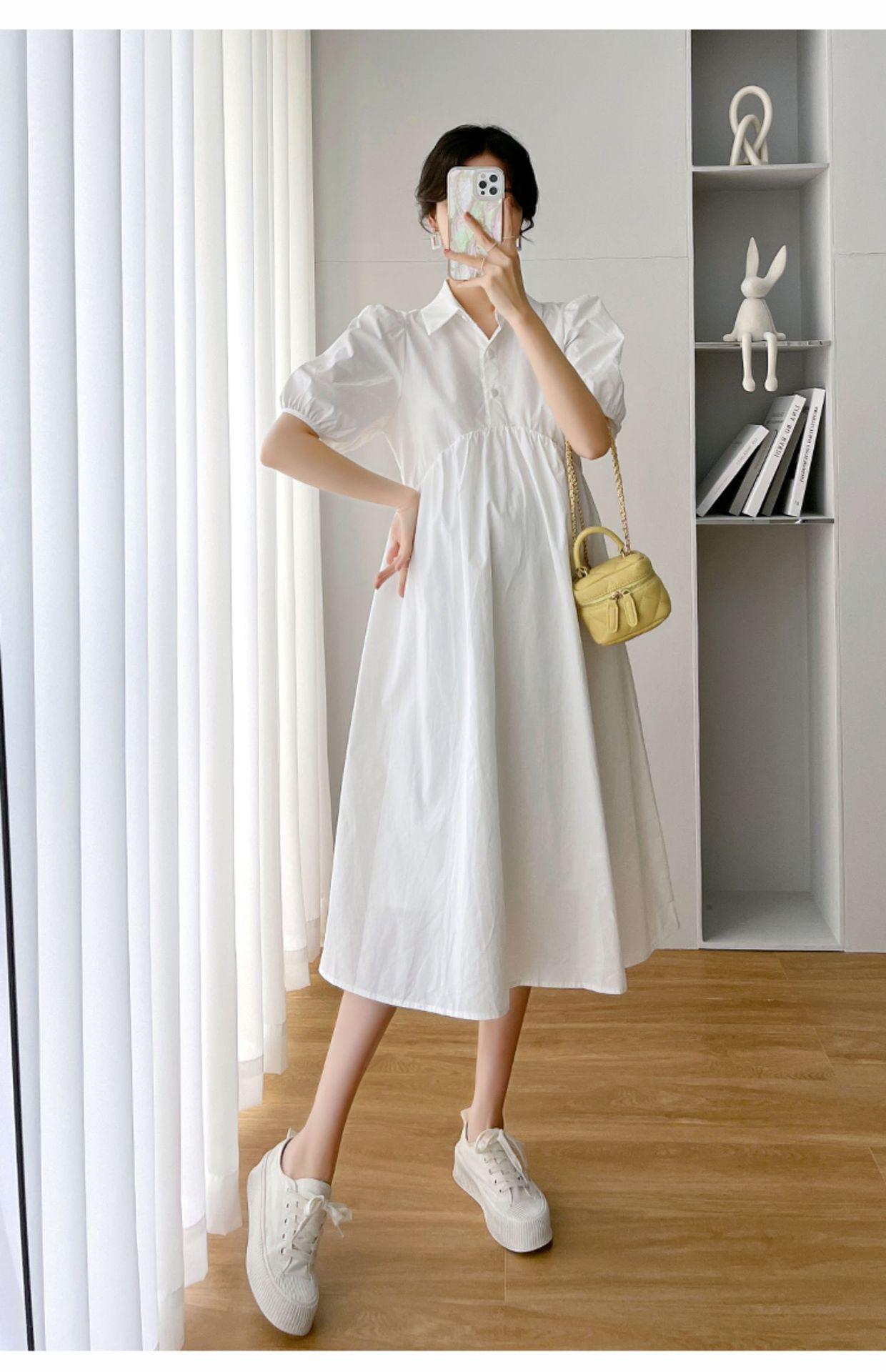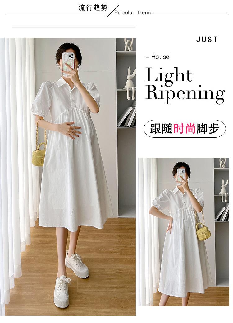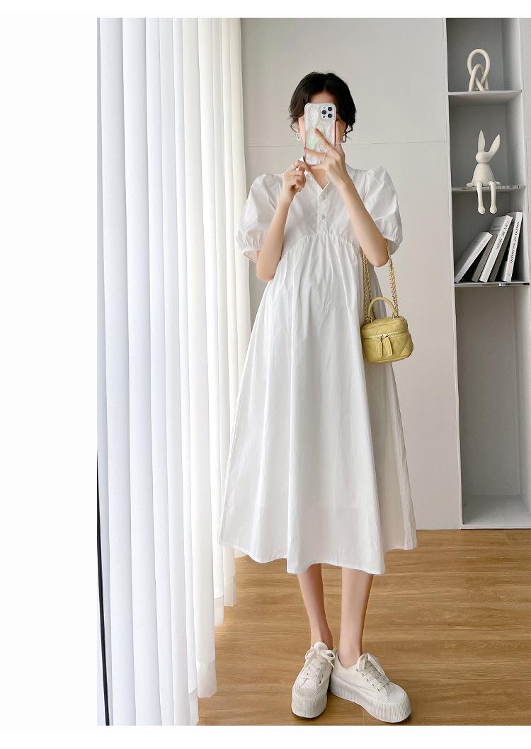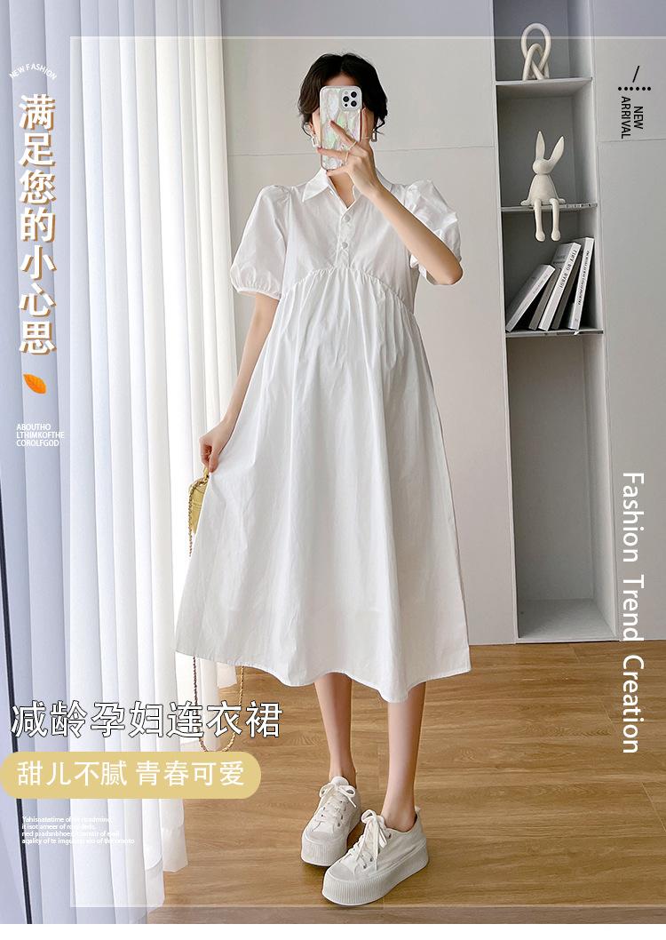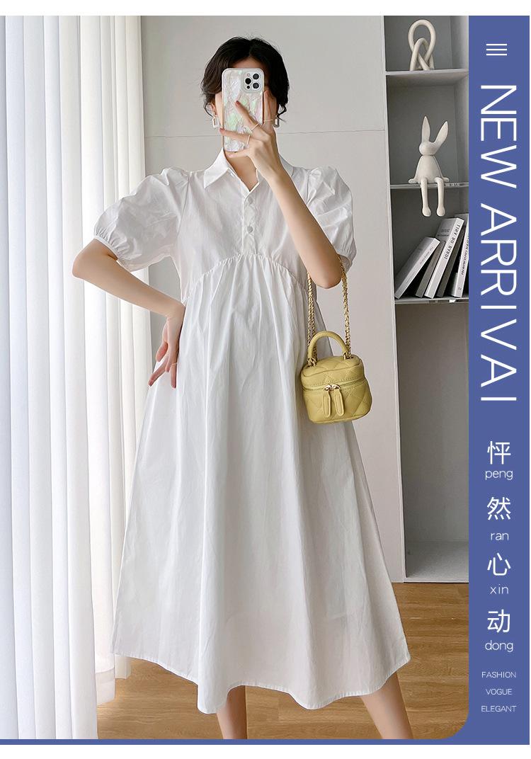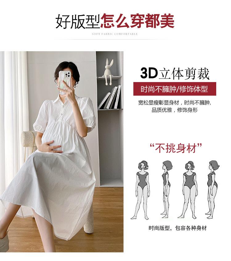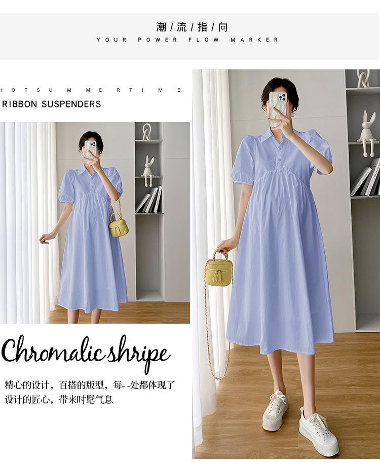 Vestido de maternidad de verano nuevo, vestido camisero de longitud media, vestido para embarazadas, cintura alta, color liso, para amamantar