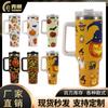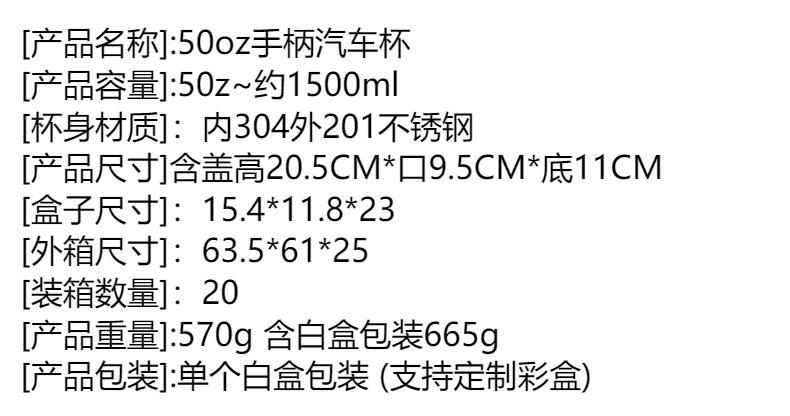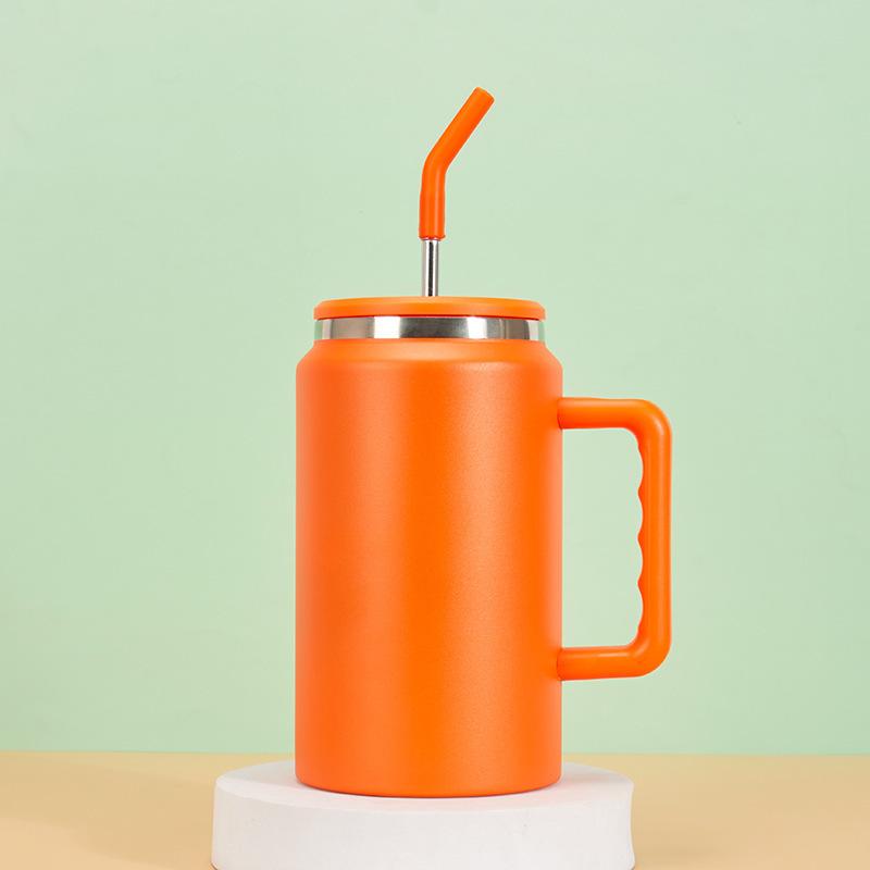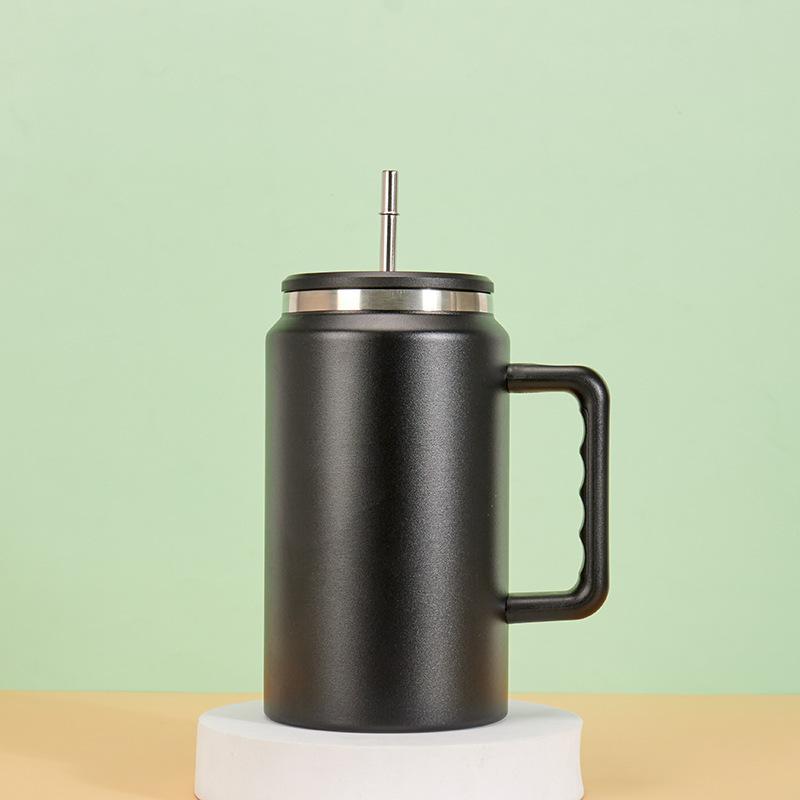 Nueva taza de hielo de acero inoxidable de 50 oz con asa y popote para llevar, aislamiento portátil, taza para cerveza fría, taza para coche para exteriores