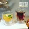 Taza de Vidrio Transparente Rayada de Doble Capa de Alto Borosilicato para Leche y Bebidas, Taza de Café para el Hogar, Vaso para Agua Aislado de Doble Capa