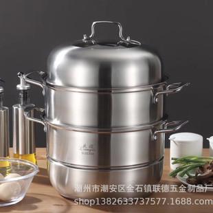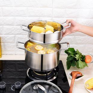 Venta directa de fábrica Liangde, vaporera pequeña de acero inoxidable engrosada, olla de doble capa de tres capas para cocinar al vapor, olla de doble propósito, olla de promoción de regalo