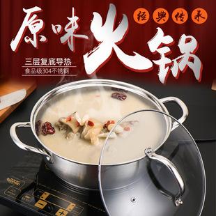 Olla de sopa de acero inoxidable de tres capas con fondo engrosado, olla caliente de 3 capas y 2 capas, olla de inducción doméstica multicapa