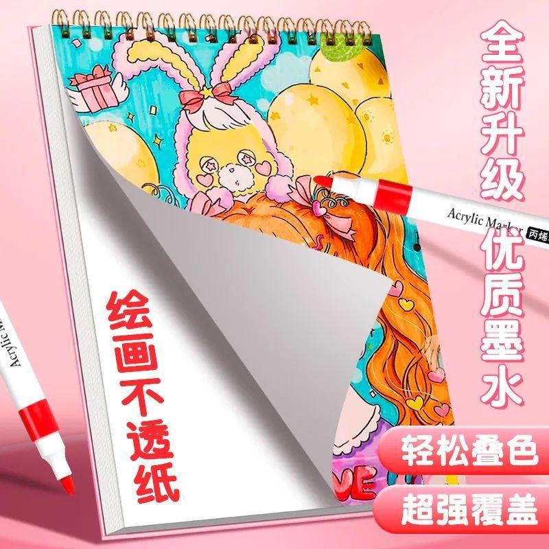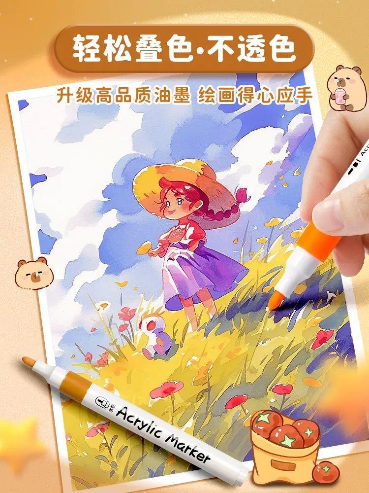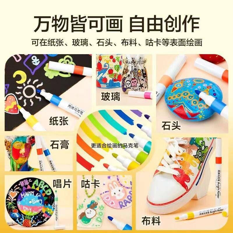 Rotulador acrílico de dibujos animados para estudiantes de primaria, bolígrafo de acuarela especial, apilable, color opaco, paquete de pinceles de pintura para niños