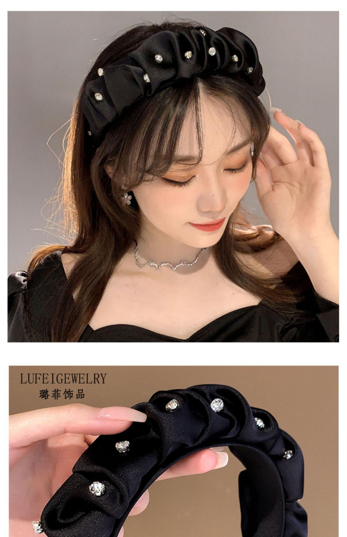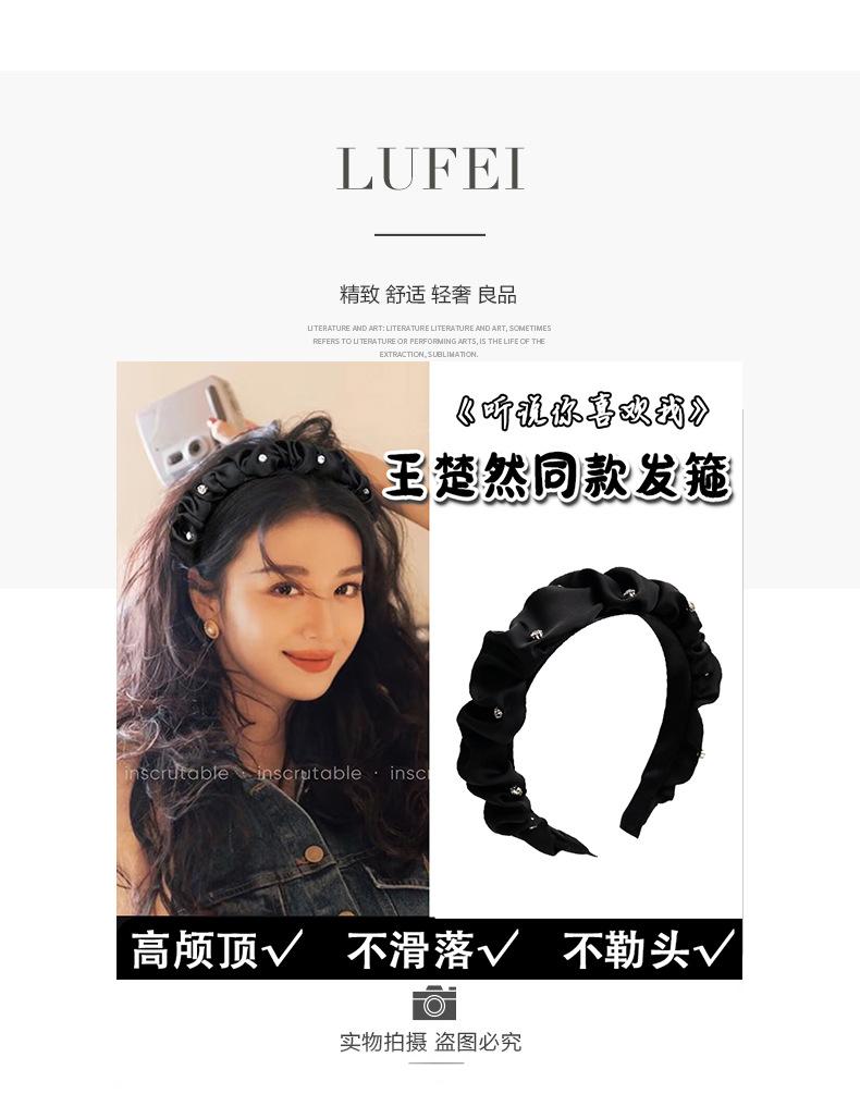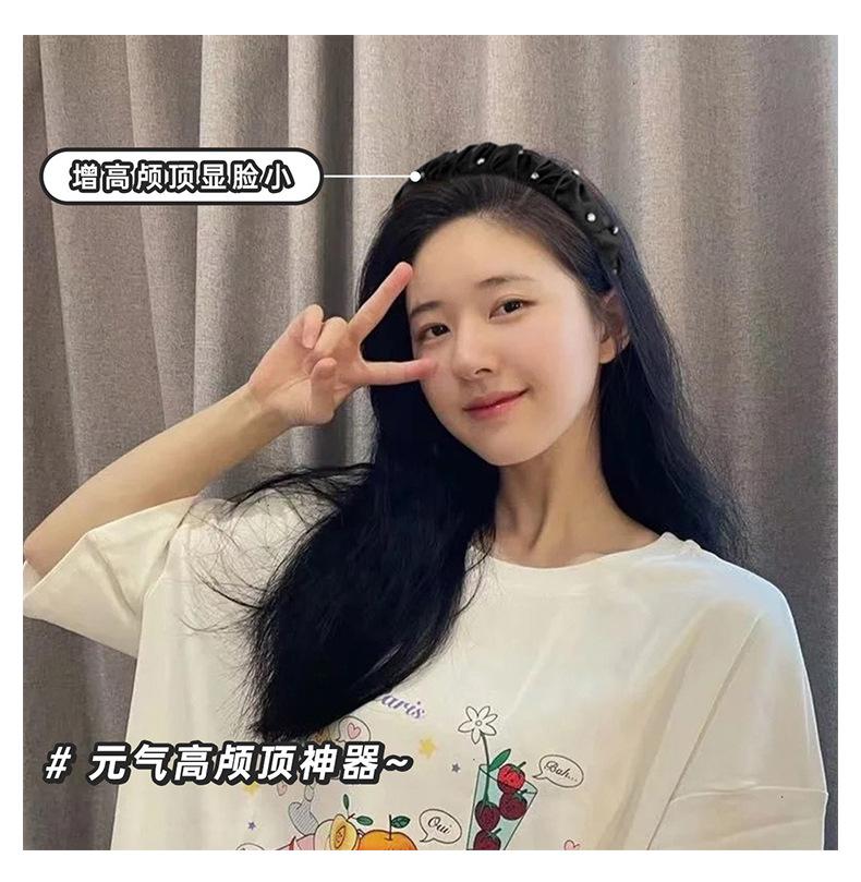 Diadema de Copa Craneal Alta con Pliegues para Mujer 2023 Nueva Diadema de Pedrería Celebridad de Internet Temperamento de Alto Sentido Pinza para el Cabello Accesorios para el Cabello
