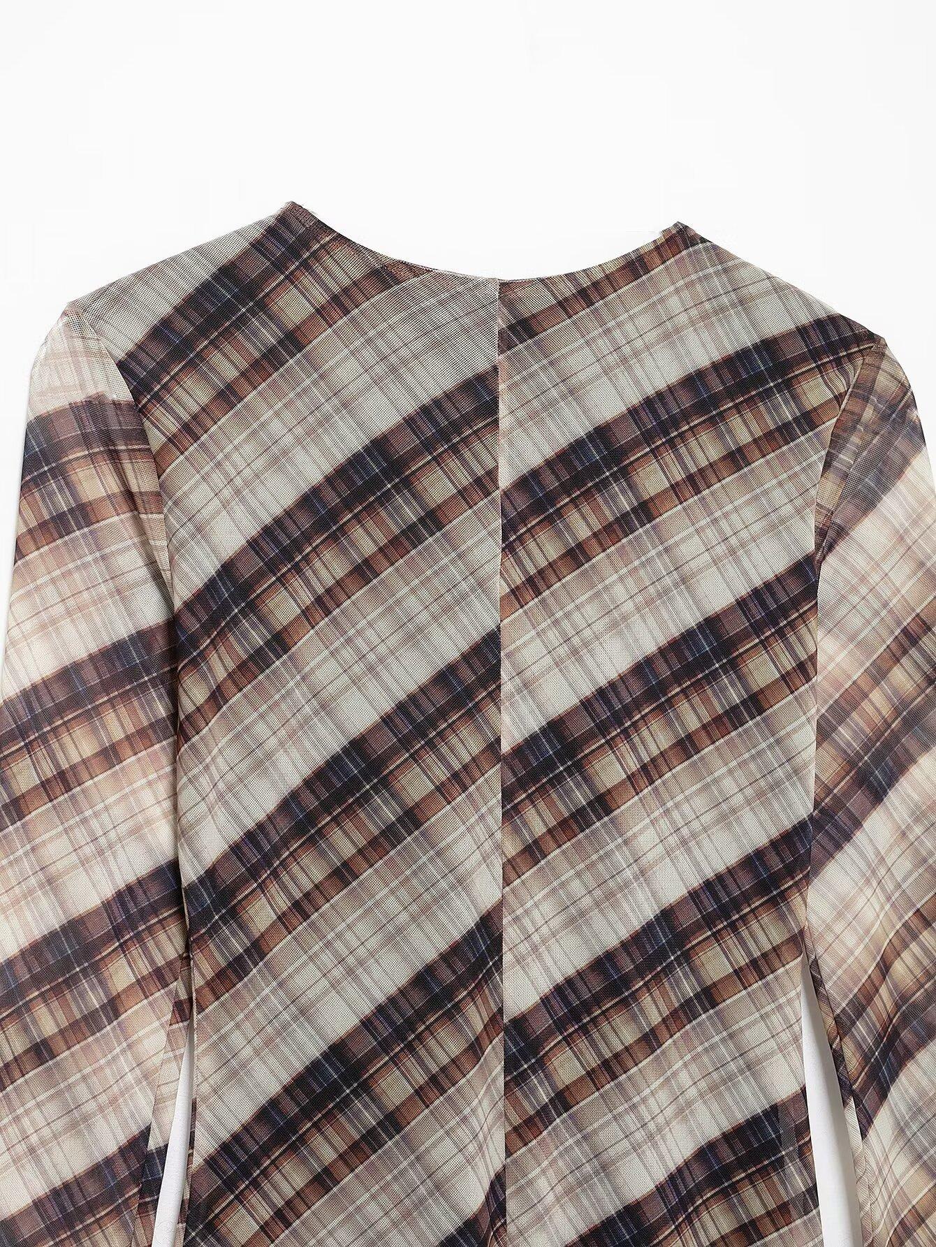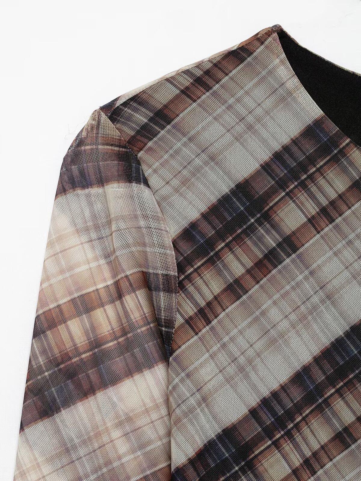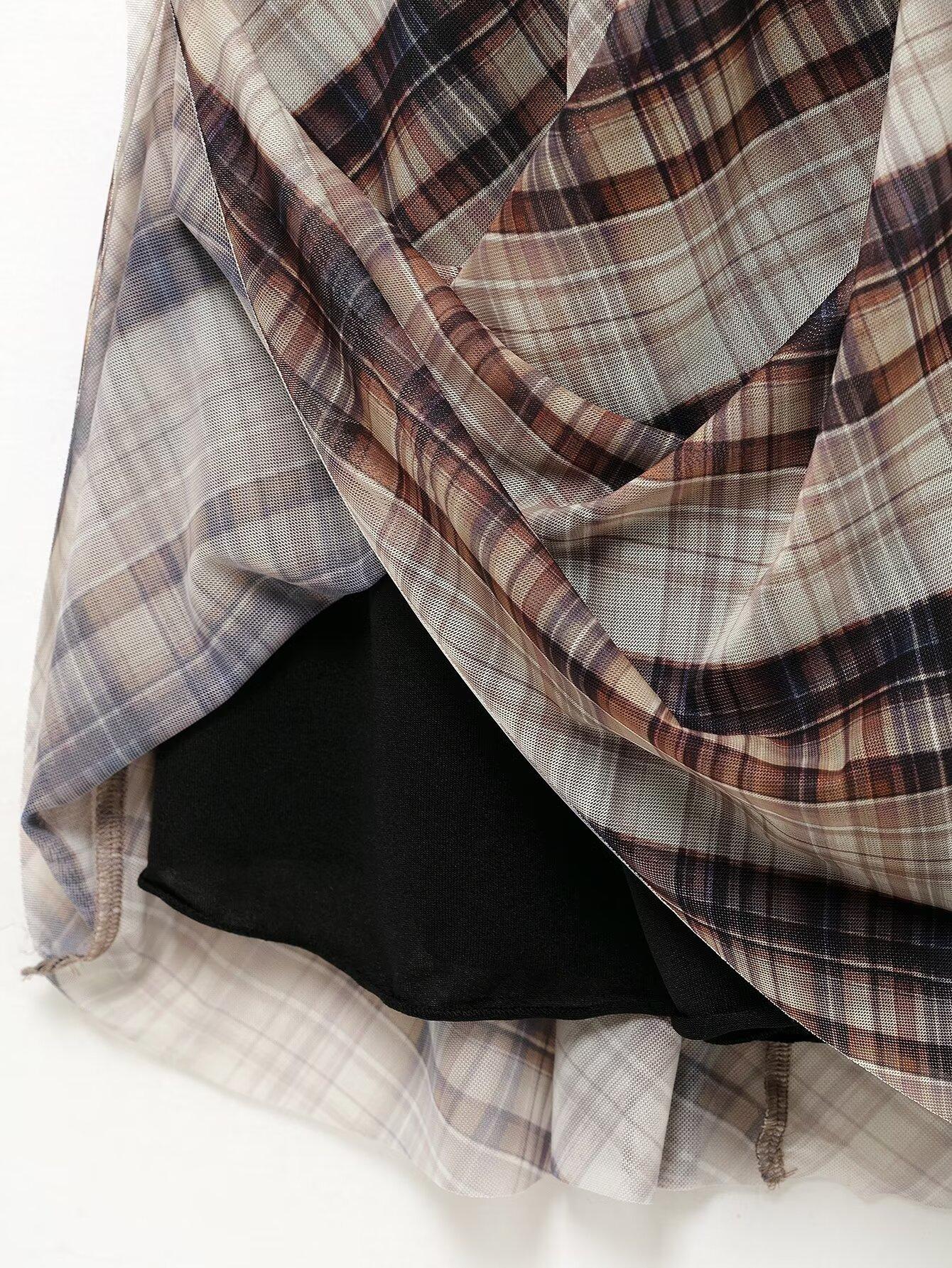 Primavera 2025, nueva ropa de mujer transfronteriza europea y americana, moda urbana, vestido de red de seda a cuadros w085 242048