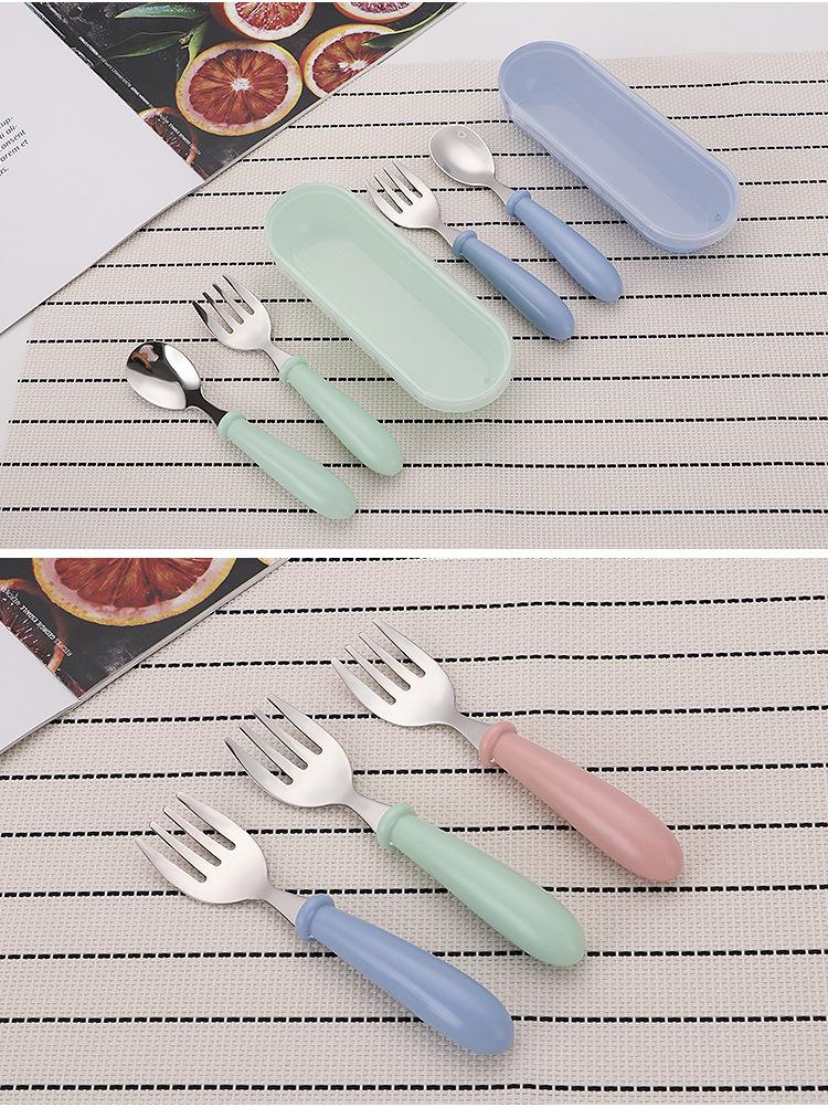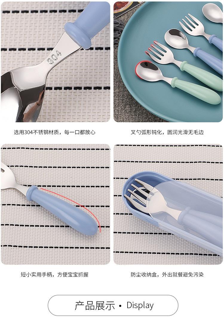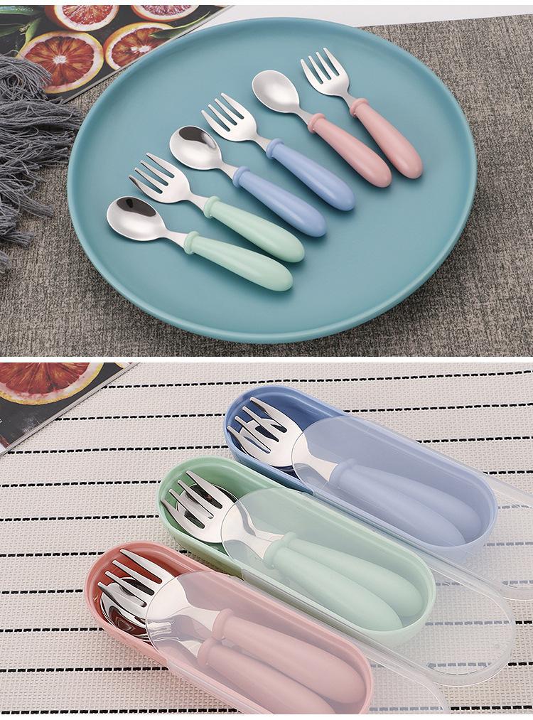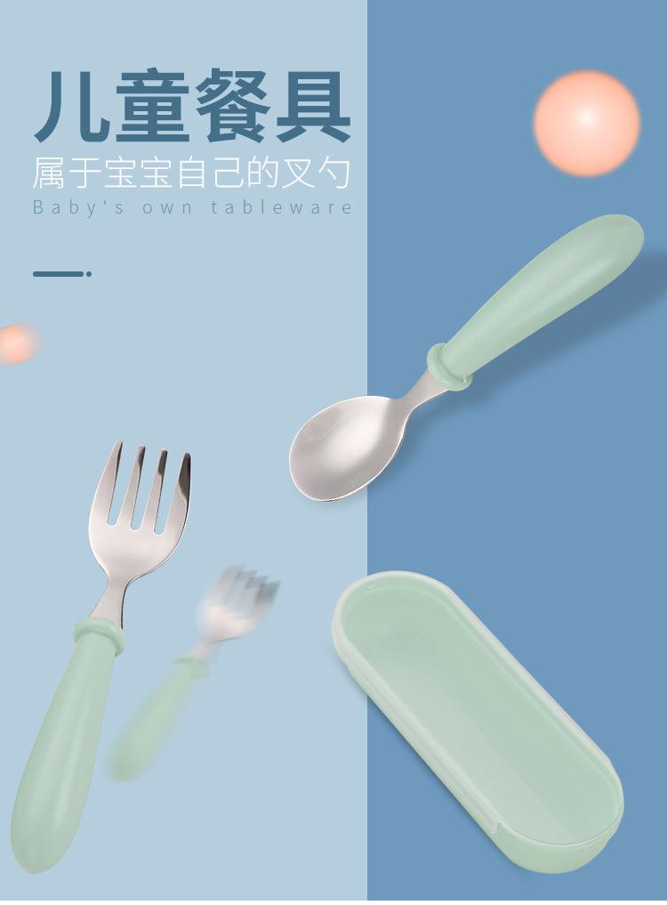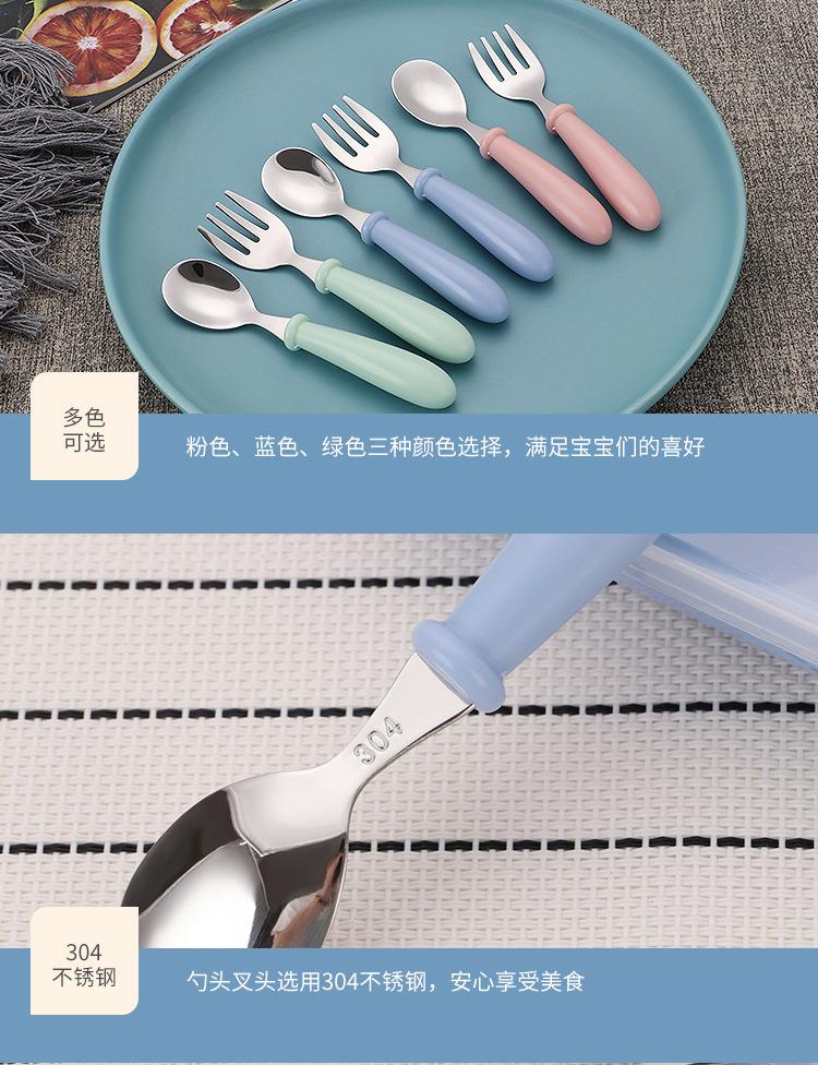 Juego de vajilla infantil de acero inoxidable 304 con dibujos animados, tenedor y cuchara, con mango redondo, ideal como regalo de cumpleaños para madres y bebés.