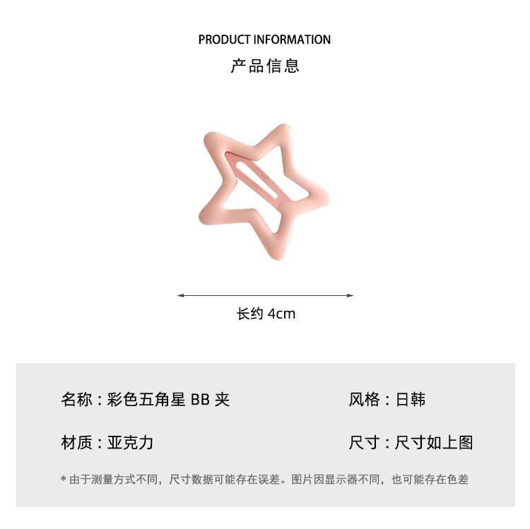 Clip de estrella colorida BB para flequillo lateral de mujer, clip para rematar cabello roto, linda horquilla para niña, tocado para niña