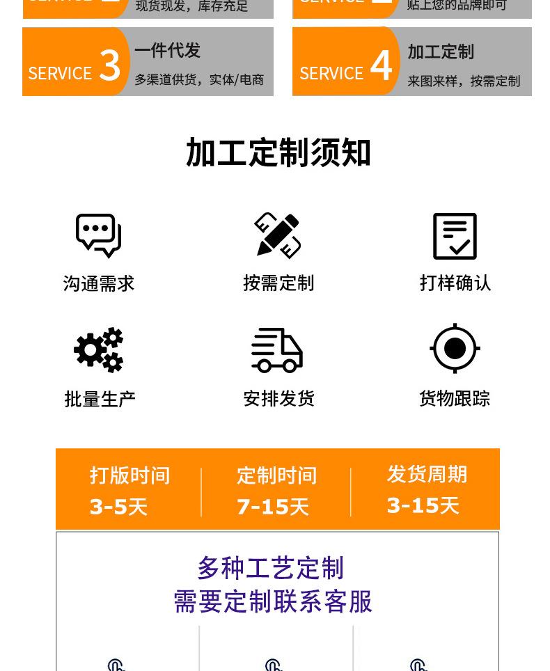 [Personalización] El pedido mínimo para logotipo y marca registrada personalizados es de 288 piezas, y el pedido mínimo para colores personalizados es de 1440 piezas. No se requiere tarifa de prueba, solo se requieren tarifas de impresión y serigrafía. La prueba tarda de 2 a 5 días, y el tiempo de entrega es de 3 a 15 días