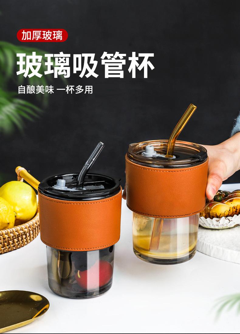 Amber (with leather case) + lid + straw