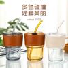 Vaso de Bambú con Vaso de Vidrio con Pajita Taza de Café Sellada con Tapa Vaso para Bebidas de Jugo Vaso para Agua Vaso con Pajita Resistente al Calor