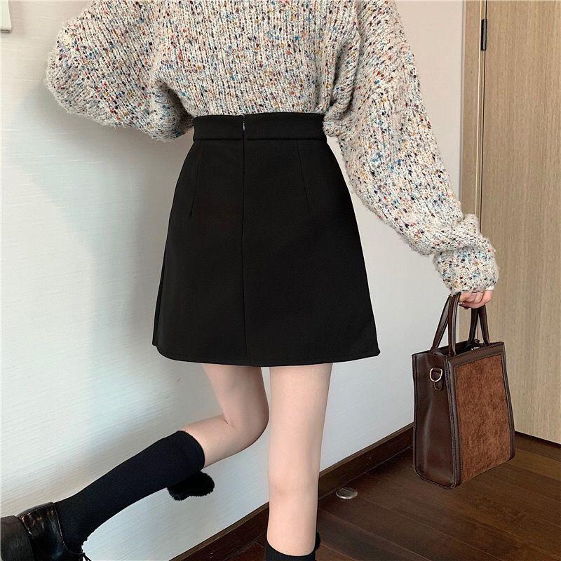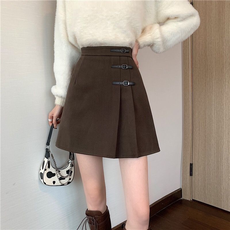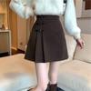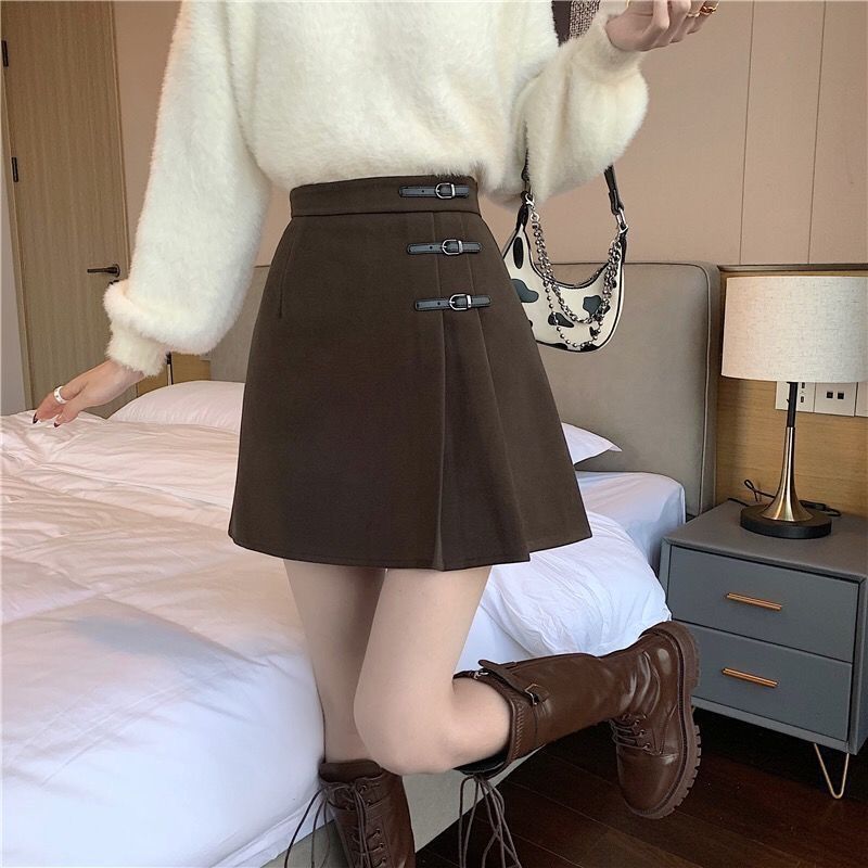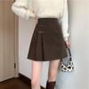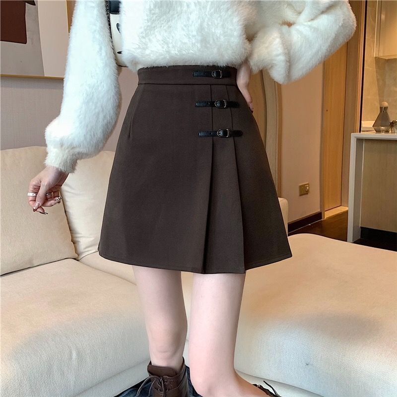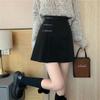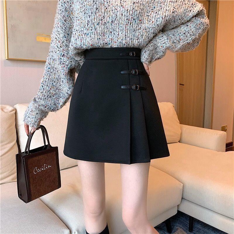 Falda de Lana Negra para Mujer Primavera y Otoño 2024 Estilo Coreano Cintura Alta Falda Plisada Ajustada Versátil Línea A Falda de Cadera