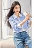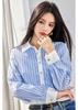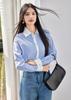 Camisa de manga larga con solapa a rayas coreanas para mujer, otoño 2025, nueva blusa con costuras falsas de dos piezas, disponible en stock